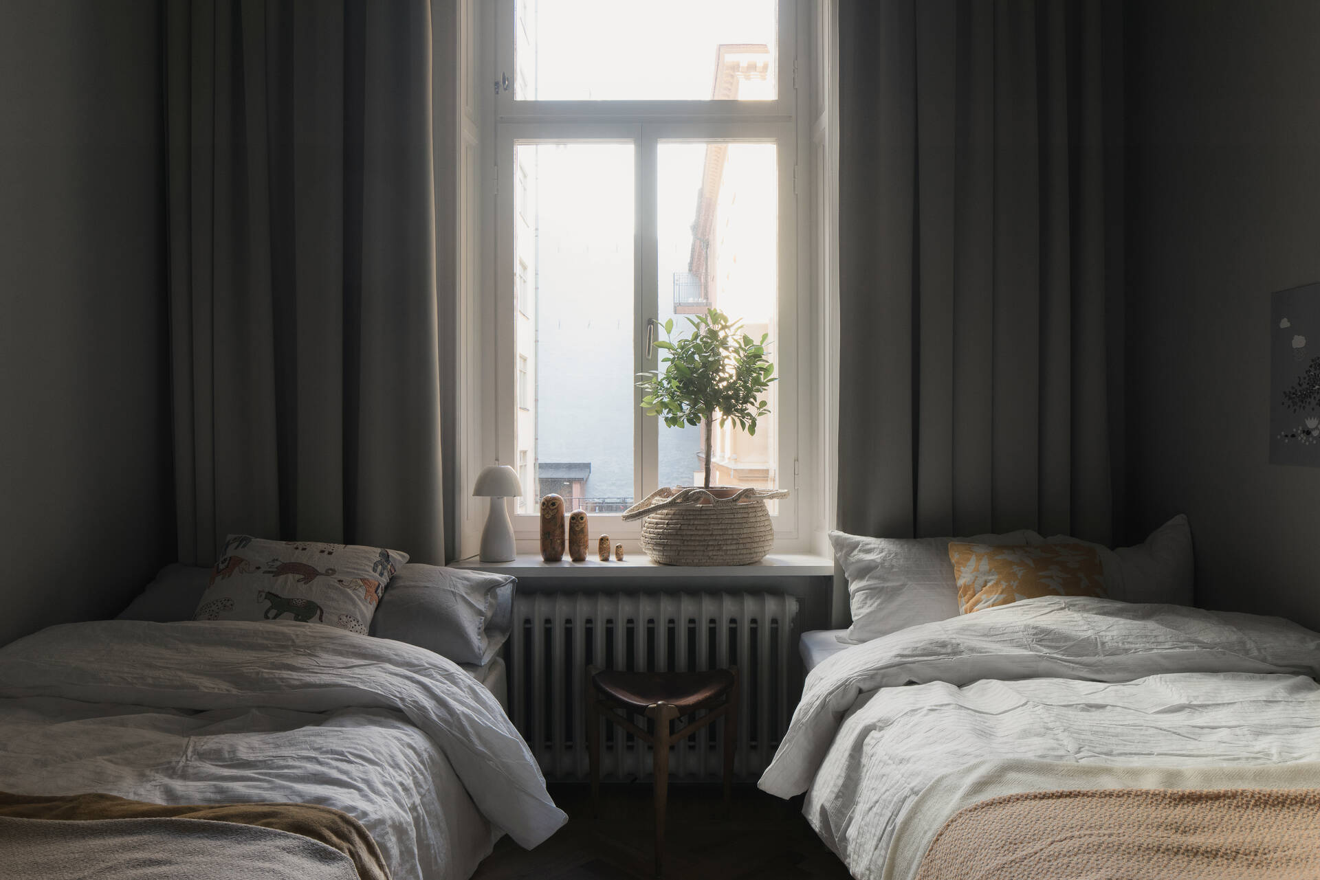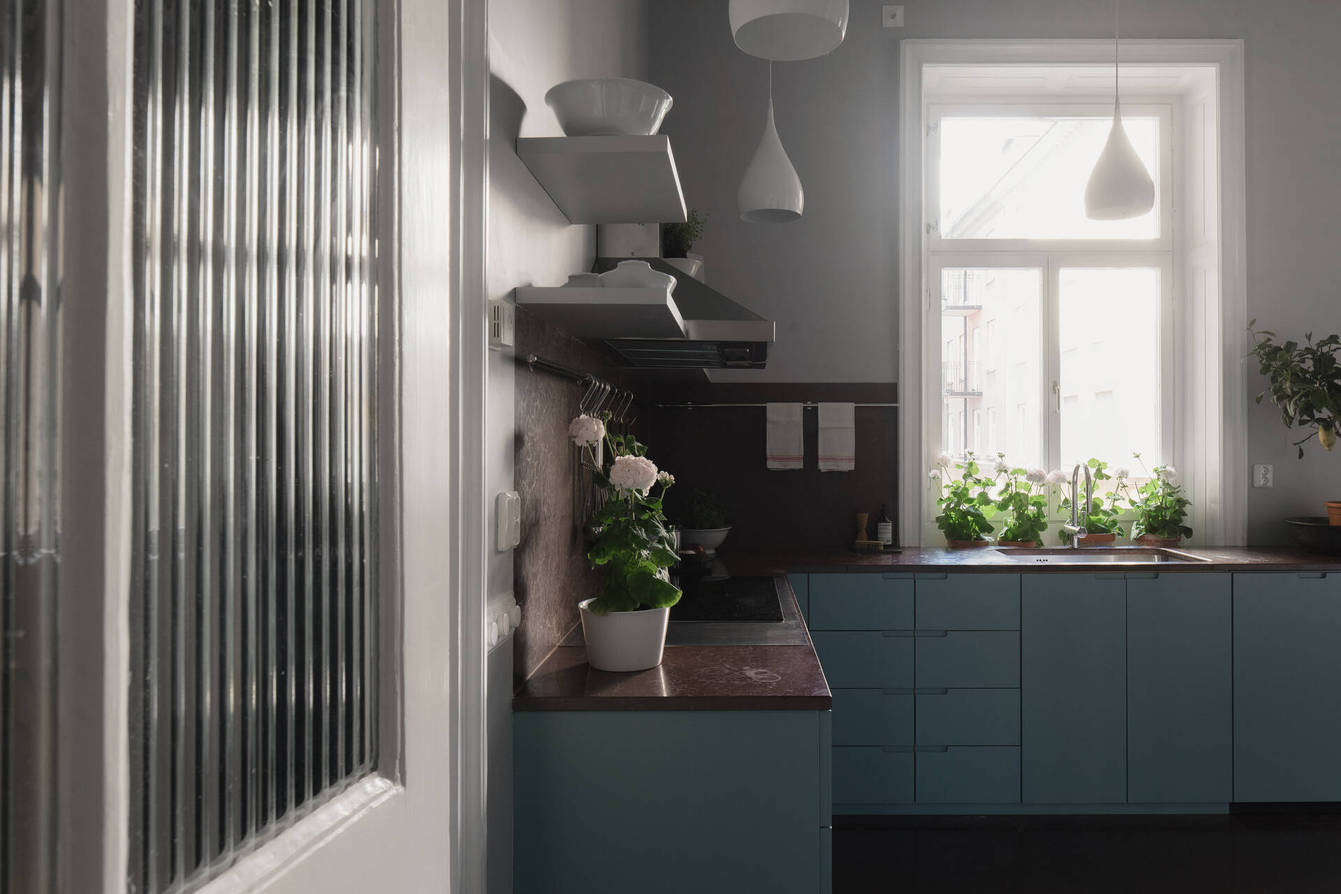 Mot lummig innergård bjuds ytterligare sovrum med kakelugn. Även kök ligger mot gården. Detta rymmer ordentlig matplats och just köket är ritat av arkitekt Jacob Zeilon. Komplett utrustning och lekfulla materialval i form av luckor i ljus pastell mot röd kalksten. Möjlighet finns att förnya bygglov för byggnation av balkong från kök.