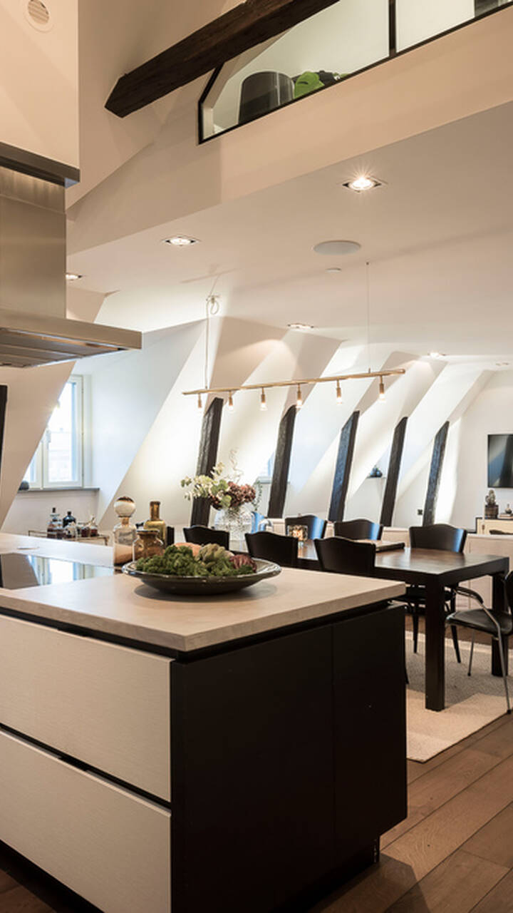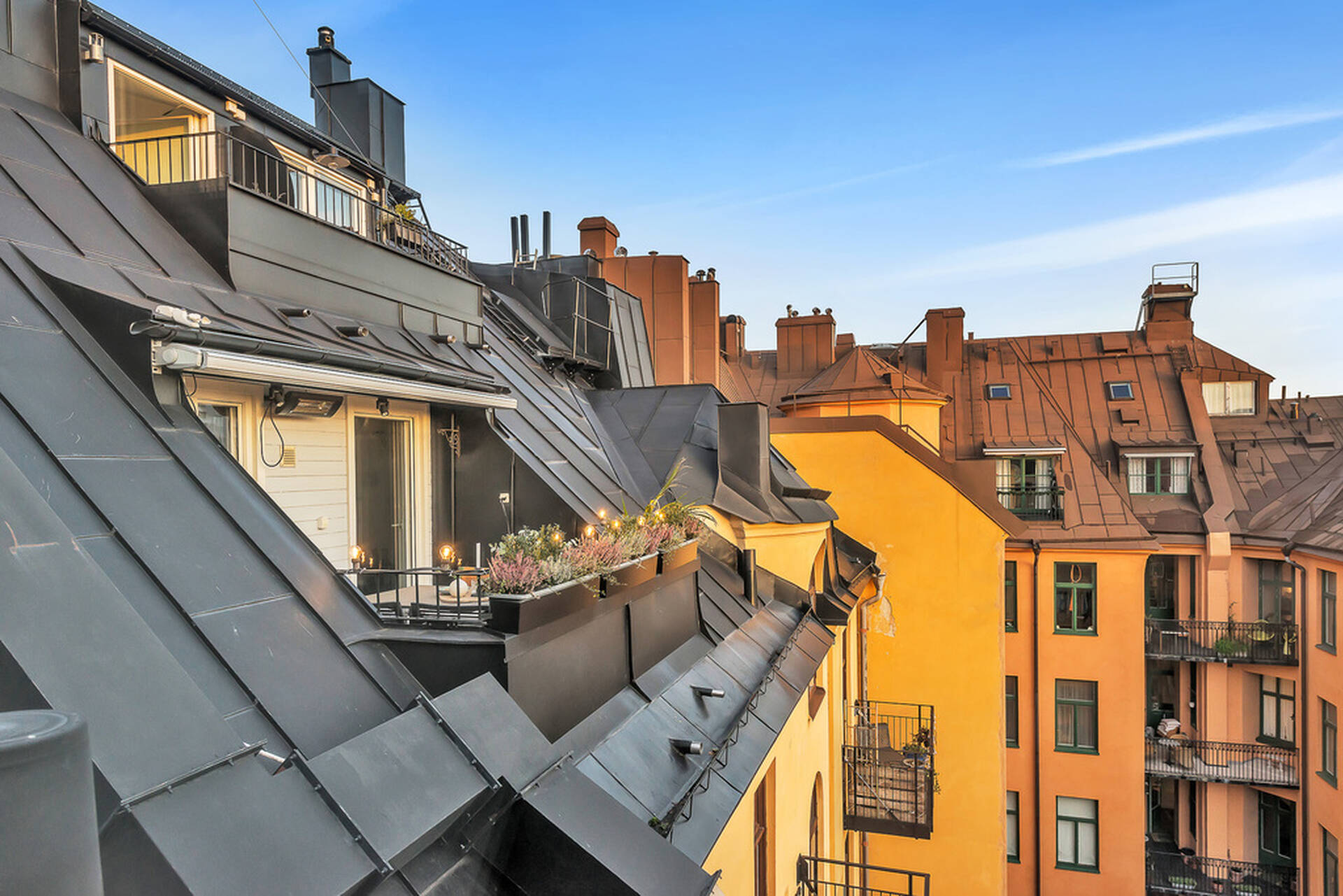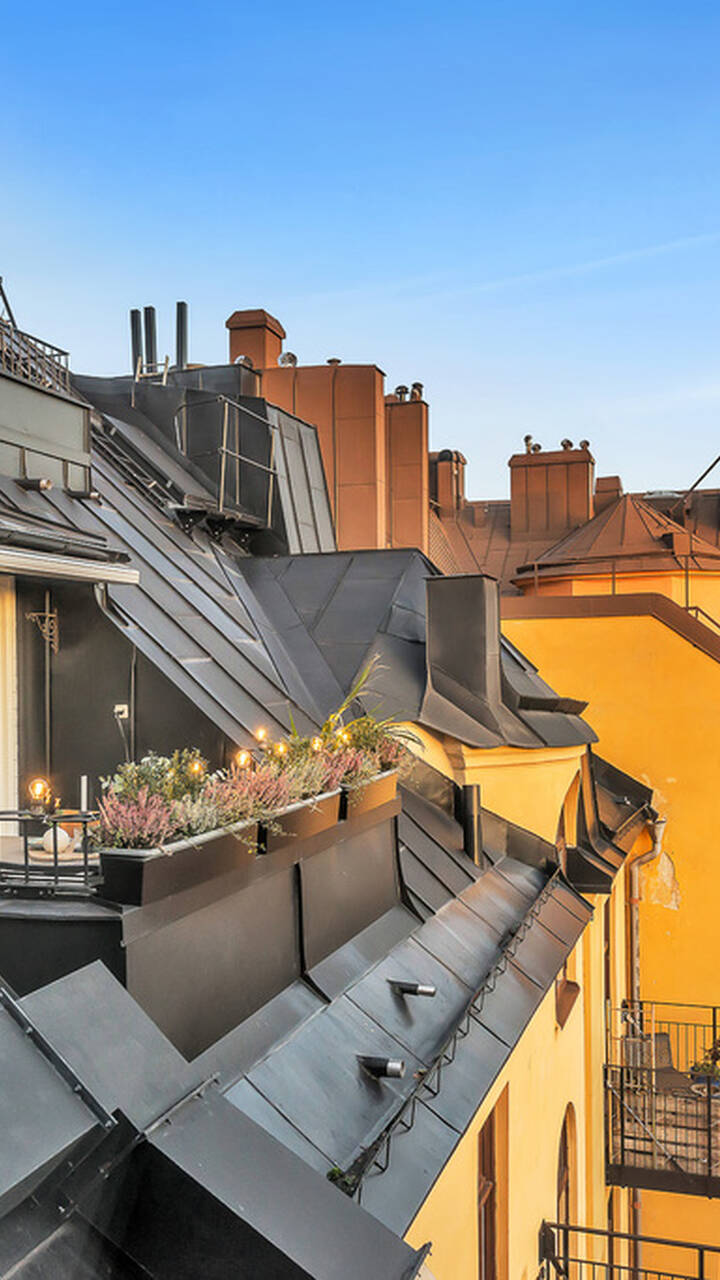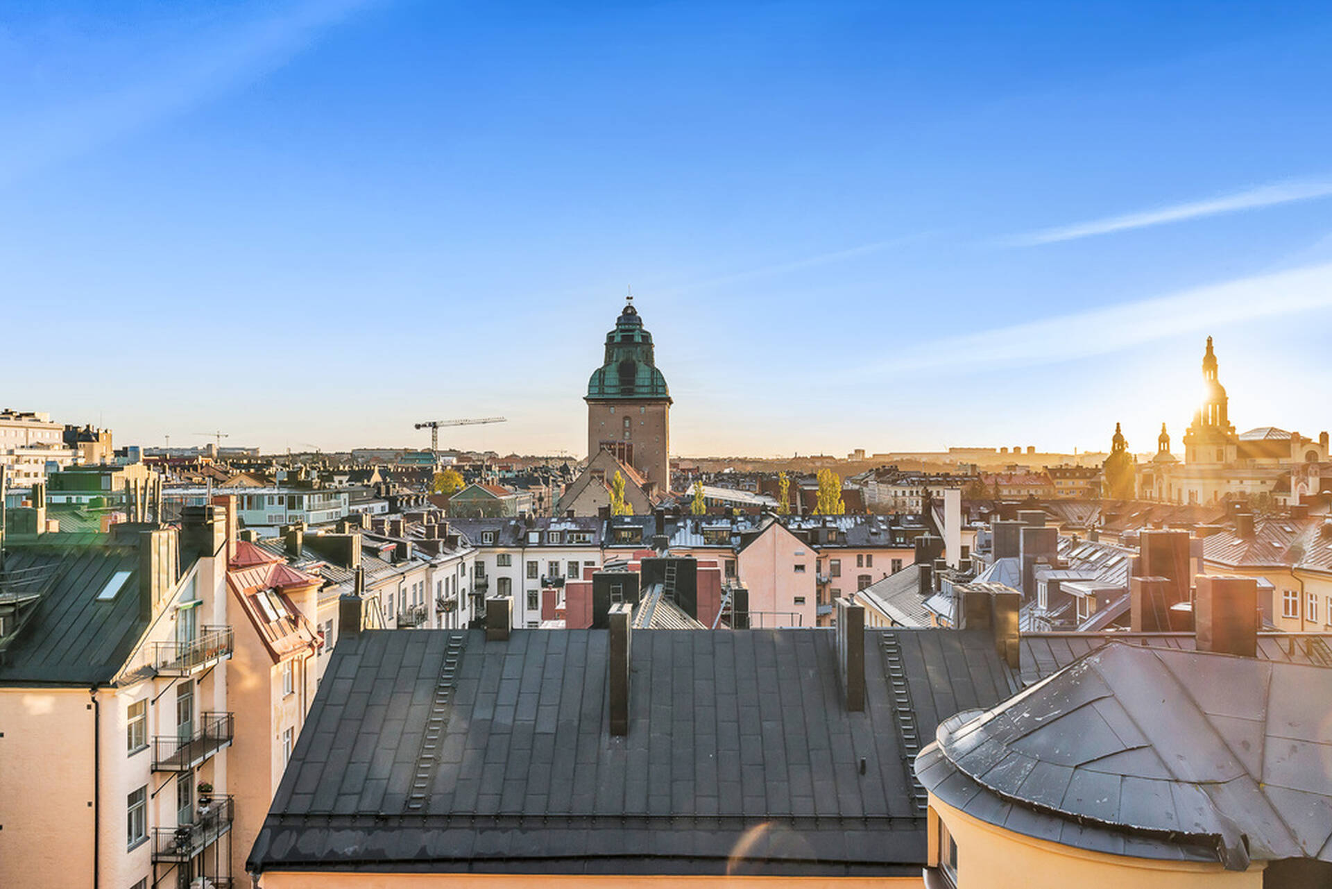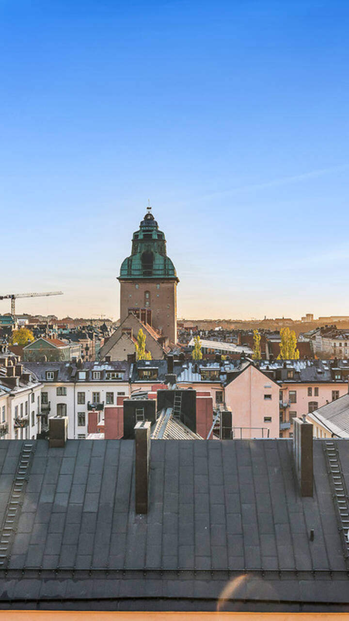 Vindsvåning i sekelskiftesfastighet från 1907 med total golvyta om 160 kvm och hiss ända upp. Här har du sol från morgon till kväll. Rymlig terrass om 7,5 kvm utan insyn och i bästa söderläge med fri vy över takåsar, Rådhuset och Stockholms innerstad. Vindsvåningen totalrenoverades 2015 och har en rymlig, lyxig och optimal planlösning. Exklusiva materialval, arkitektritad trappa och stallfönsterdörrar. Spatiöst vardagsrum och kök i öppen planlösning med 4,5 m i takhöjd samt eldstad. Köksdel med gott om förvaring och arbetsyta, för den som gillar matlagning. Angränsande till sällskapsdelen ett "biblioteksrum" eller möjligt sovrum. Avskilt i den inre delen av våningen ligger ett lyxigt master bedroom med rymlig walk-in-closet. Badrum med bubbelbadkar och bastu med ångfunktion, i anslutning till master bedroom. På övre plan, ett gäst-/arbetsrum med eget badrum och balkong. Våningen är också utrustad med ljussystem och inbyggda högtalare. Garage i närområdet. Även möjlig sex-rummare.