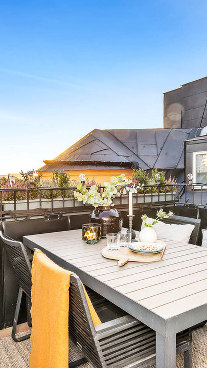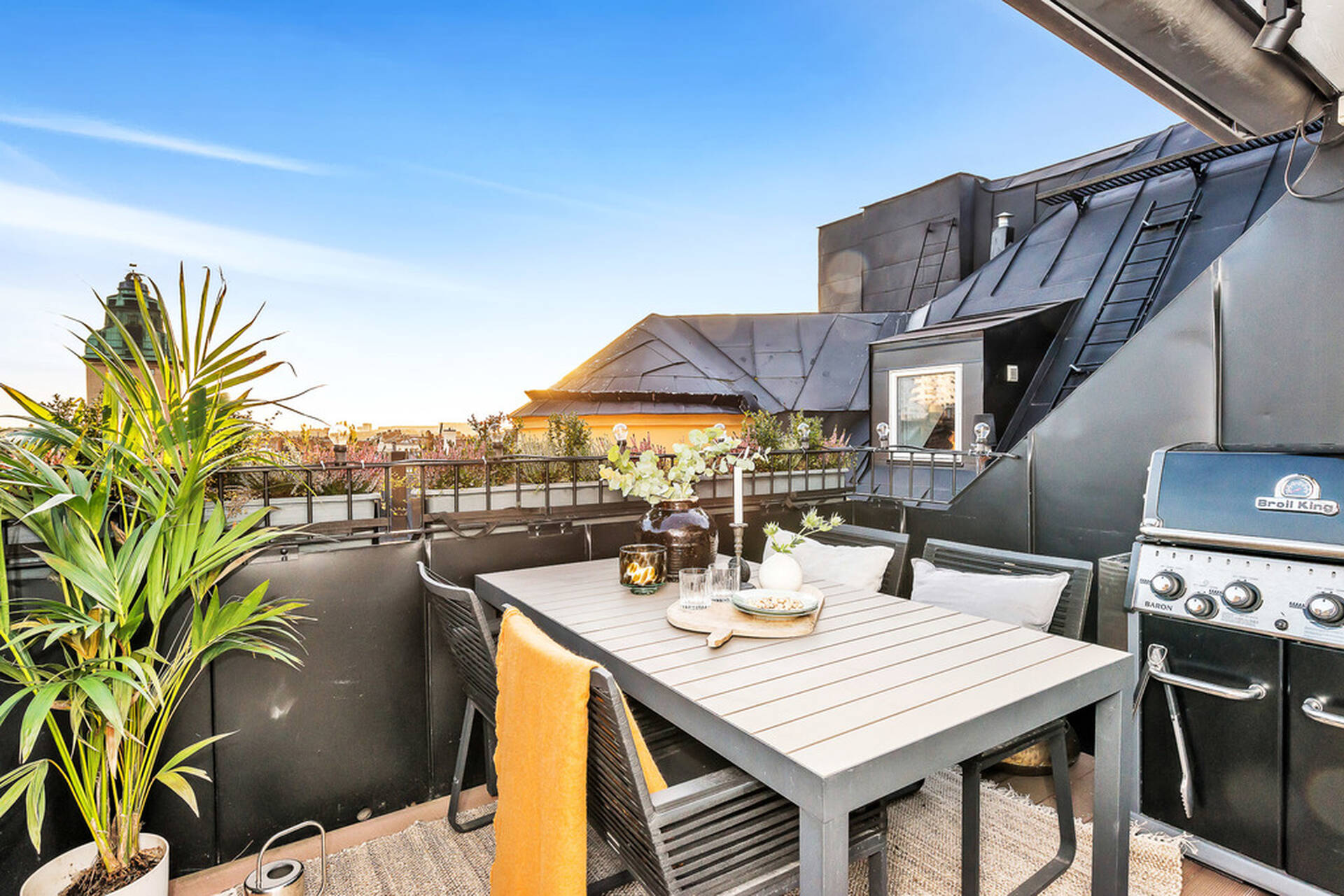 Magnifik vindsvåning i toppskick med terrass i söderläge