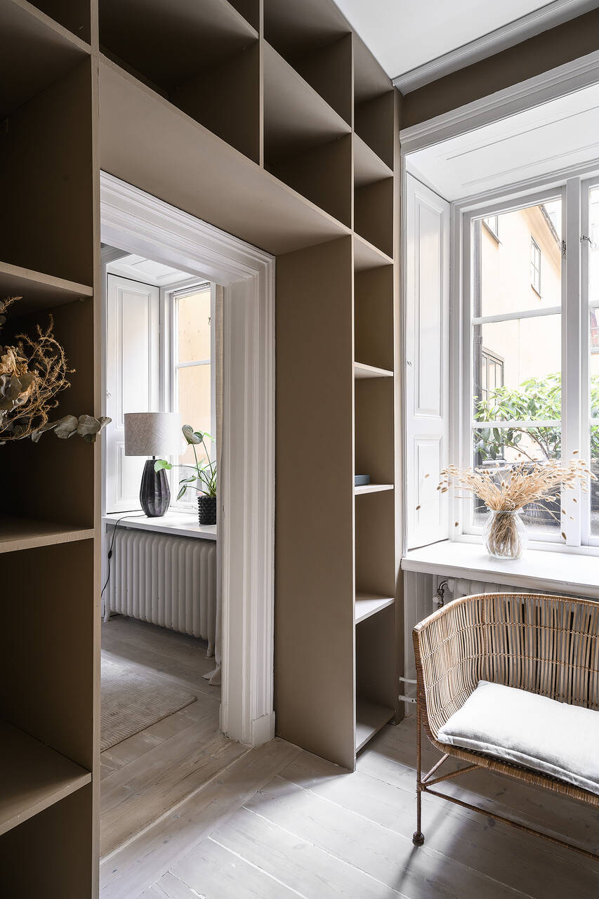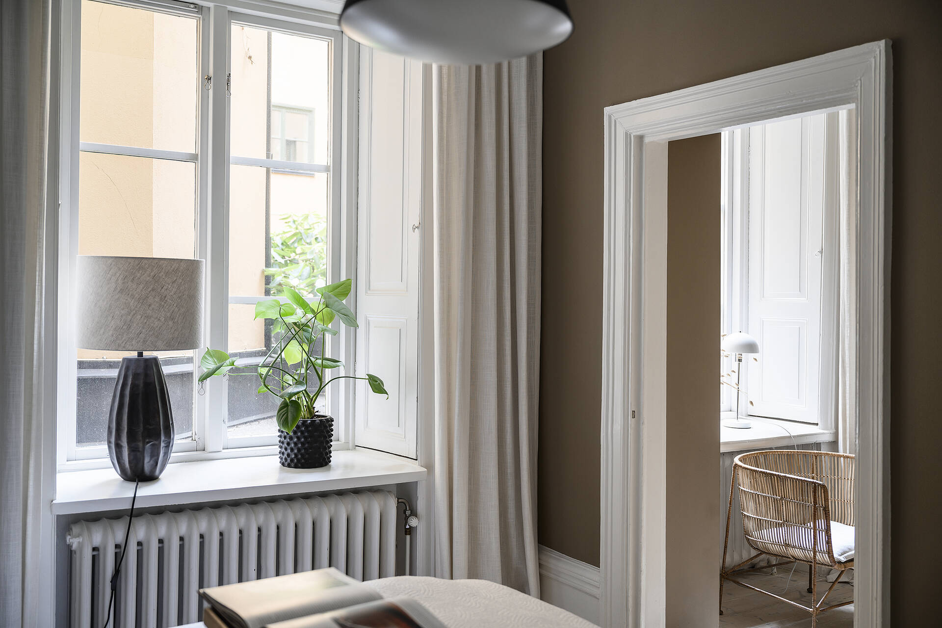 Anslutande mindre sovrum med potential som kontor, barnrum eller dressing room. Djup fönsternisch med inbyggda fönsterluckor i original.