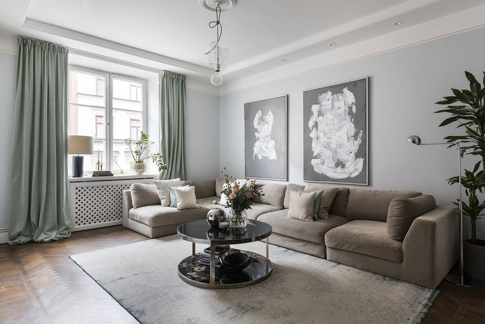 Ljust och rymligt rum med fönster mot Sibyllegatan. Stavparkett. Inbyggt ljudsystem.