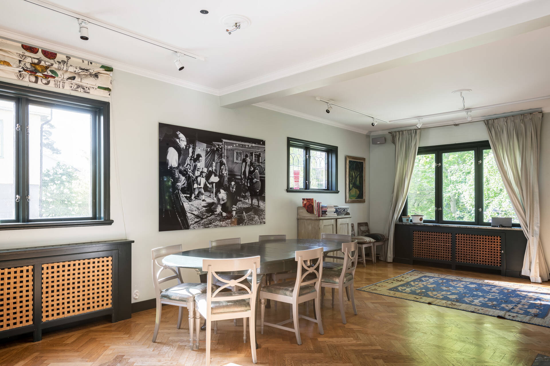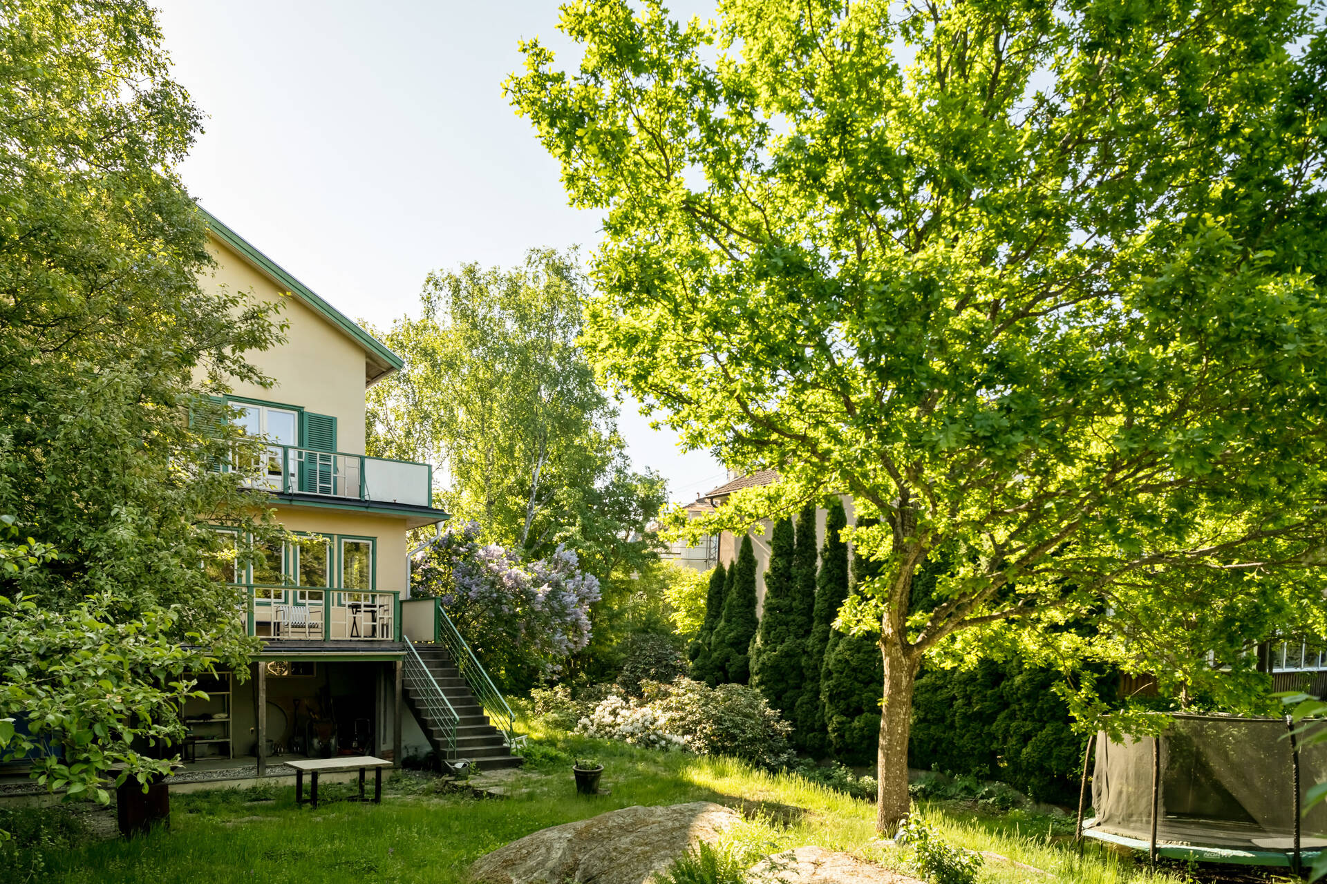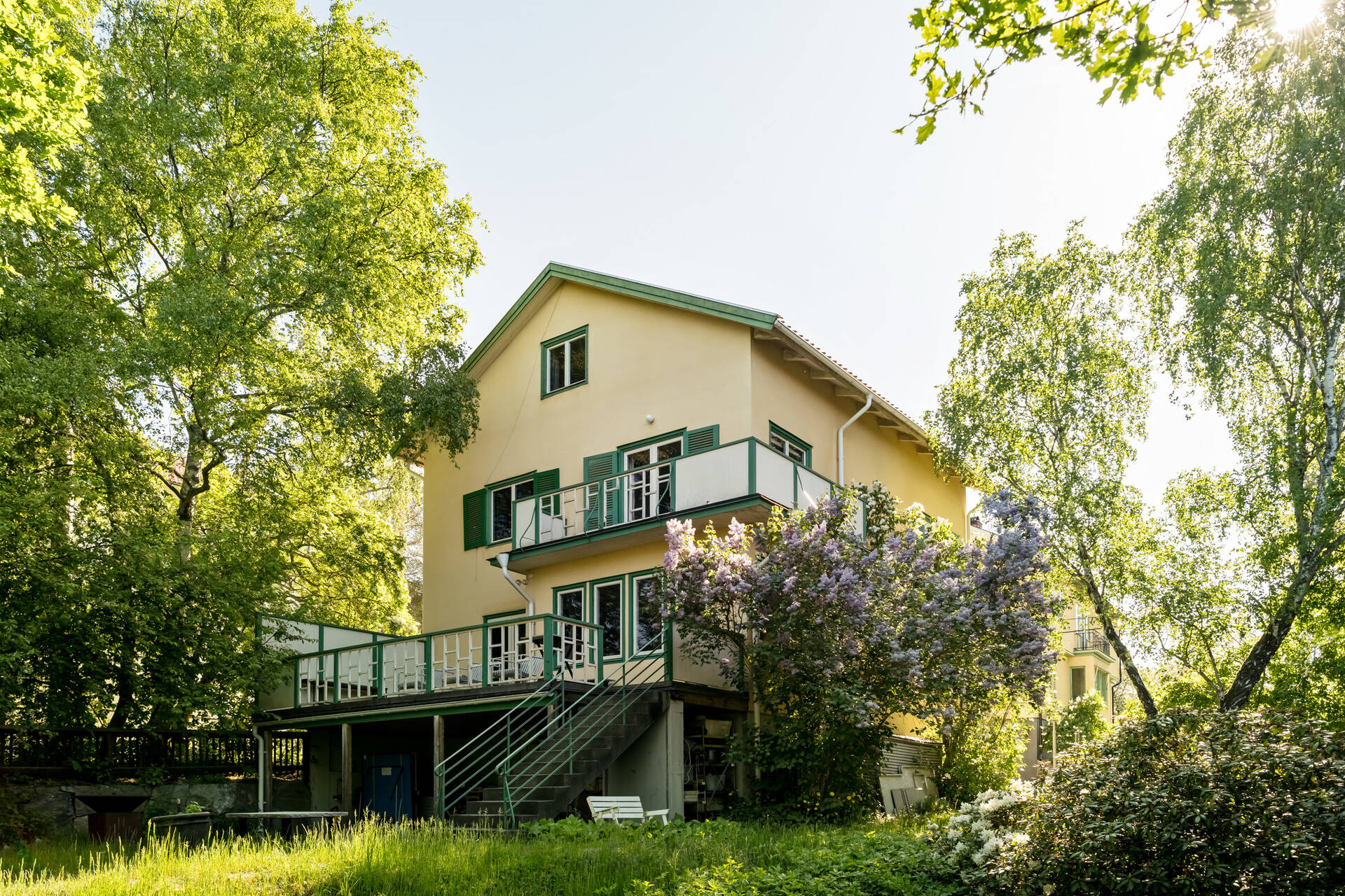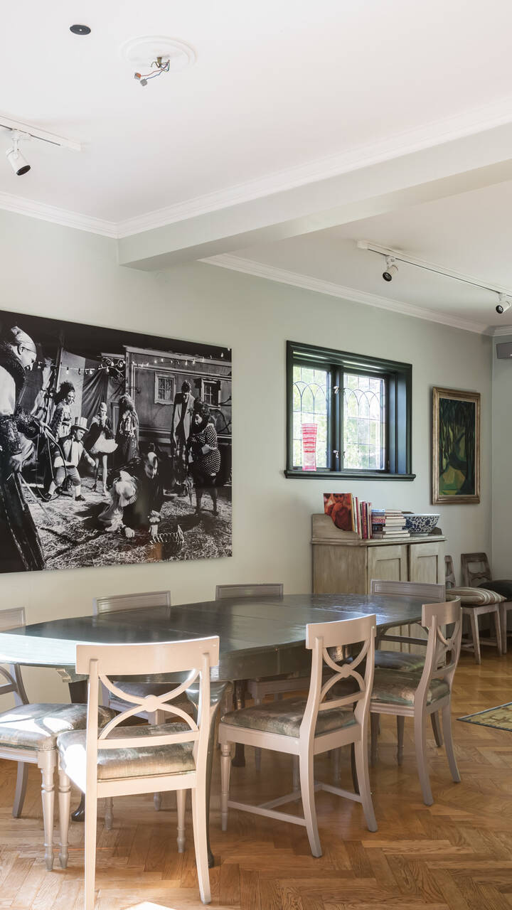 Attraktivt belägen i Bromma bland grönska och natur återfinns denna arkitektoniskt vackra villa om 303 kvm fördelat på fyra våningsplan. Ett mycket charmigt boende med tidlös elegans och välbevarade attribut från byggåret såsom spegeldörrar, fiskbensparkett samt vackra listverk. Väldisponerad layout med spatiösa sällskapsytor på entréplan, sovrum på övre plan samt bastu och cateringkök i källarplan. Entréplan med stora fönsterpartier i alla väderstreck, öppen spis samt väl utrustat kök med vedugn. Harmonisk trädgård med tomt på 734 kvm med vackra naturliga trädgårdsinslag som omger tomten likt en oas.