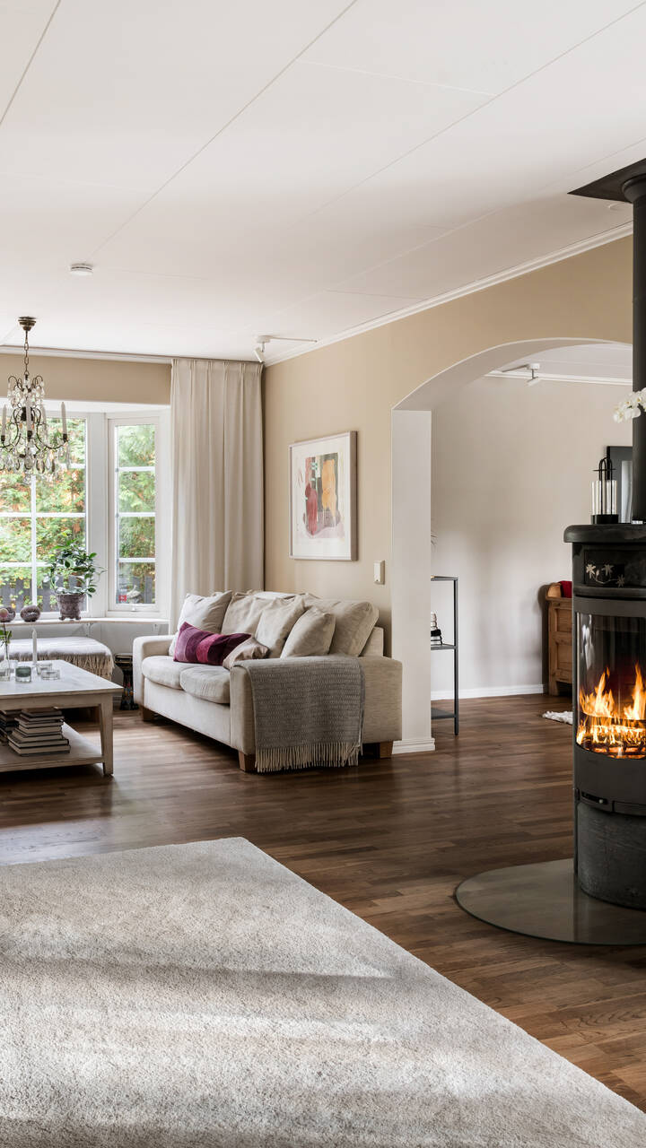 Villan om 211 kvm är rymlig med upp till 6 sovrum och passar perfekt för den stora familjen. På entréplanet finns luftiga sällskapsutrymmen, mysig braskamin samt ett modernt kök. Köket har utgång till baksidans stora altan. Intill köket ligger tvättstugan med bra förvaringsmöjligheter och egen utgång. På övre planet finns ett centralt placerat allrum och totalt fyra sovrum som inkluderar ett extra stort och och separat master bedroom eller ett sällskapsrum med takfönster och takbjälkar.