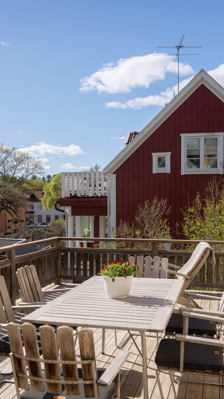 I ett av Brommas mest eftertraktade kvarter invid Ålstens torg finner vi denna vackert bevarade 20-talsvilla om 257 kvm. Hemmet har genomgått en löpande renovering som harmoniskt förenar tidstypiska detaljer med moderna bekvämligheter. Villa erbjuder en smart planlösning med en souterrängvåning för praktiska behov, en social mellanvåning som bjuder in till umgänge samt en privat sovrumsavdelning högst upp. Här finns flertalet balkonger och uteplatser som vänder sig mot den ljuvligt sydvästligt orienterade naturtomten, vilket ger en rofylld och solig miljö för hela familjen. Närheten till Ålstens torg med sin myllrande aktivitet ger tillgång till ett brett utbud av restauranger, affärer och skolor, samtidigt som den grönskande omgivningen ger känslan av att bo på landet, men med alla bekvämligheter som staden erbjuder. I närheten finns även Nockebybanan och vackra promenadstråk vid Solviksbadet.