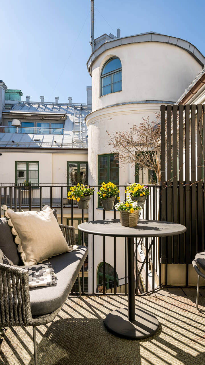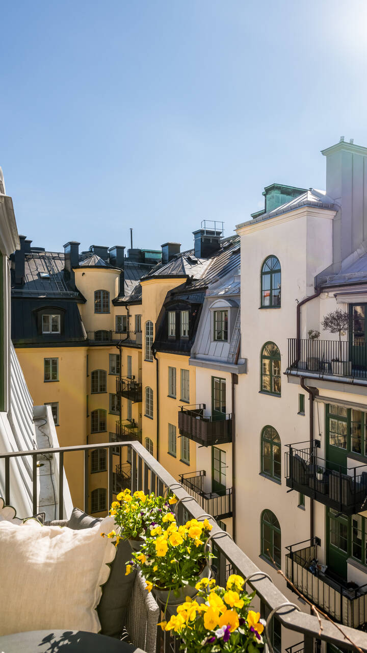 Invid Karlaplan, högst upp i vacker fastighet från 1925 ligger denna exklusiva och helt unika lägenhet med en golvyta om 92 kvm, möblerbar balkong utanför köket och ytterligare en balkong med fri utsikt över takåsarna ut från sovrumsavdelningen. En mycket tilltalande planlösning med kök och sociala delar samlat på entréplan och en privat del en trappa upp med ett mycket generöst master bedroom i öppen planlösning med ett av de två badrummen en suite . En trivsam och ljus lägenhet i välskött förening i samma kvarter som Karlaplan och med Fältöversten, med sitt serviceutbud, runt hörnan och grönområden som Djurgården och Gärdet på trivsamt promenadavstånd.
