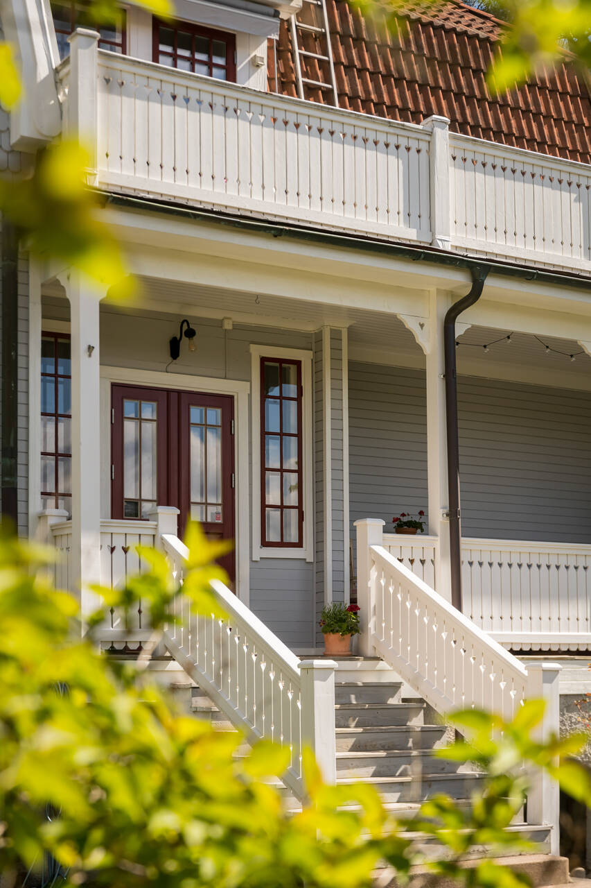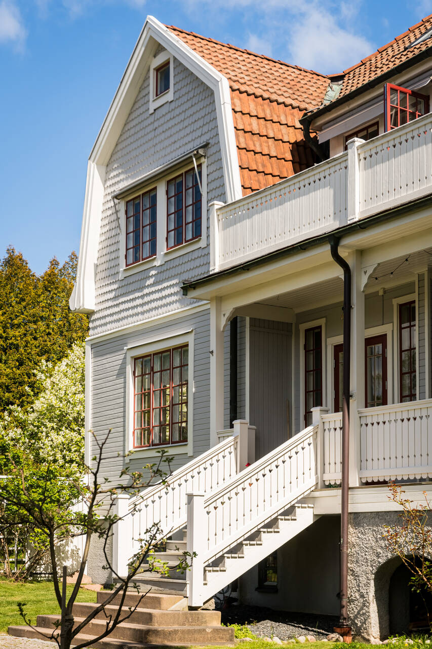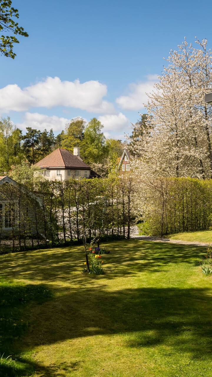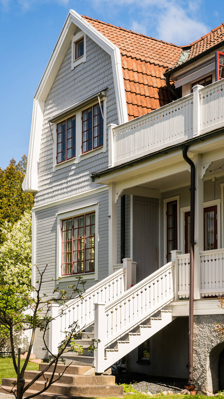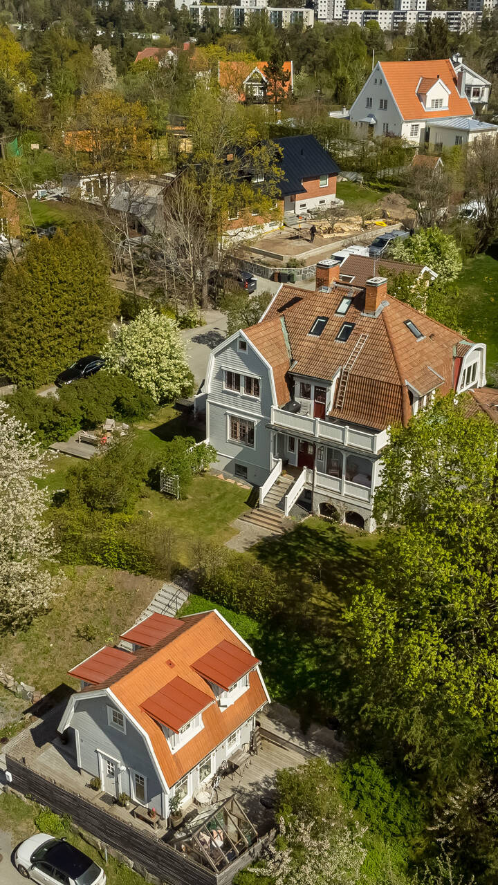 Belägen högt uppe på höjden stoltserar denna stilfulla villa signerad Nils Persson (1906) samt tillbyggd av välkända Jacob J:son Gate (1914). Finstämd nationalromantisk arkitektur i Lidingös klassiska villakvarter. Här möts man av kontrasterande liggande och stående träpanel, utmejslade burspråk, spröjsade fönster och mansardtak. Interiört luftiga stora sällskapsrum med vältilltagen takhöjd. Flertalet tidstypiska attribut såsom flertalet öppna spisar, stuckaturer och pardörrar. Möjlighet att skapa ett hem perfekt för den stora familjen med stora sällskapsytor i anslutning till trädgården och privat ombonad sovrumsdel en trappa upp. Milsvid utsikt över det bildsköna villaområdet från det övre planet. Påkostad grindstuga, perfekt för uthyrning, au-pair eller långväga gäster. Idag disponeras huvudbyggnaden som två separata hem och grindstugan som ett tredje. Läget i Hersby kan inte bli bättre med omedelbar närhet till natur, utmärkta kommunikationer och välrenommerade förskolor och skolor på gångavstånd. Varmt välkommen på bokad visning.