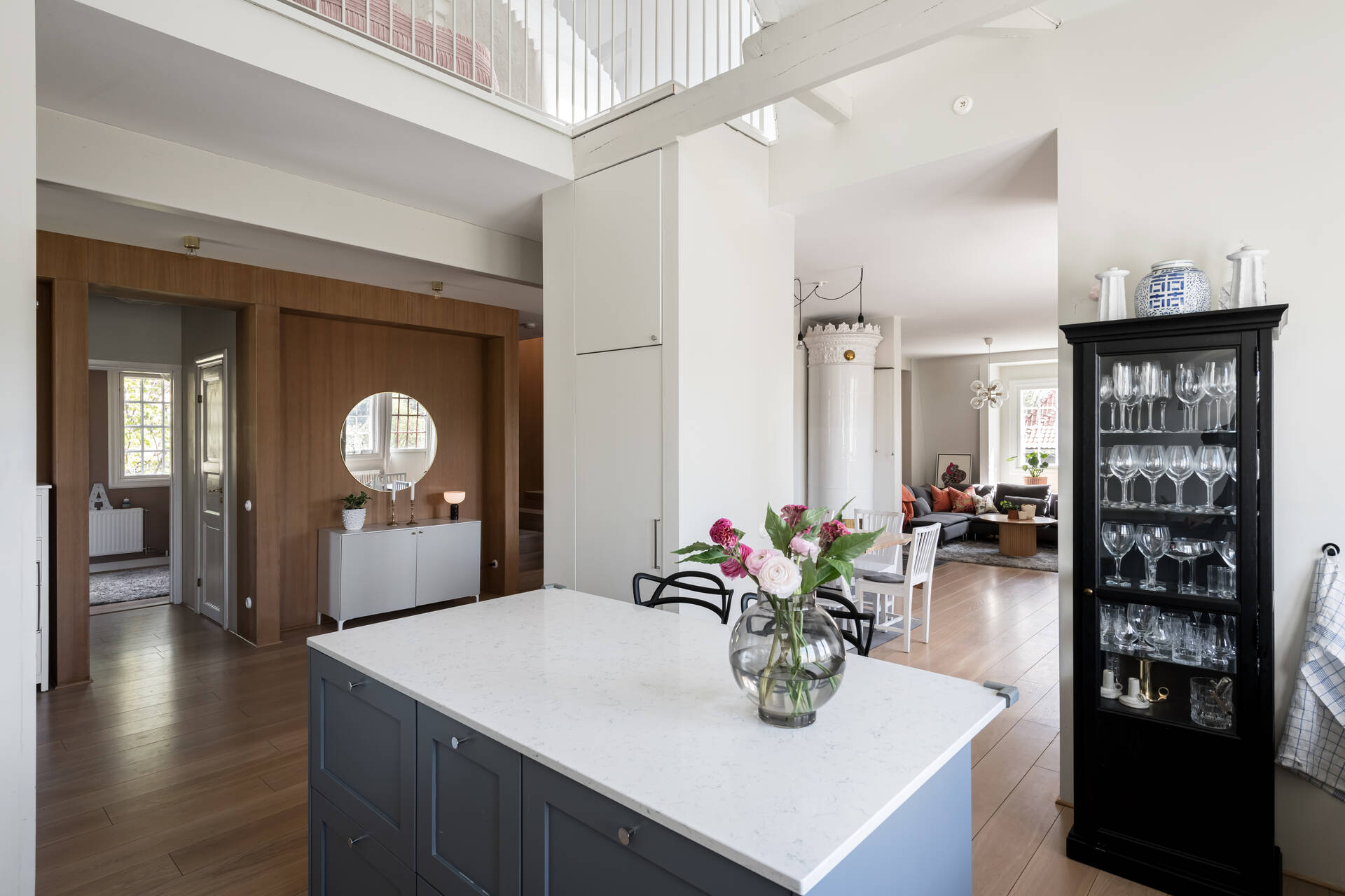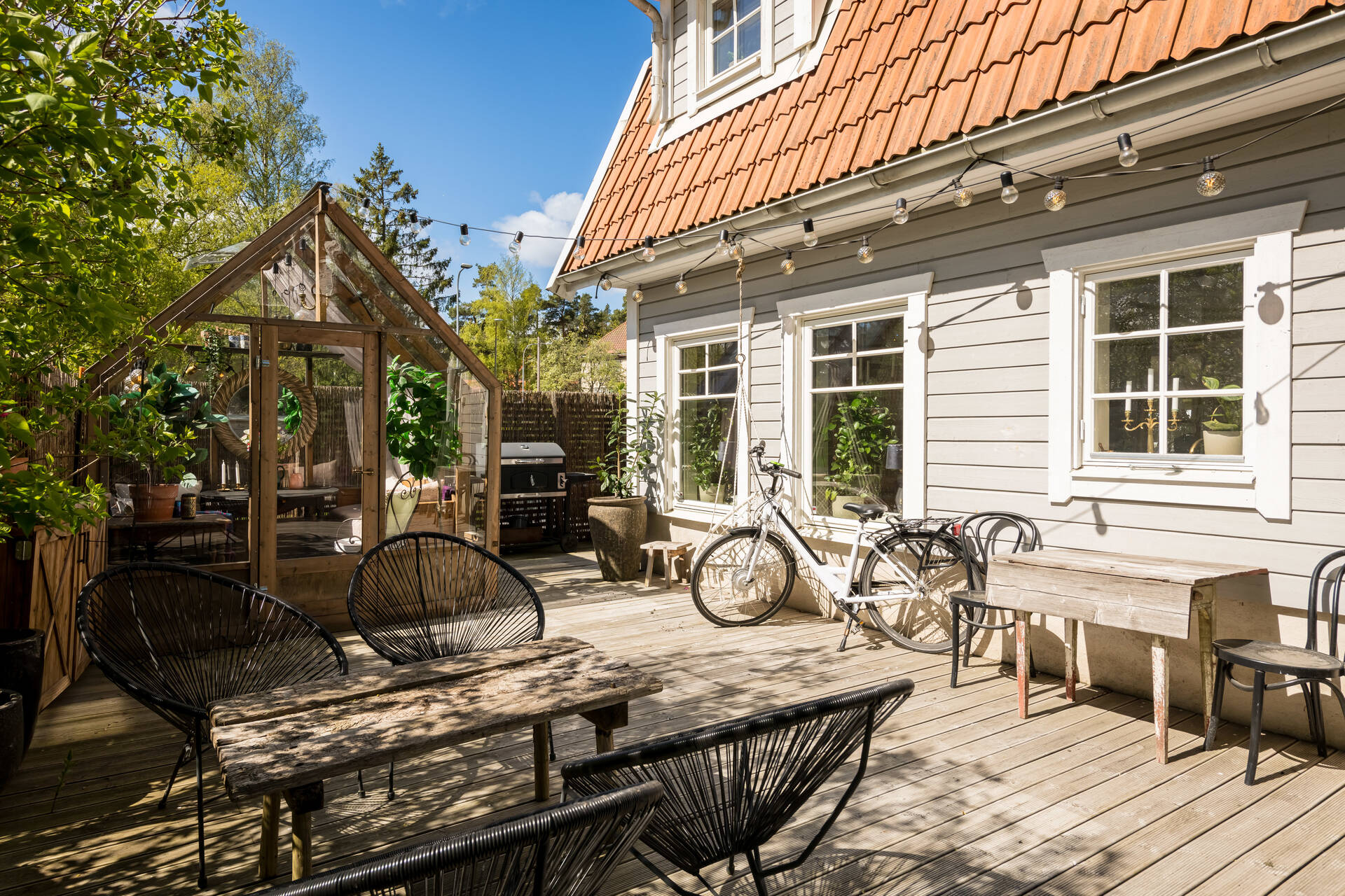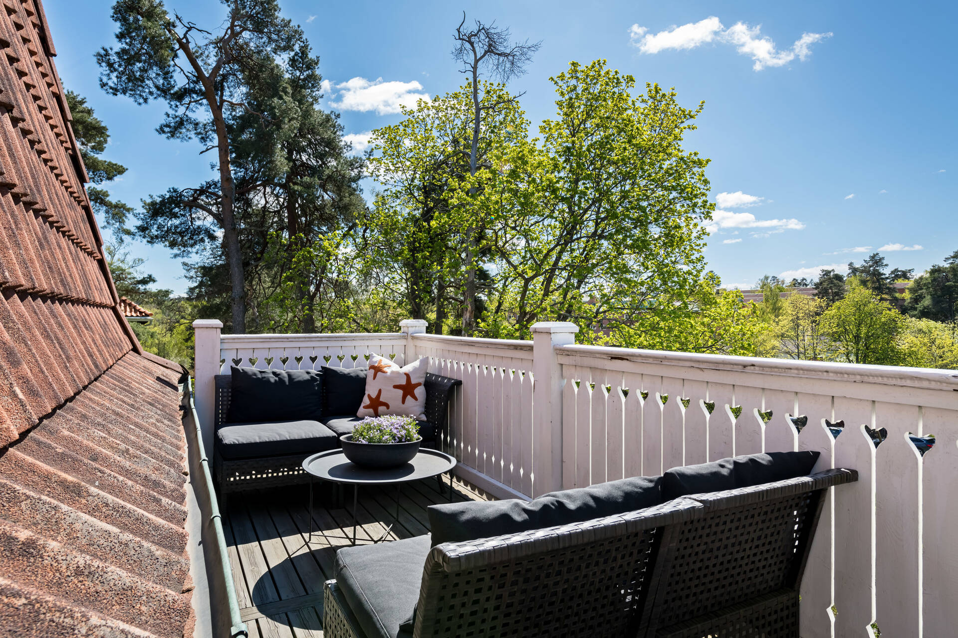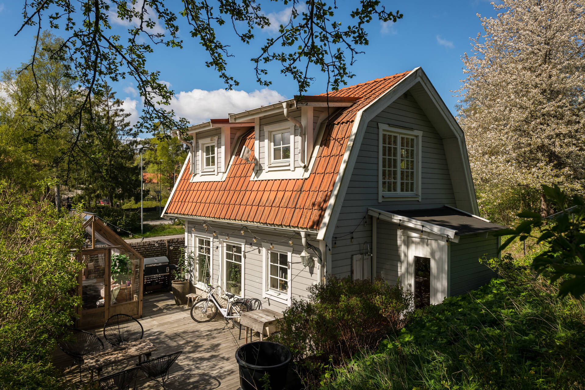 Belägen högt uppe på höjden stoltserar denna stilfulla villa signerad Nils Persson (1906) samt tillbyggd av välkända Jacob J:son Gate (1914). Finstämd nationalromantisk arkitektur i Lidingös klassiska villakvarter. Här möts man av kontrasterande liggande och stående träpanel, utmejslade burspråk, spröjsade fönster och mansardtak. Interiört luftiga stora sällskapsrum med vältilltagen takhöjd. Flertalet tidstypiska attribut såsom flertalet öppna spisar, stuckaturer och pardörrar. Möjlighet att skapa ett hem perfekt för den stora familjen med stora sällskapsytor i anslutning till trädgården och privat ombonad sovrumsdel en trappa upp. Milsvid utsikt över det bildsköna villaområdet från det övre planet. Påkostad grindstuga, perfekt för uthyrning, au-pair eller långväga gäster. Idag disponeras huvudbyggnaden som två separata hem och grindstugan som ett tredje. Läget i Hersby kan inte bli bättre med omedelbar närhet till natur, utmärkta kommunikationer och välrenommerade förskolor och skolor på gångavstånd. Varmt välkommen på bokad visning.