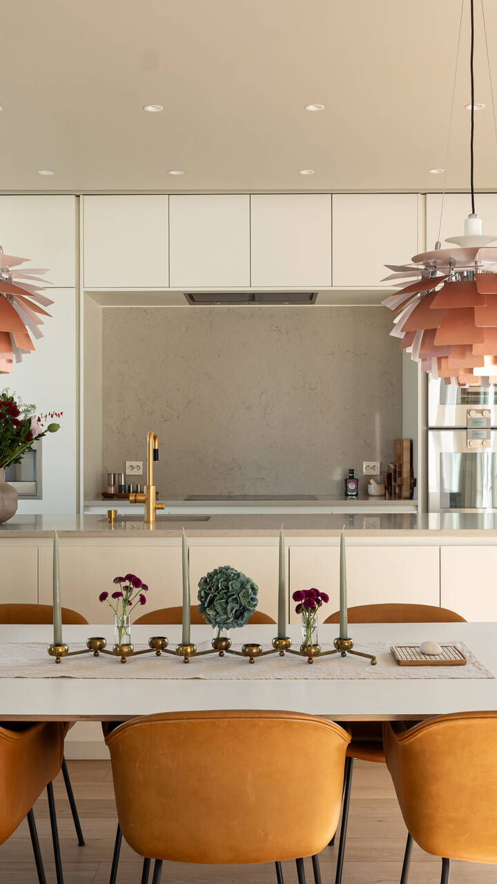 Det nyrenoverade köket är påkostat i varje detalj och utrustat med exklusiva vitvaror från Gaggenau. Här finns kyl och frys, spishäll, ugn, mikrovågsugn och ångugn, inbyggd kaffemaskin, vinkyl, diskmaskin samt diskho och värmelåda.
