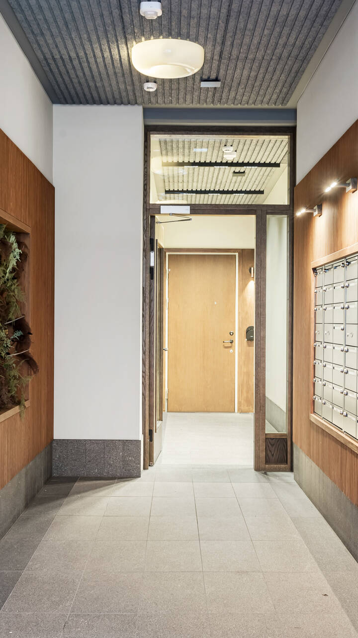 I välrenommerade Tile House högt upp i huset återfinns denna fantastiska tvåa i söderläge. Lägenheten om 45 kvm präglas av noga utvalda, högkvalitativa material i jordnära kulörer. Vardagsrum med ljust parkettgolv i ek och rikligt ljusinsläpp genom tre stora fönsterpartier som sträcker sig hela vägen från golv till tak samt access till fransk balkong i söder som vetter ut mot lugn innergård. Exklusivt kök från Ballingslöv med elegant bänkskiva i kompositsten, vitrinskåp samt all önskvärd maskinell utrustning av premiumkvalitet. Välplanerat sovrum med plats för 160 cm säng och generös förvaring genom walk-in closet. Smakfullt, helkaklat badrum utrustat med wc, dusch, kombimaskin, golvvärme (vattenburen), handfat med kommod samt badrumsdörr (2,3 m) i ek. Välkomnande hall med kapphylla samt garderob från Ballingslöv. Genomgående takhöjd om 2,6 m bortsett från badrum som har en takhöjd om 2,5 m. Trevlig förening med bland annat garage och stor gemensam takterrass i huset. Optimalt belägen med bland annat restauranger, matbutiker, gym och kommande tunnelbanestation precis utanför porten. Sammantaget ett förstklassigt boende i förening som kan acceptera juridisk person.
