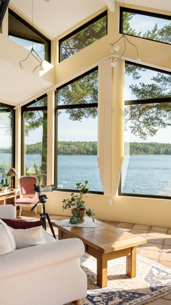 Huset är en enplansvilla med magisk sjöutsikt från stora fönster, generösa sällskapsytor med matsal och vardagsrum i fil, samt ett elegant kök från Ballingslöv (2014) med vitvaror från Electrolux. Inomhus finns även en vacker inomhuspool i mosaik och på norra sidan en utbyggnad med panoramafönster och imponerande takhöjd på 4,5 meter.