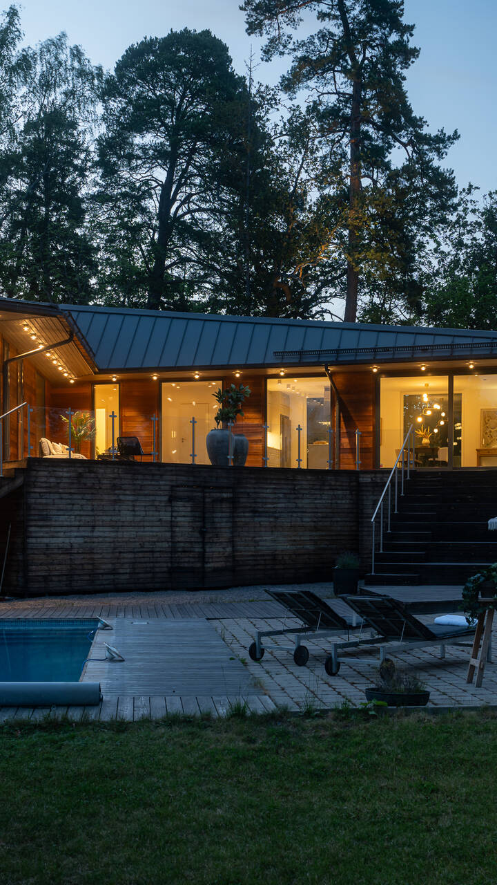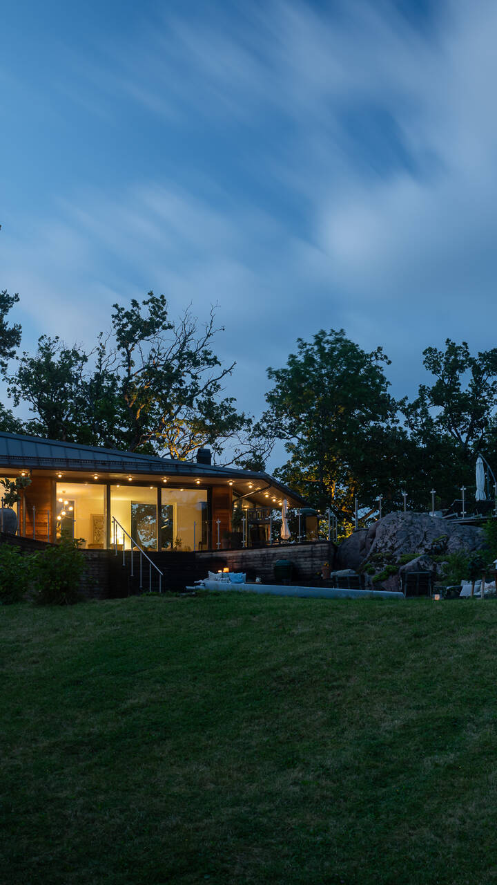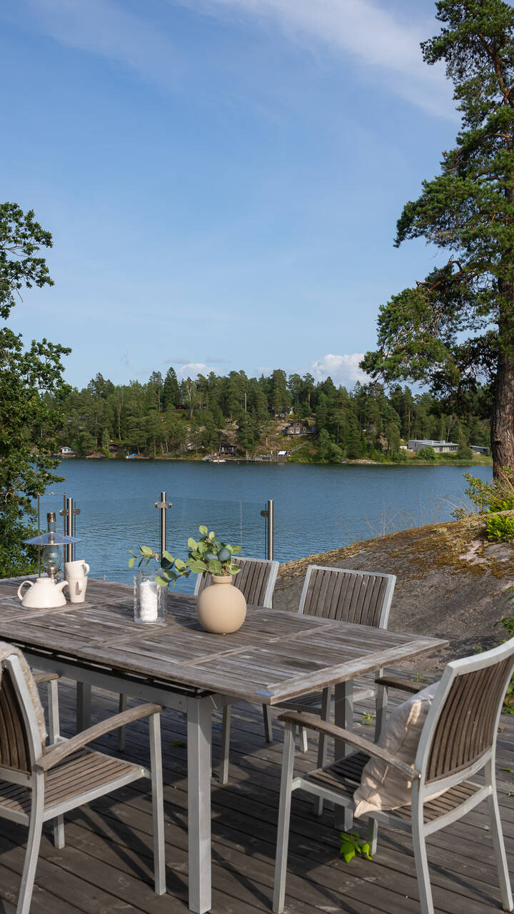 Med högt och privat läge ligger denna fantastiska strandtomt som fångar upp dagens alla soltimmar. Belägen på lugn återvändsgata med spatiös tomt rakt i söderläge. Fastigheten består av en arkitektritad huvudbyggnad från 2018 i exklusiva material, gäststuga, brygga med sjöbod samt generös naturtomt med bland annat pool och flera sällskapsytor. Social och välplanerad huvudbyggnad med öppen planlösning mellan kök och vardagsrum som integrerar med utemiljön tack vare stora fönsterpartier som dessutom släpper in rikligt med dagsljus. Huvudbyggnaden består även av en privat sfär med fyra välplanerade sovrum med air-condition installerat i samtliga. Här finns också två exklusiva badrum varav ena utrustat med bland annat ångbastu. Källare med TV-rum och möjlighet till vinkällare. Generös altan som sträcker sig längs större delen av huset med ett flertal sällskapsytor att tillgå. Trevligt poolområde som gränsas av med trätrall och vacker stenbeläggning samt stor öppen gräsyta i direkt anslutning. Här finns även gäststuga utrustad med sovrum, vardagsrum/kök, badrum samt loft. Egen brygga som nås via elegant trappa från huvudbyggnaden och leder vidare ned genom vacker naturtomt. Segelbåtsdjup hela vägen fram till bryggan. Här finns även sjöbod med bastu. Enkel access från Stockholm city. Sammantaget en optimal skärgårdsidyll i rofylld miljö med fantastiskt solljus från morgon till kväll.