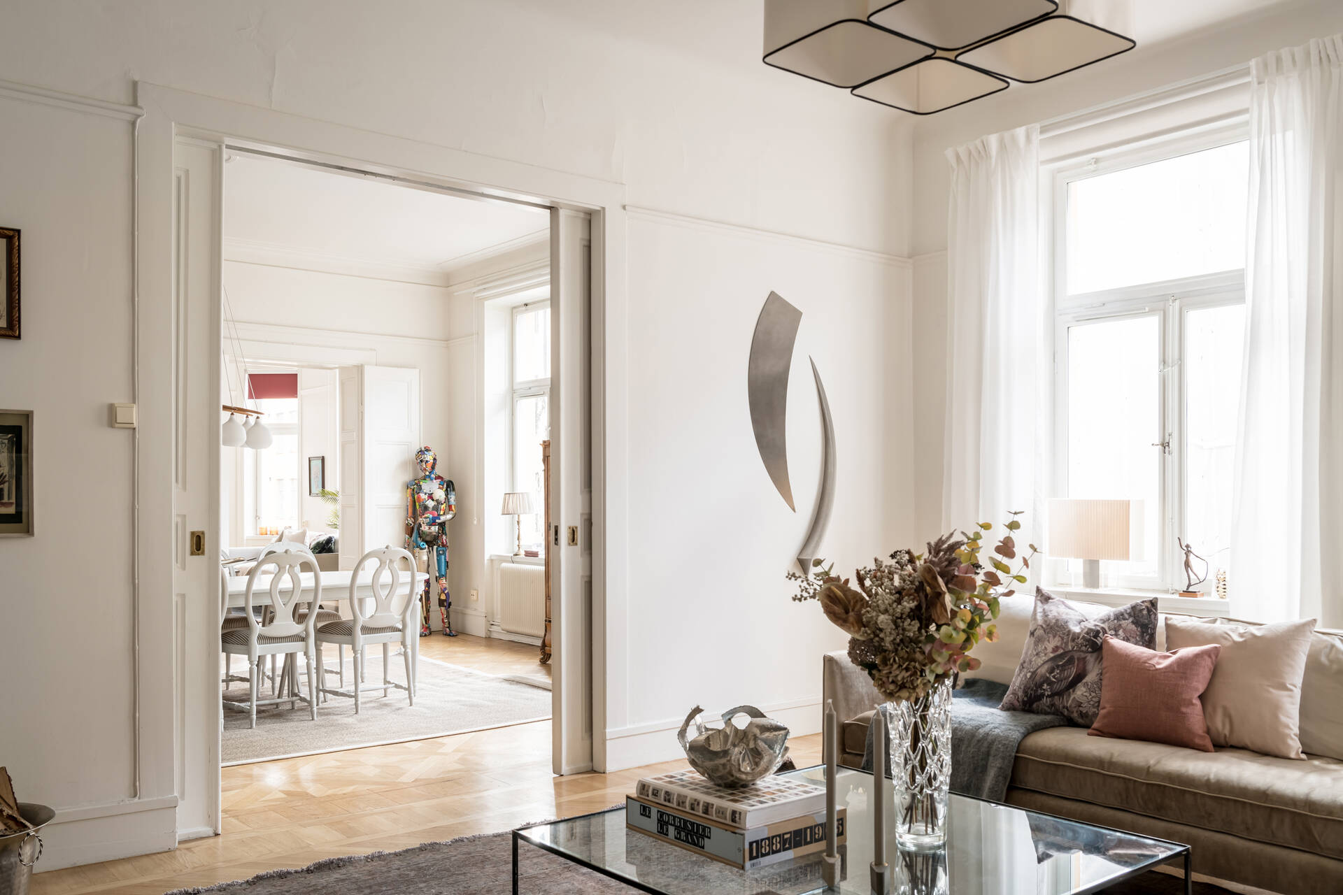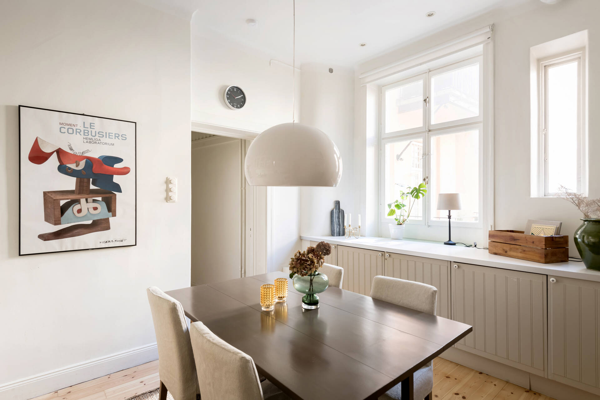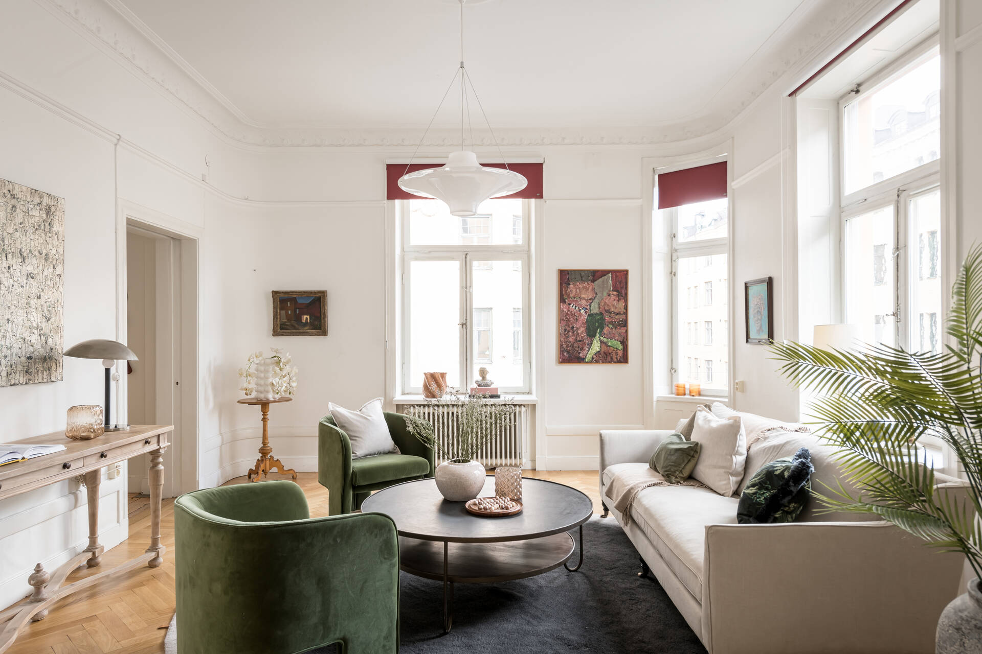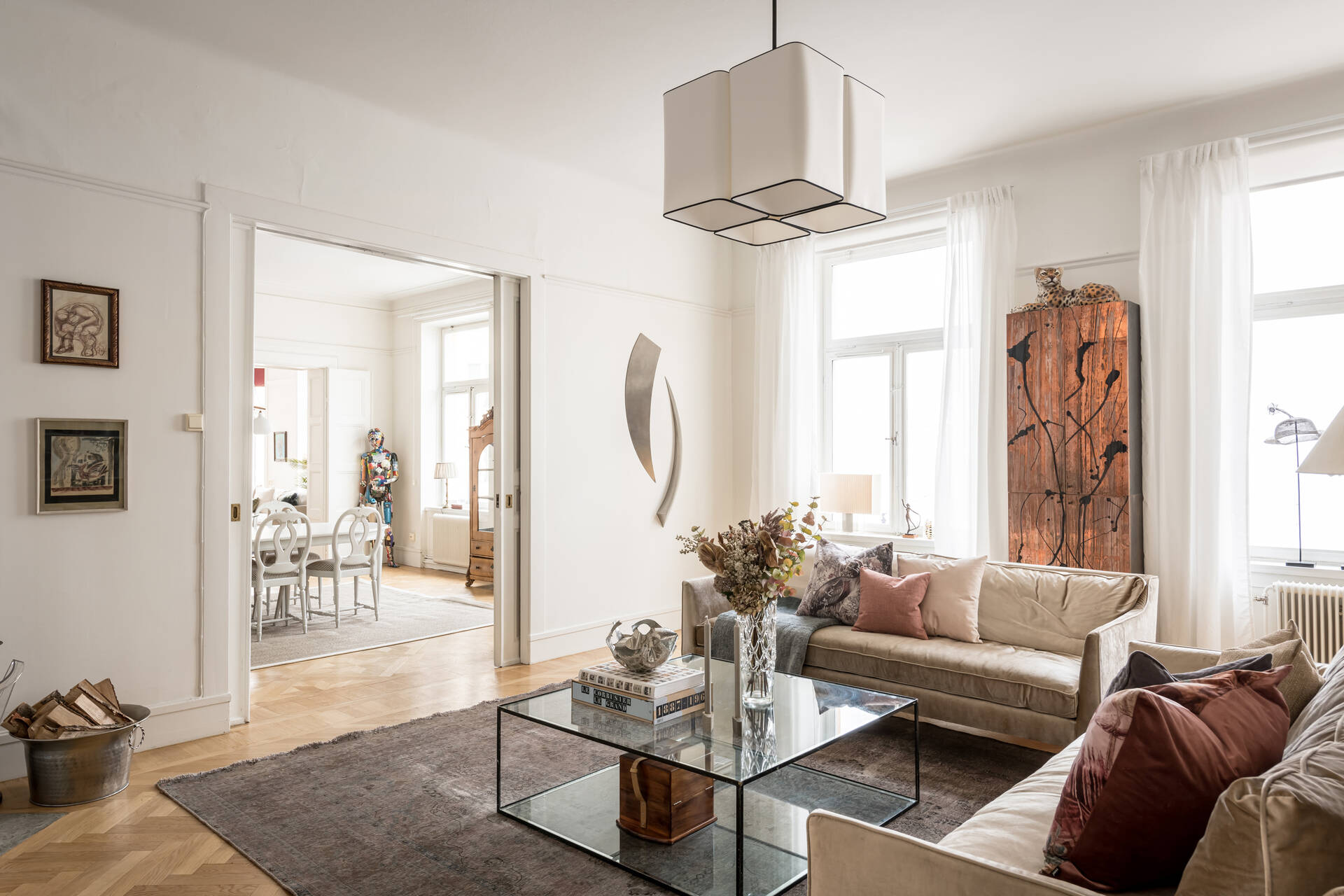 Denna klassiska Östermalmsvåning erbjuder en öppen och luftig atmosfär som genomsyras av tidlös elegans och välbevarade originaldetaljer såsom fiskbensparkett, stuckatur, kakelugnar, stora fönsterpartier, spegeldörrar samt vägg- och taklister. Här bjuds generösa sällskapsytor med tre stora sällskapsrum i fil med utsikt över gatan och Östermalm. Det finns tre bevarade kakelugnar. Tre till fyra stora sovrum. Balkongen mot innergården erbjuder en fridfull reträtt. Fullt utrustat kök som förlängs genom en klassisk serveringsgång med generösa arbetsytor och gott om förvaring. Till lägenheten hör en uthyrningsdel om ett rum med egen ingång. Denna går även att bygga in i huvudvåningen för extra sovrum eller kök. Hela våningen klassas som en lägenhet med tre olika ingångar. Här bor du i en välskött förening med låg belåning på bästa adress i representativ hus anno 1903. Varmt välkommen på visning!