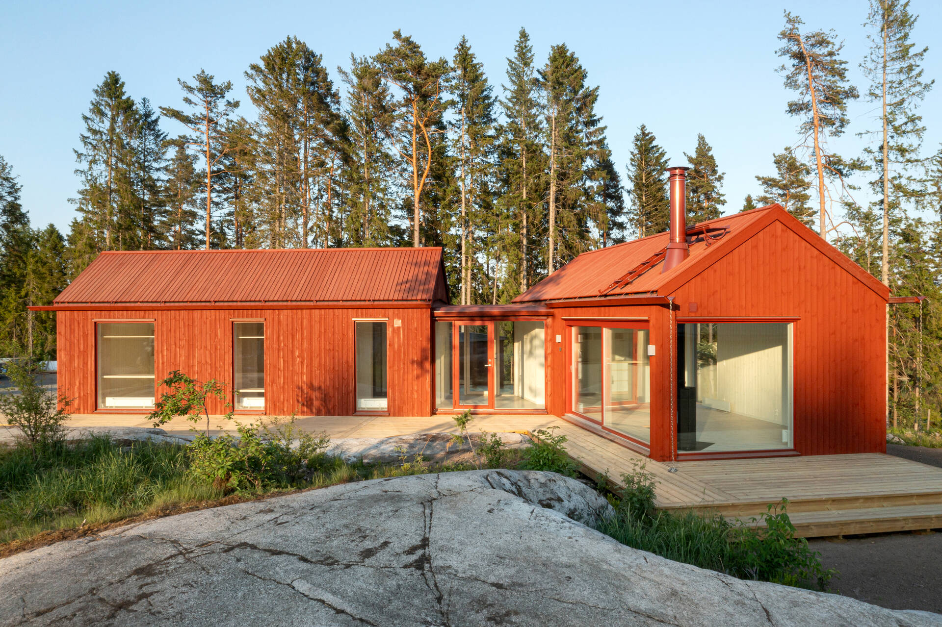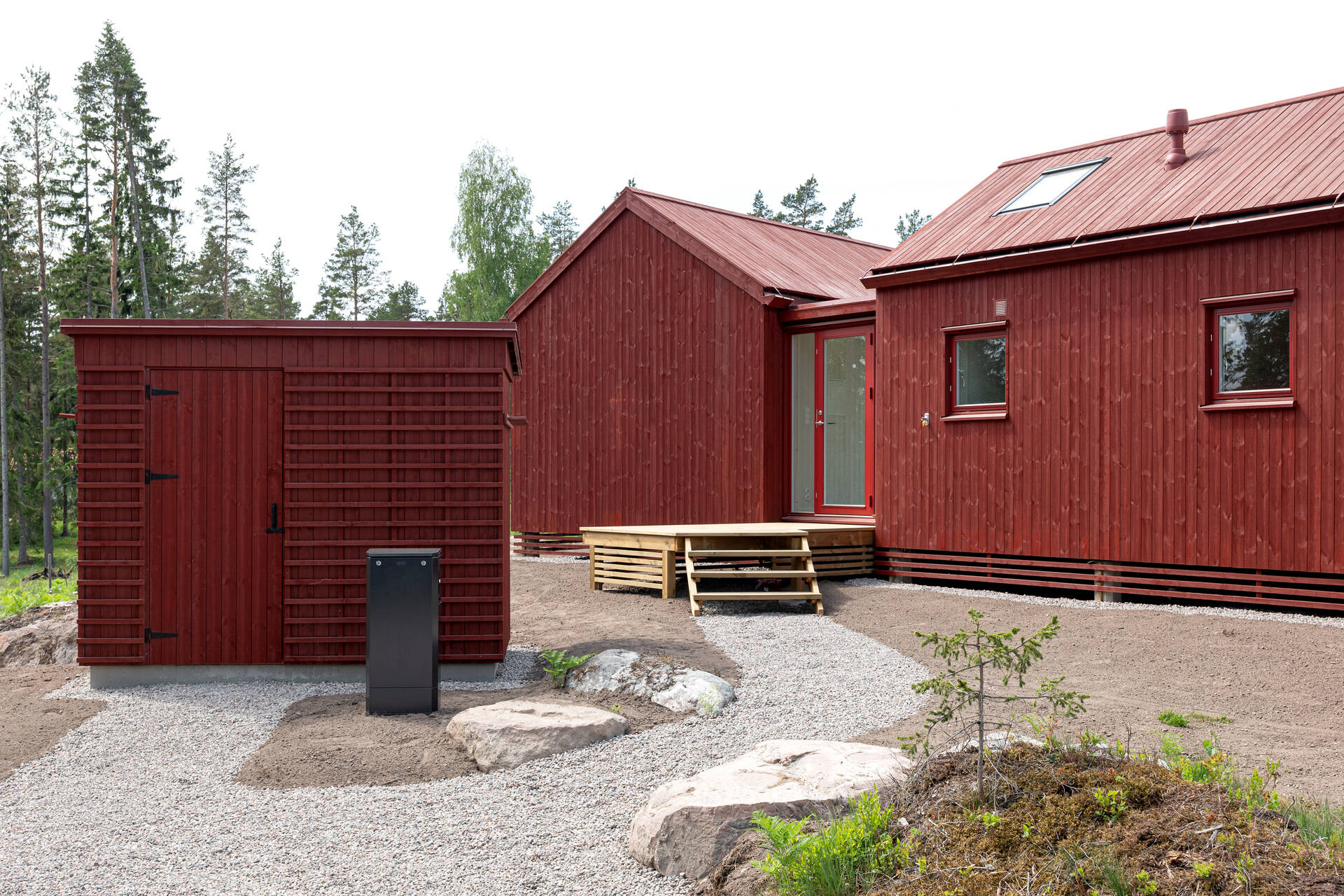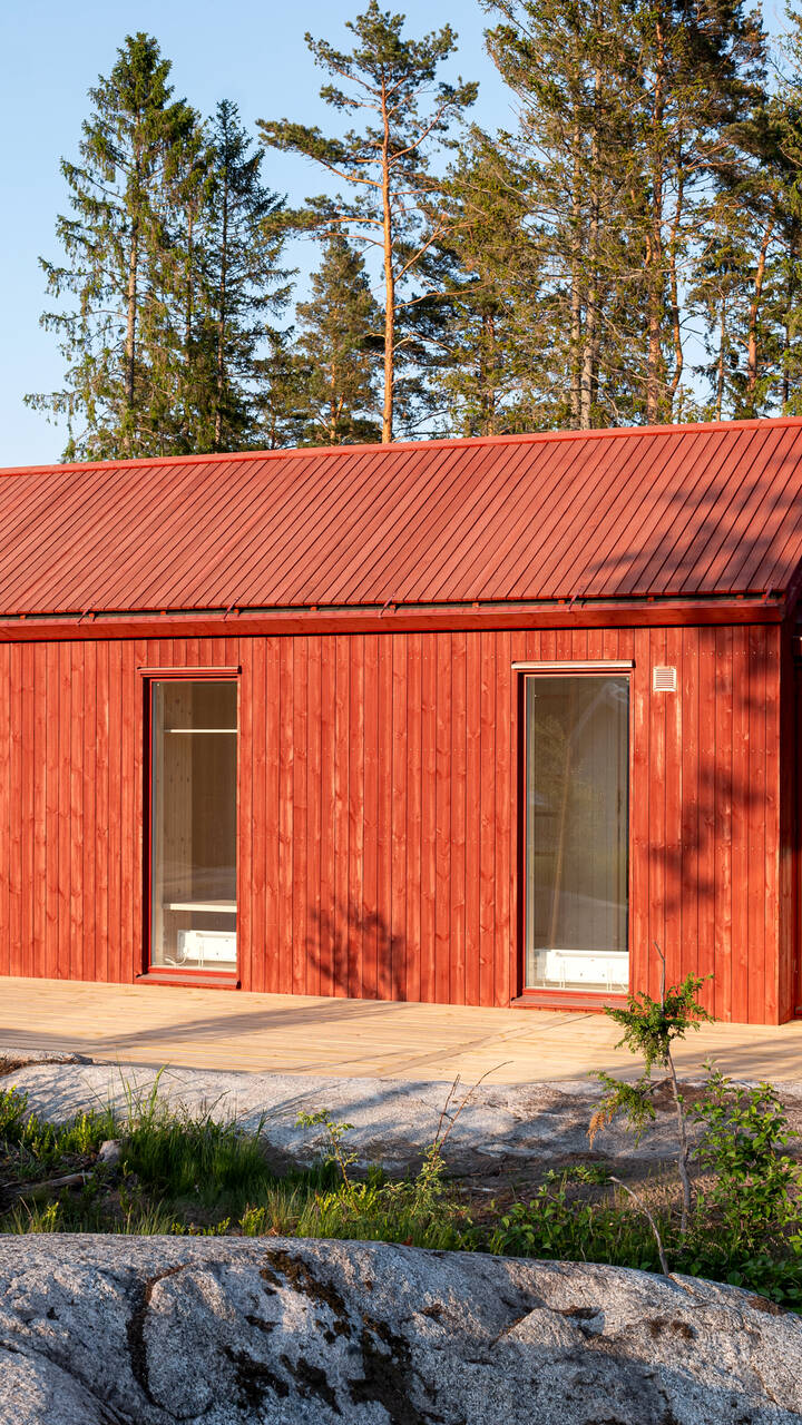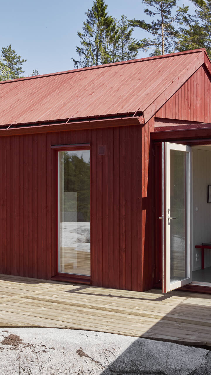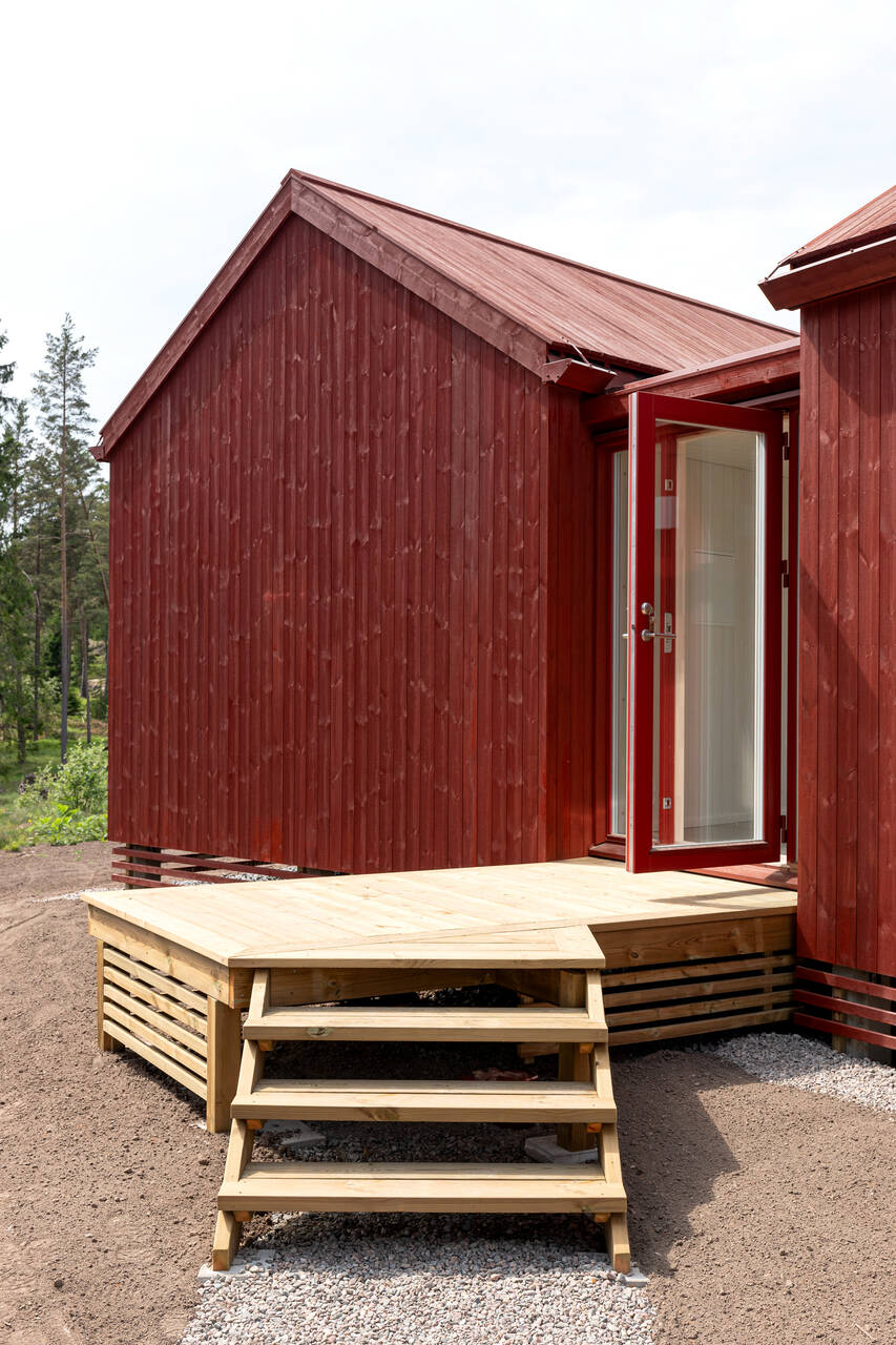 Idyllisk invid havet i södra Roslagen återfinns i Mörtsunda by samtida arkitektur med glasad entré och klassisk färgsättning. Här presenterar på högt belägen tomt om 1764 kvm hustillverkare Sommarnöjen sitt faluröda Tidslös Sommar 80 Duo med en boarea om 67 kvm. Duo består av två separata huskroppar, en social del och en privat del, sammanlänkade av en glasad entré. Detta ger en gårdskänsla med skyddad uteplats i vinkeln av huset. I den sociala huskroppen finns generösa ytor för matlagning och umgänge. I den privata huskroppen finns badrum, två sovrum samt ett loft med takfönster för övernattande gäster. Ett fantastisk boende med härliga uteplatser mot ängar och hav. Strax nedanför finns en fin strand, möjlighet till båtplats samt vackra strövområden och vandringsleder i natursköna omgivningar. Med bara en knapp timmes körtid från Stockholm ges lantlig charm och utsikt över havsviken i Norrtäljes södra skärgård. Varmt välkommen till ett helt nytt och inflyttningsklart boende med flexibelt tillträde.
