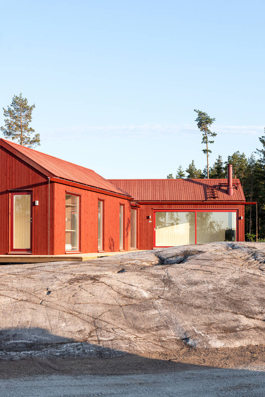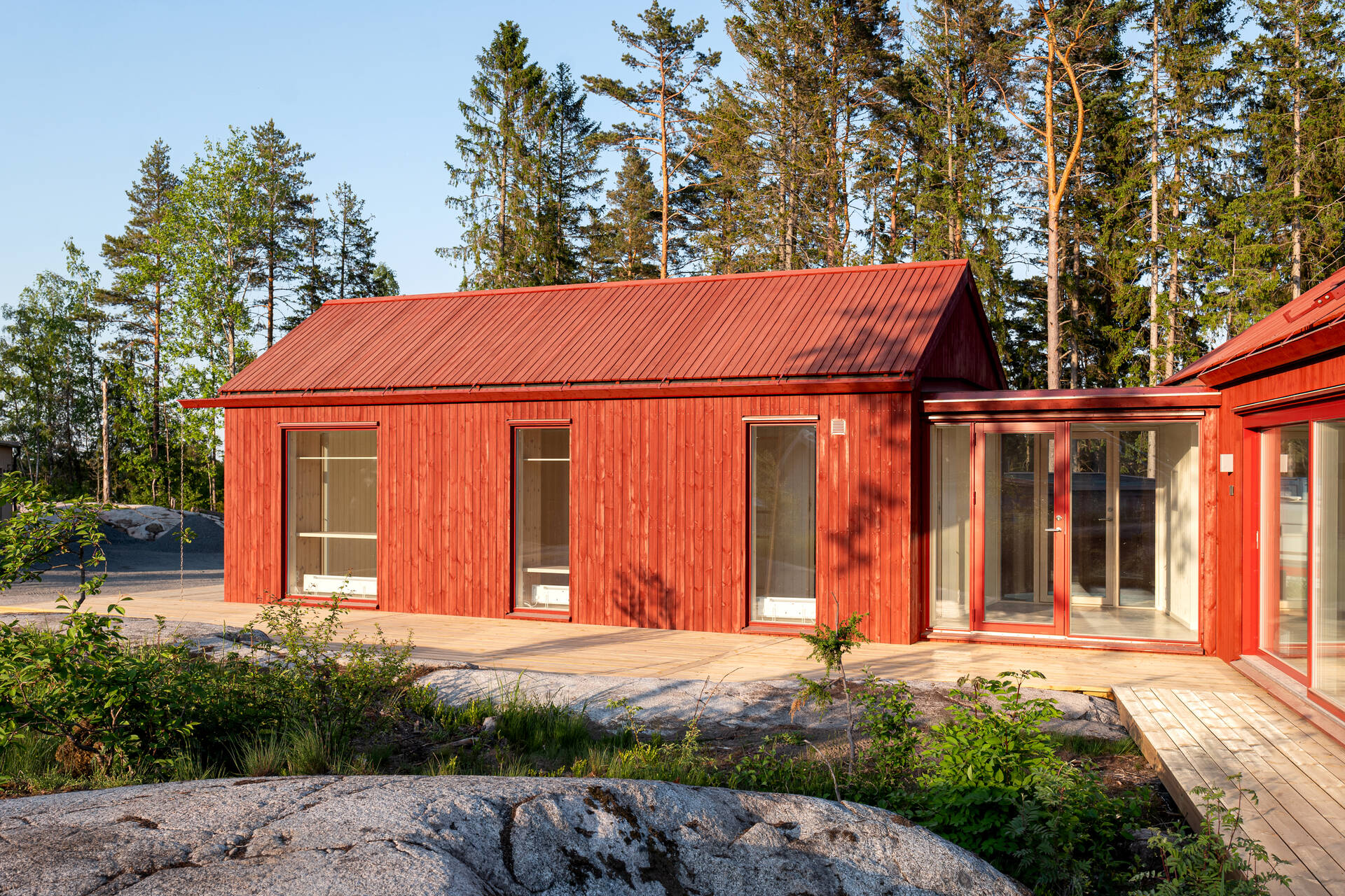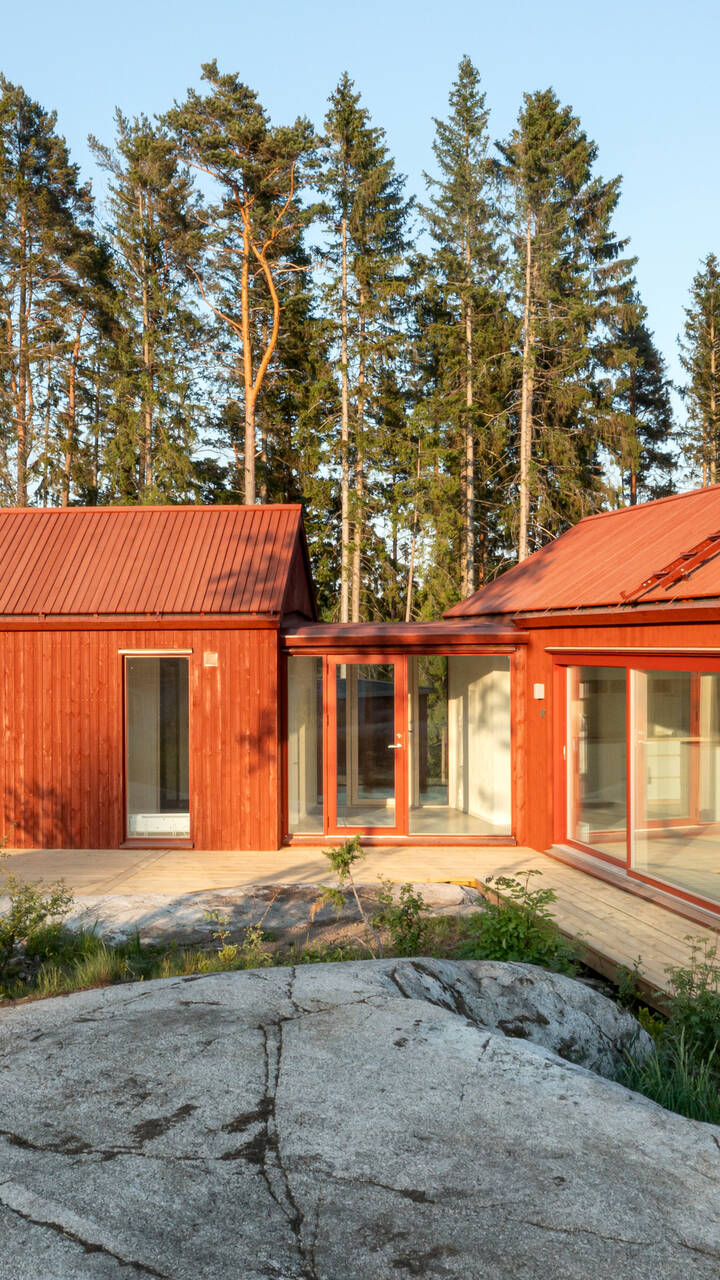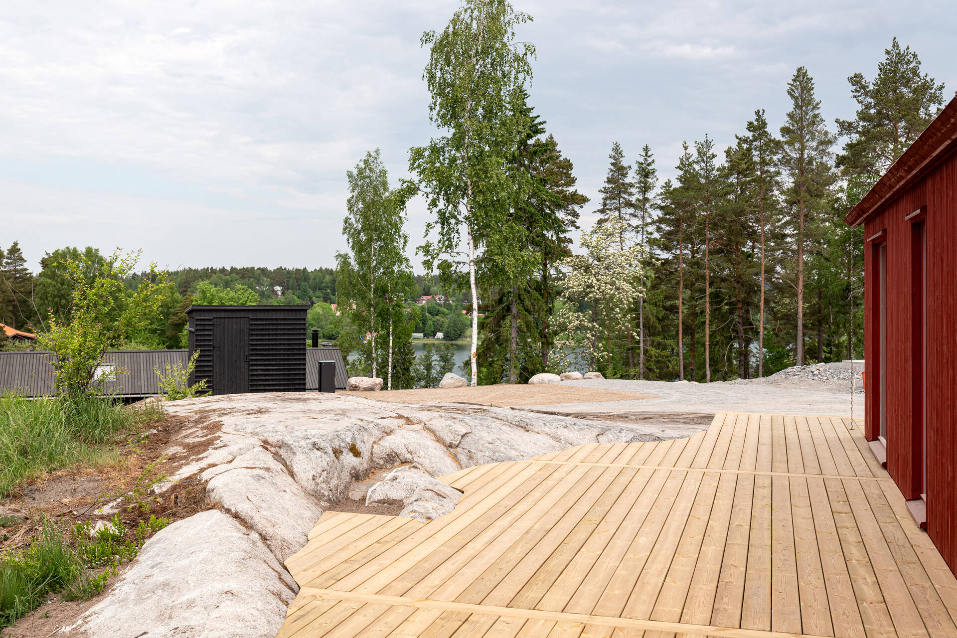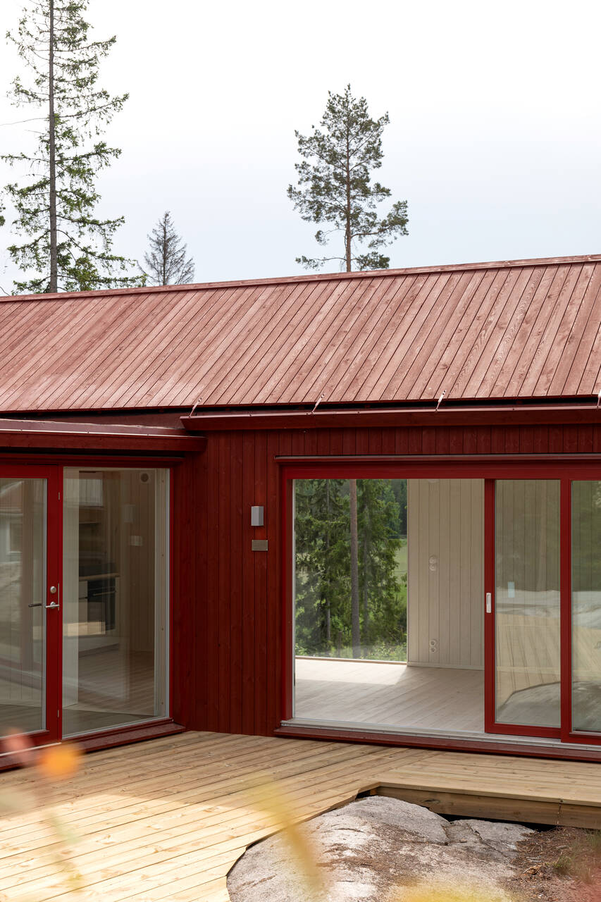 Idyllisk invid havet i södra Roslagen återfinns i Mörtsunda by samtida arkitektur med glasad entré och klassisk färgsättning. Här presenterar på högt belägen tomt om 1764 kvm hustillverkare Sommarnöjen sitt faluröda Tidslös Sommar 80 Duo med en boarea om 67 kvm. Duo består av två separata huskroppar, en social del och en privat del, sammanlänkade av en glasad entré. Detta ger en gårdskänsla med skyddad uteplats i vinkeln av huset. I den sociala huskroppen finns generösa ytor för matlagning och umgänge. I den privata huskroppen finns badrum, två sovrum samt ett loft med takfönster för övernattande gäster. Ett fantastisk boende med härliga uteplatser mot ängar och hav. Strax nedanför finns en fin strand, möjlighet till båtplats samt vackra strövområden och vandringsleder i natursköna omgivningar. Med bara en knapp timmes körtid från Stockholm ges lantlig charm och utsikt över havsviken i Norrtäljes södra skärgård. Varmt välkommen till ett helt nytt och inflyttningsklart boende med flexibelt tillträde.