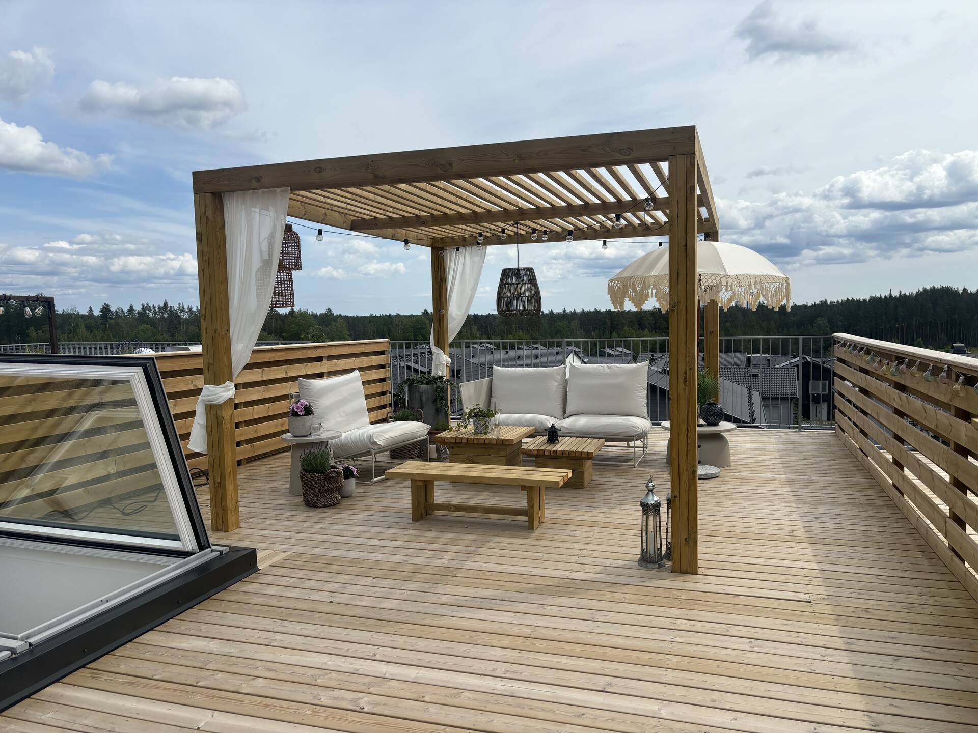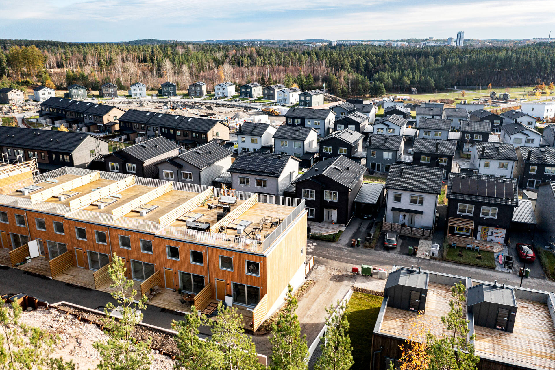 Välkommen till Botanikern i attraktiva Älta i Nacka kommun. 18 naturnära stadsradhus med fri utsikt över områdets övriga bebyggelse, kringliggande natur samt slänten i dalen. Bostäderna utgörs av tre plan om totalt 153 kvm, varav souterrängvåningen 38 kvm räknas som ”biarea”. Sociala ytor som suddar ut gränsen mellan ute och inne, välplanerade sovrum med god förvaring och generöst ljusinsläpp samt exklusiva badrum i naturliga material. På taket ryms en spatiös takterrass om 61 kvm som badar i sol från morgon till kväll. Privat och avskilt läge i samspel med naturen i vackra Ältadalen.