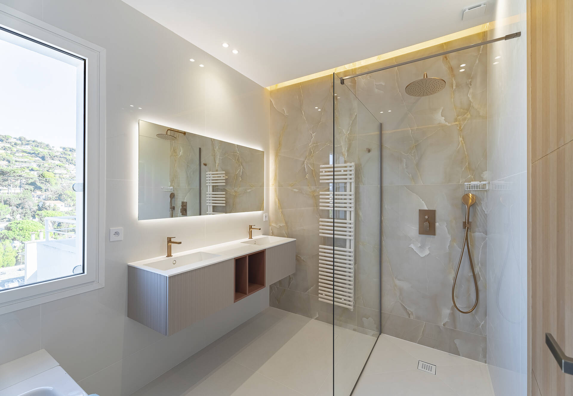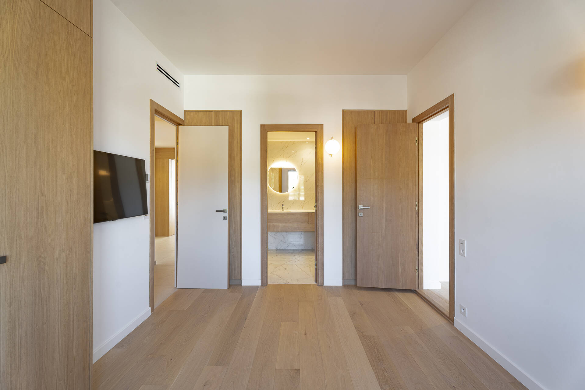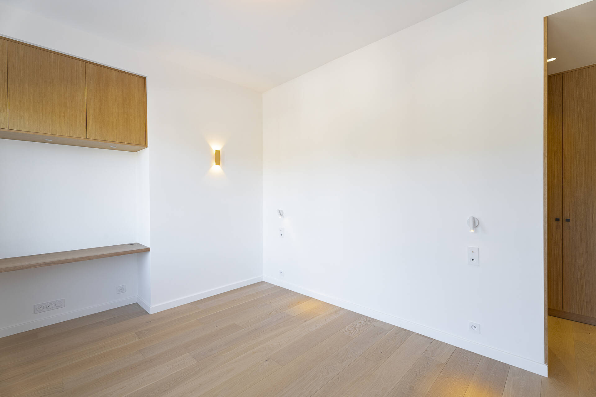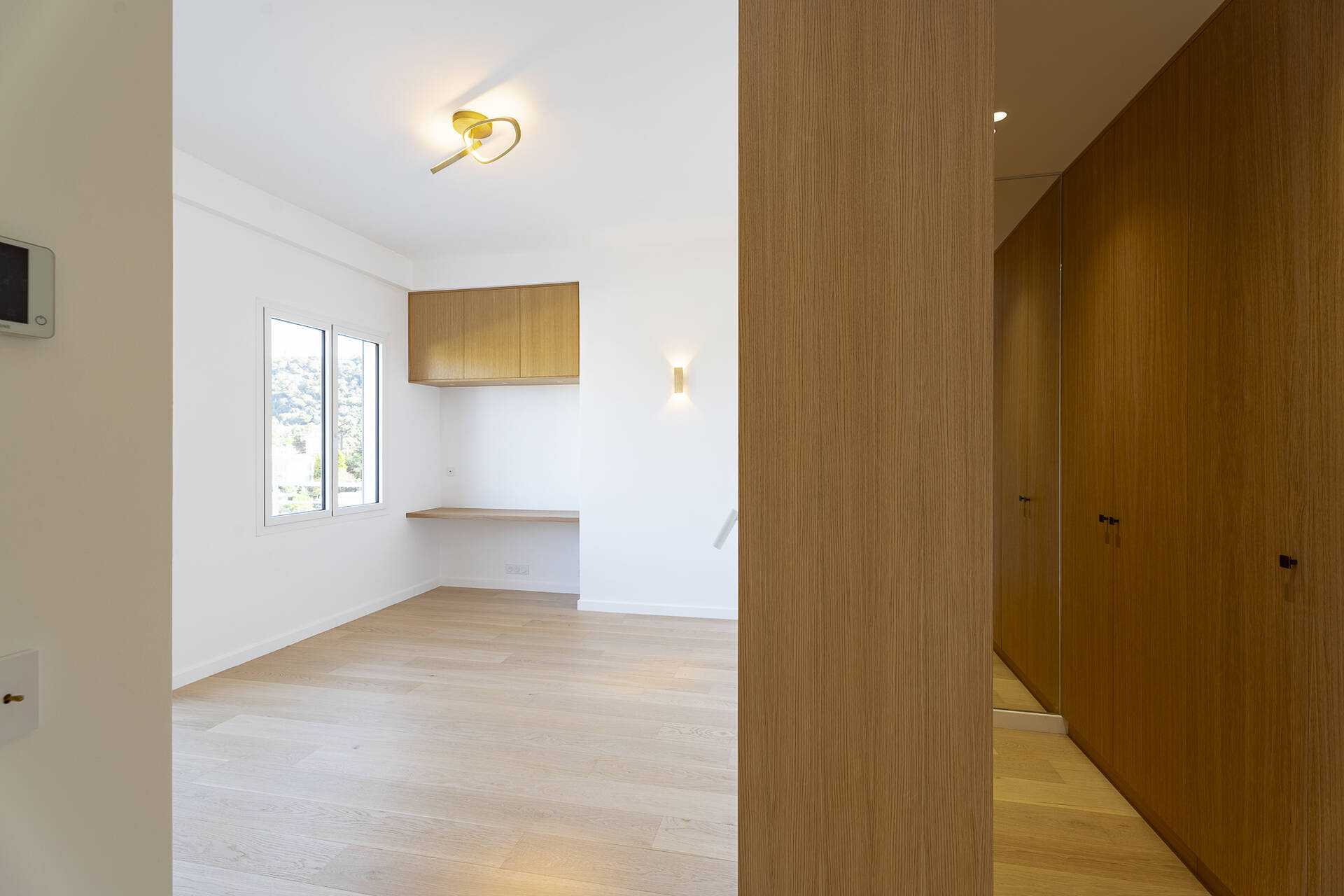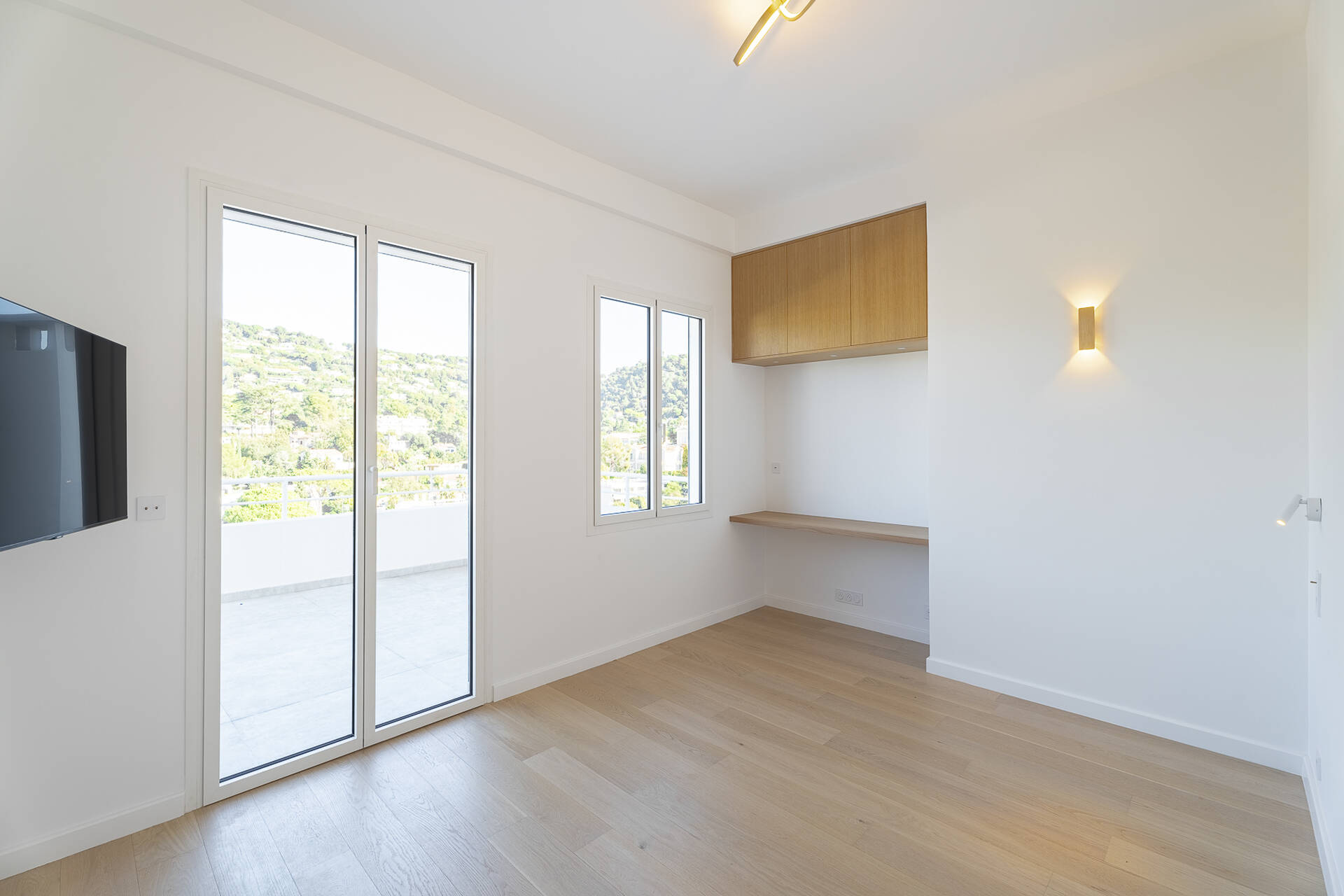 Den har ett exceptionellt master bedroom med en privat terrass på 21 m² och en fantastisk utsikt över Cannes Californie. Sovrummet har en stor walk-in-garderob, ett badrum med både badkar och dusch samt en separat toalett. Ytterligare två sovrum (möjlighet till ett tredje sovrum), vardera med eget duschrum. En fullt utrustad tvättstuga.