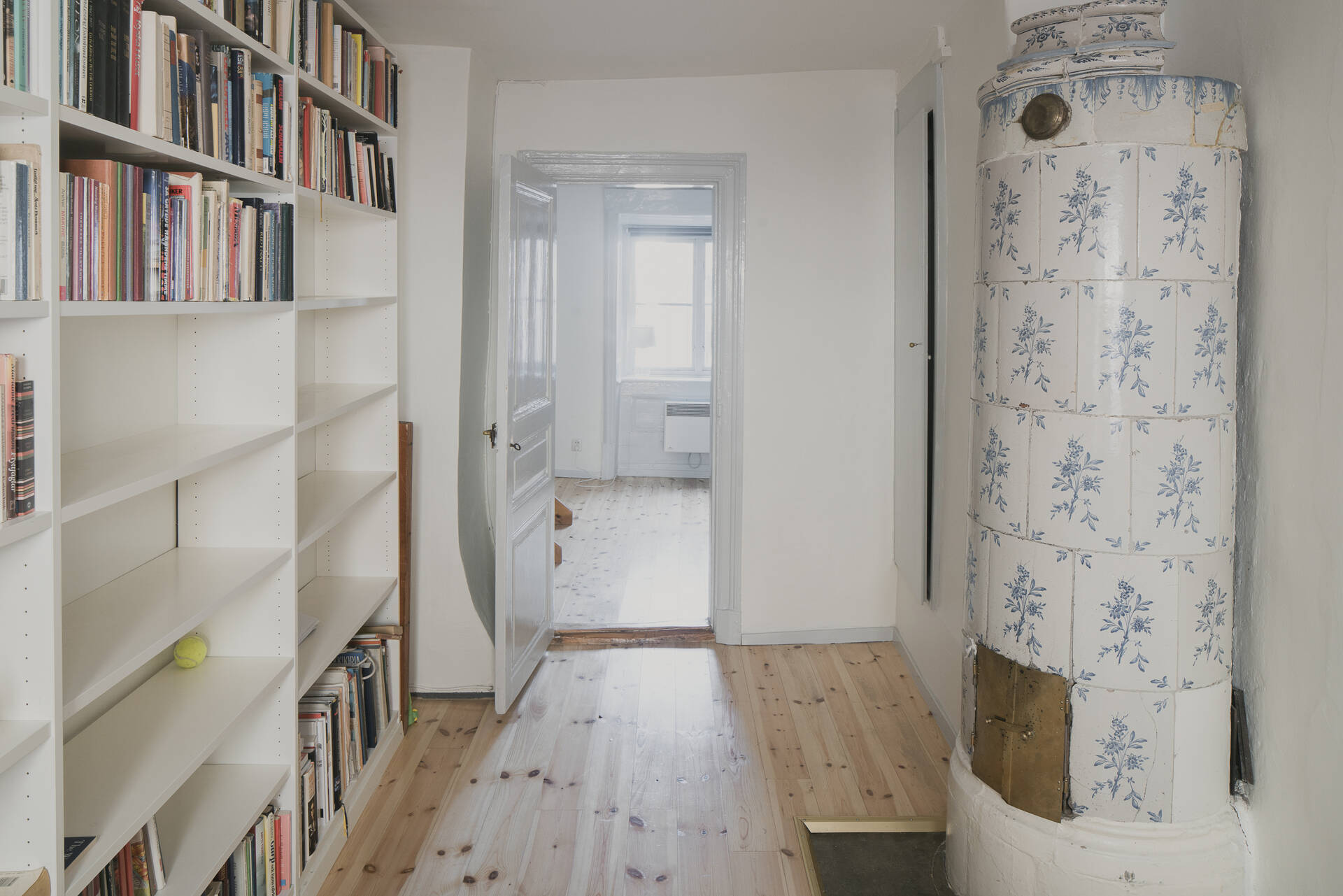 På 1 tr bjuds i eget våningsplan en ypperligt disponerad hörnvåning om 3 rok fördelat på 63 kvm med kök i öppen planlösning i socialt vardagsrum. Utmärkt sovrum i huskropp som är byggd över Bredgränd, med kakelugn och härlig utsikt över vattnet. Badrum och ytterligare sovrum intill entré.