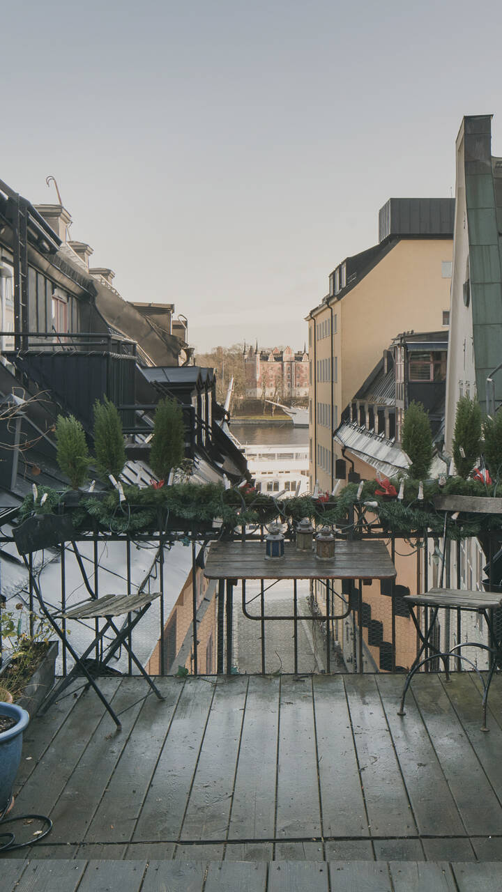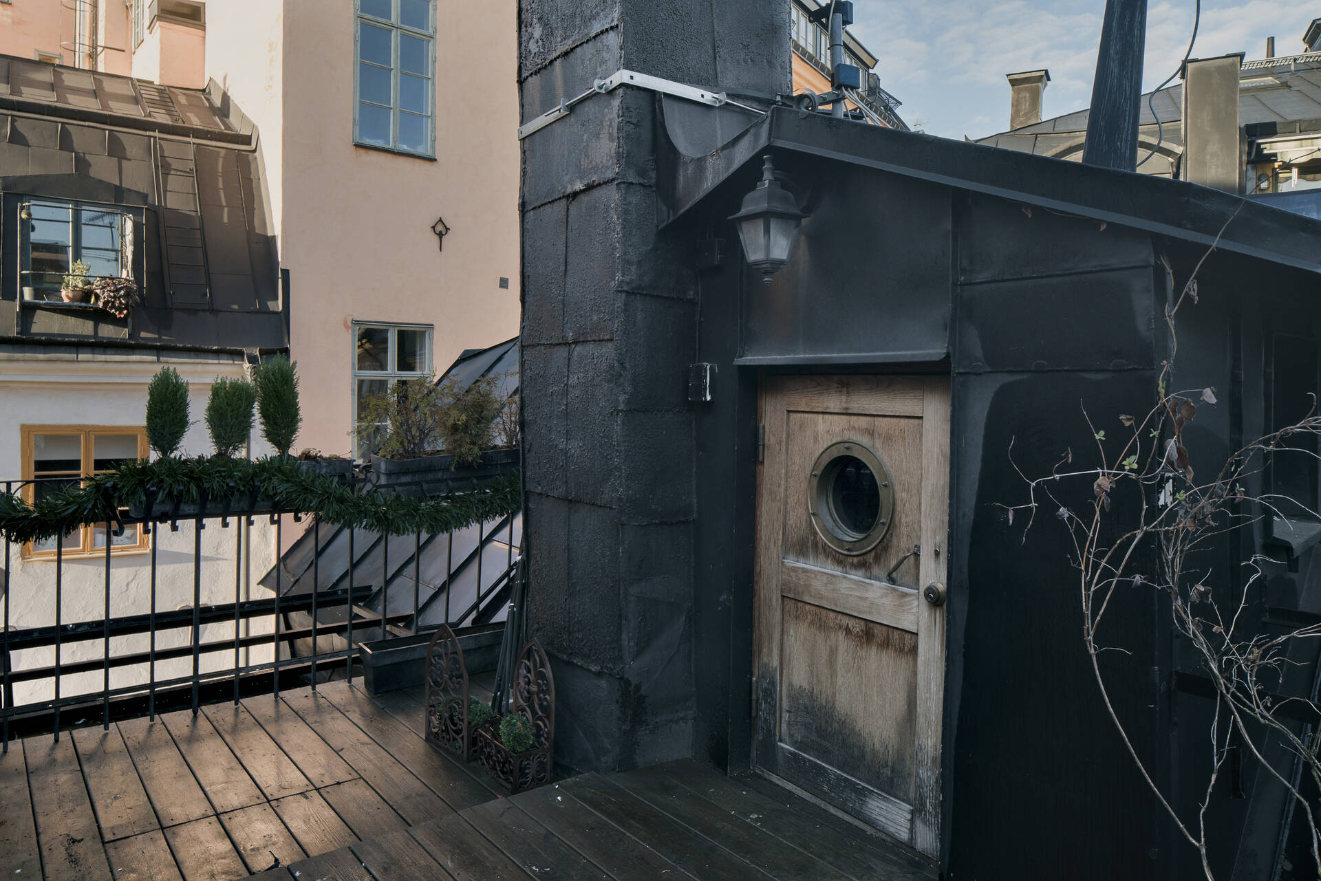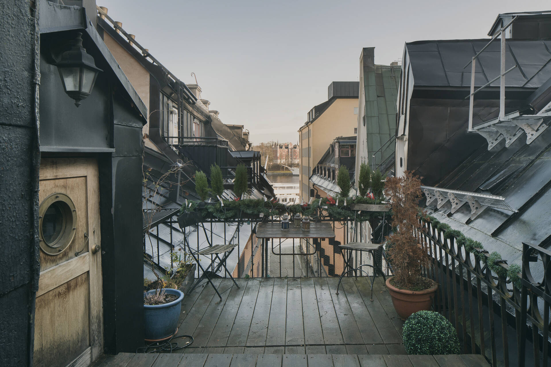 Med entré på 2 tr bjuds i två ovanliggande etage och egna våningsplan en ypperligt disponerad våning med synnerligen karaktäristisk känsla och flertalet välbevarade ursprungsdetaljer. En unik 5a om totalt 116 kvm, varav 101 kvm boarea. I våningsplan tre bjuds kök med ordentlig matplats samt öppen spis, fräscht badrum, två utmärkta sovrum en halv trappa ner i huskropp som är byggd över Bredgränd, med härlig utsikt över vattnet, och ett härligt hörnrum. I våningsplan fyra bjuds övre hall med sovrum på vardera sida, ett med öppen spis. Därefter följer kronan på verket, Gamla Stans äldsta takterrass. En väl tilltagen sådan med anor från mitten av 1700-talet, även denna ligger ovan Bredgränd med härlig vy över takåsar och vatten.