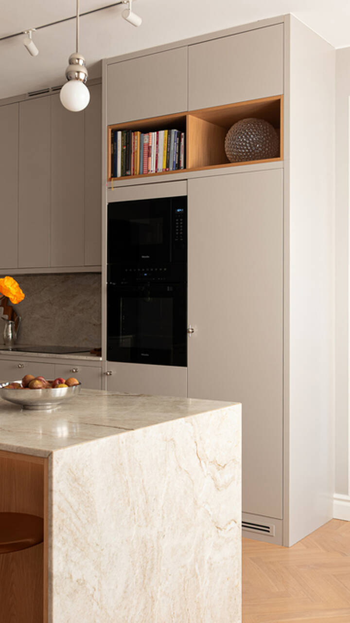 Samtlig maskinell utrustning (mikrovågsugn, varmluftsugn, induktionshäll, kyl och frys) från Miele förutom vinkyl från från mQuvée.