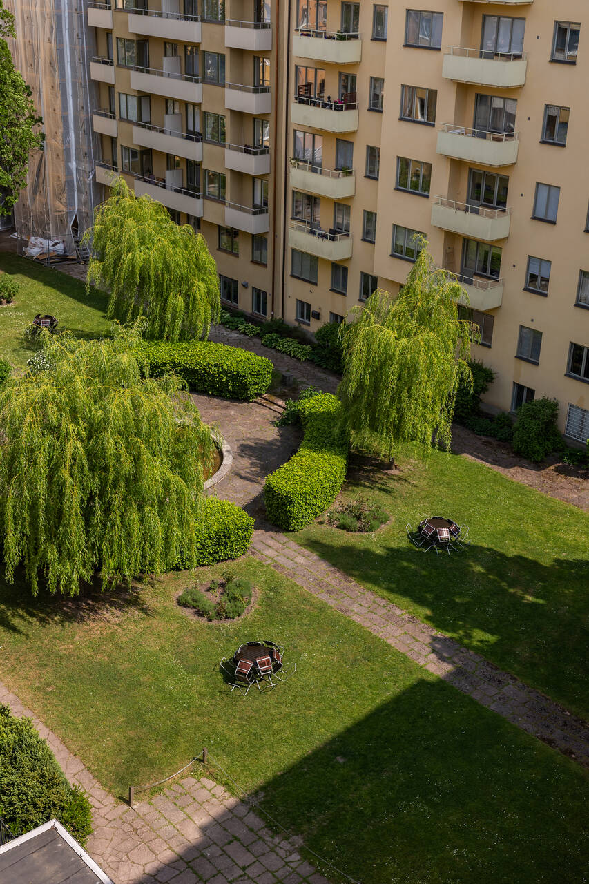 Vidare finns det i de närmsta kvarteren träningsanläggningar i form av SATS samt flera välsorterade mataffärer. Området har gott om parkeringsplatser. Nära till härliga och grönskande Gärdet, Tessinparken samt Gustav Adolfs park. I närheten finns även vackra Hagaparken och Brunnsviken med dess omtalade promenadstråk och badplatser.