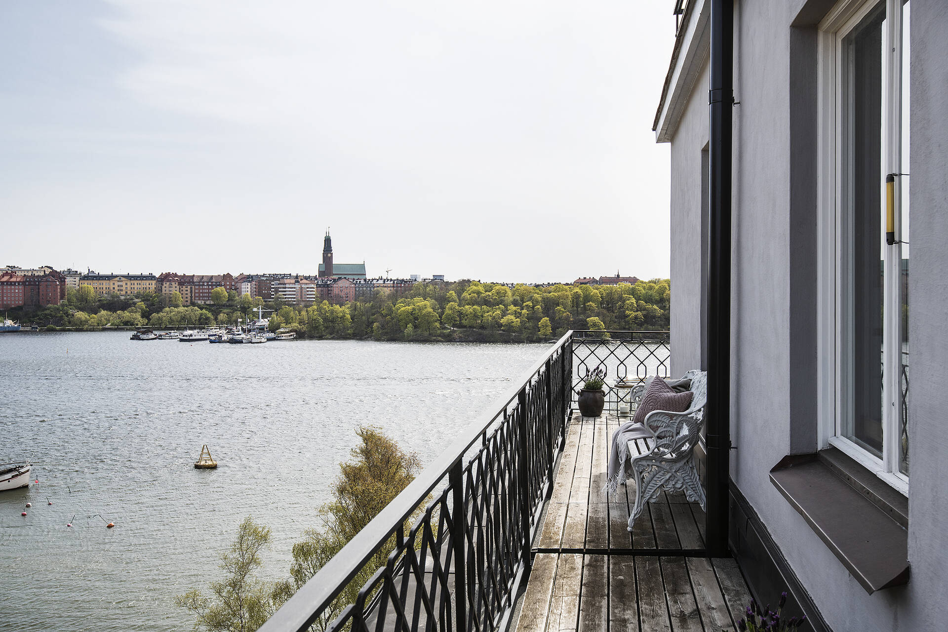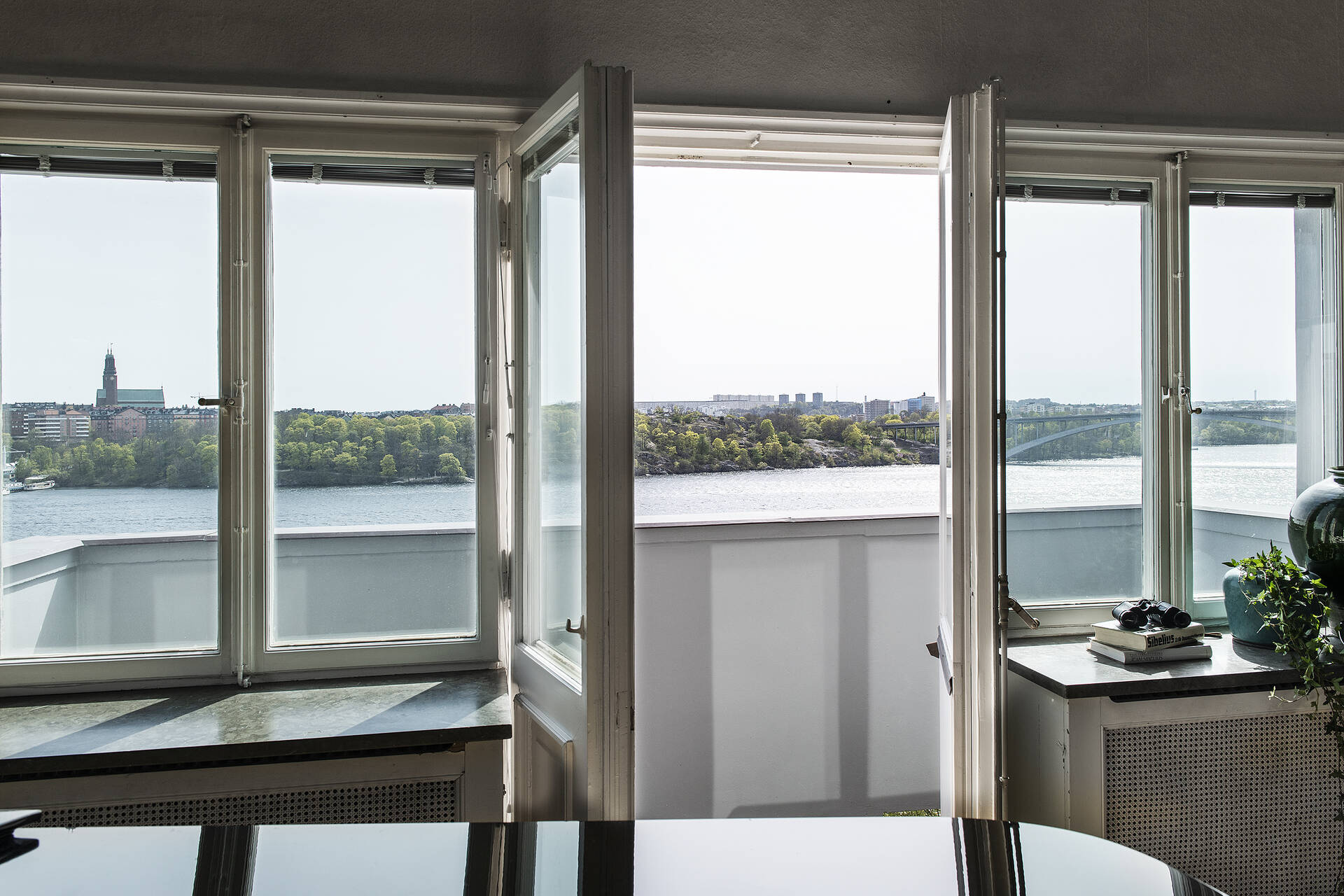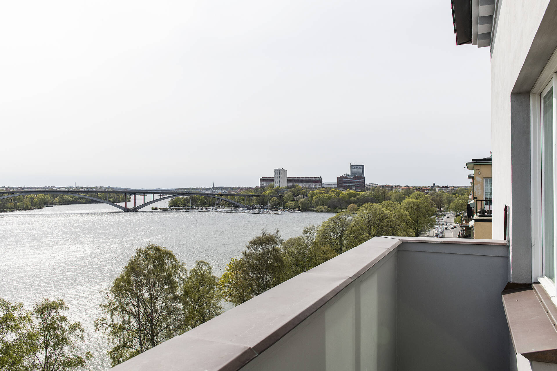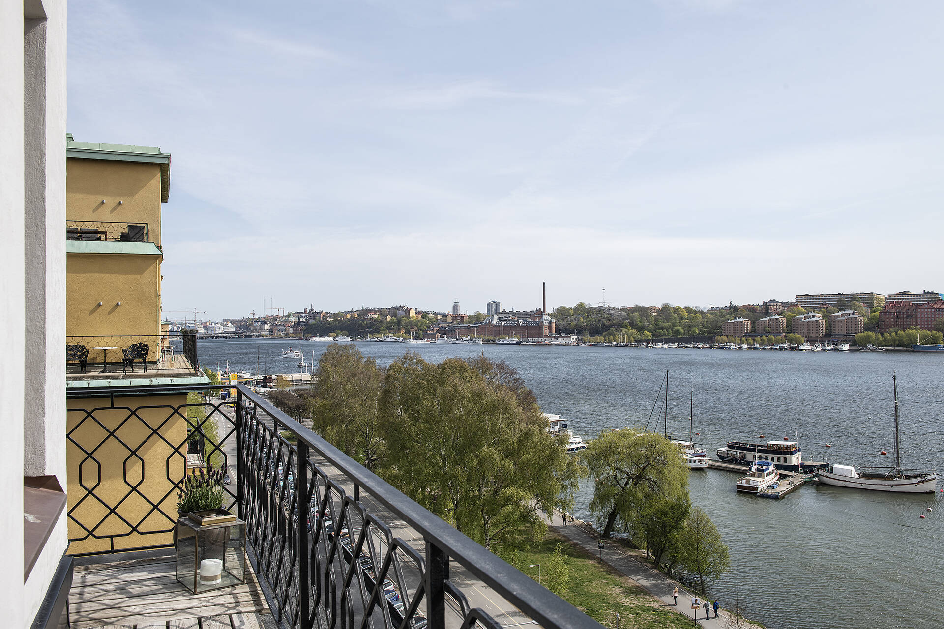 Högst upp i huset finns detta unika penthouse med magnifik och vid utsikt över såväl Riddarfjärden, Marieberg som Mariaberget och Söders höjder. Våningen består av två plan med fyra sovrum och stora sällskapsutrymmen. Dessutom två kungsbalkonger i tre väderstreck på entréplan och tre terrasser på övre plan. Fiskbensmönstrad ekparkett, stor öppen spis med kalkstensomfattning och flera andra vackra detaljer finns bevarade i denna fantastiska bostad. Stabil och lågt belånad bostadsrättsförening i välhållen och vacker fastighet byggd 1931, ritad av arkitekt TE Lindberg. Våningen har visst upprustningsbehov.