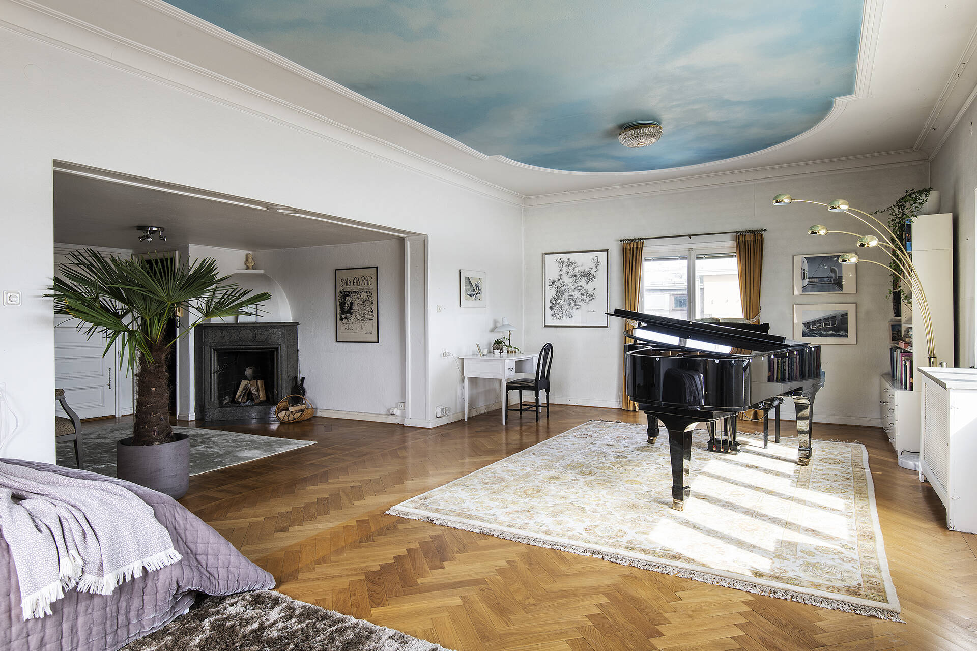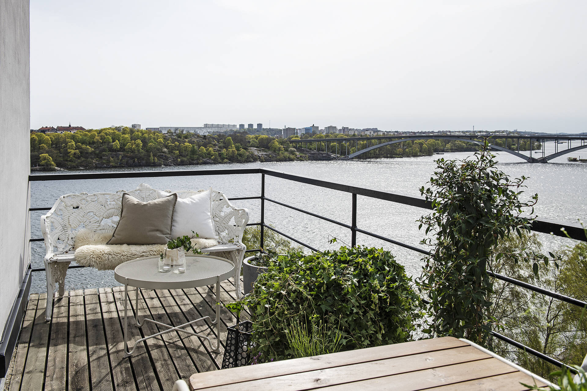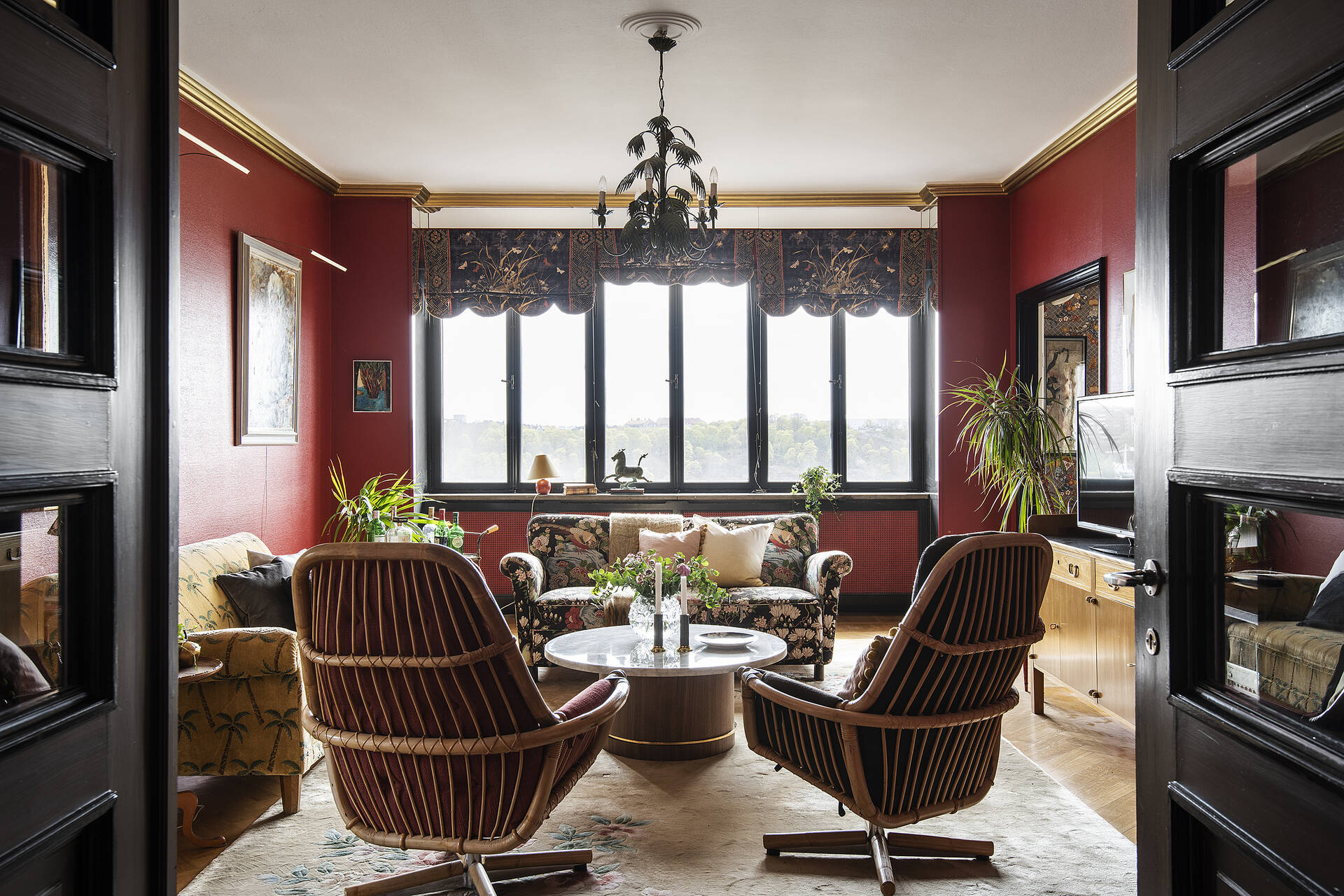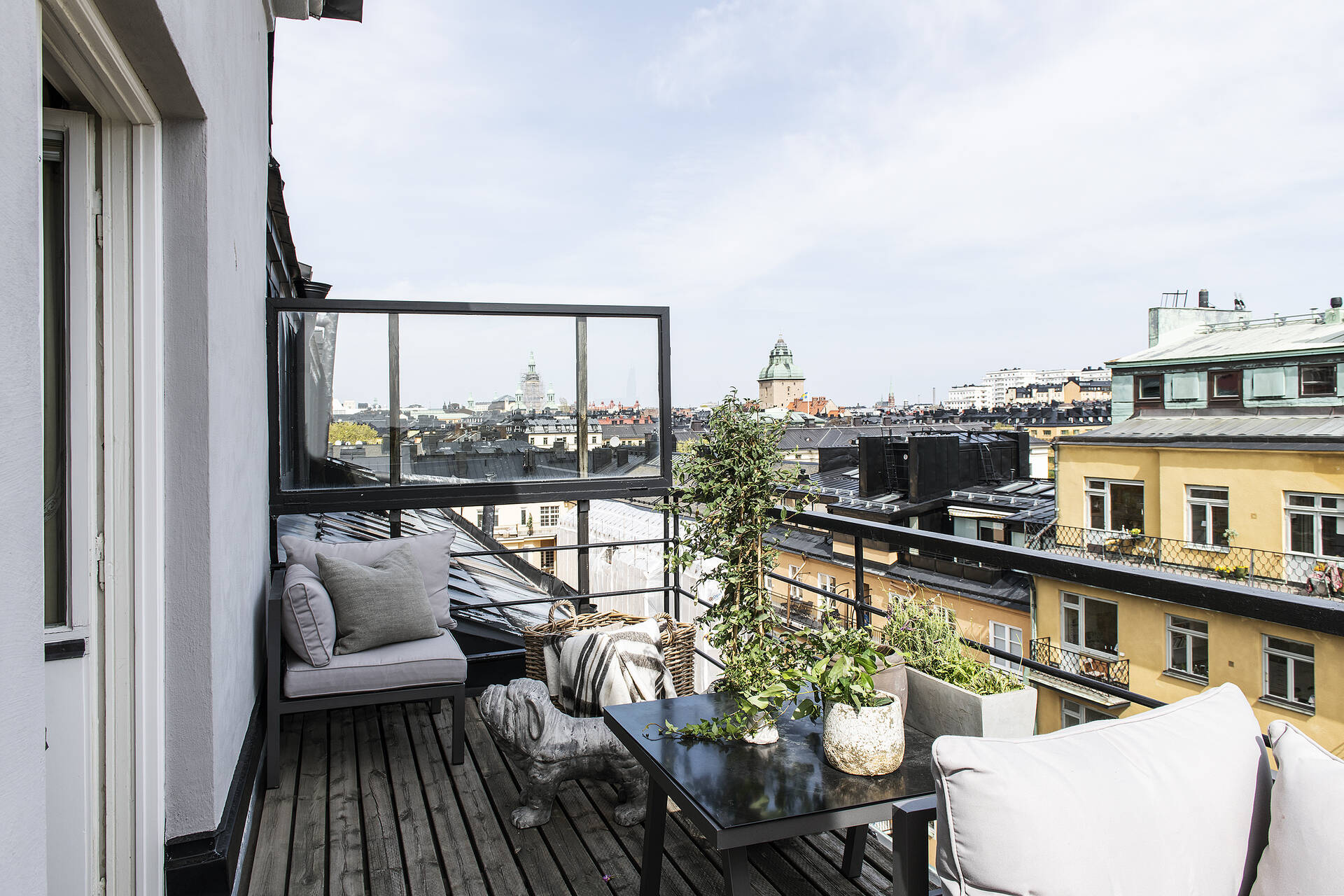 Högst upp i huset finns detta unika penthouse med magnifik och vid utsikt över såväl Riddarfjärden, Marieberg som Mariaberget och Söders höjder. Våningen består av två plan med fyra sovrum och stora sällskapsutrymmen. Dessutom två kungsbalkonger i tre väderstreck på entréplan och tre terrasser på övre plan. Fiskbensmönstrad ekparkett, stor öppen spis med kalkstensomfattning och flera andra vackra detaljer finns bevarade i denna fantastiska bostad. Stabil och lågt belånad bostadsrättsförening i välhållen och vacker fastighet byggd 1931, ritad av arkitekt TE Lindberg. Våningen har visst upprustningsbehov.