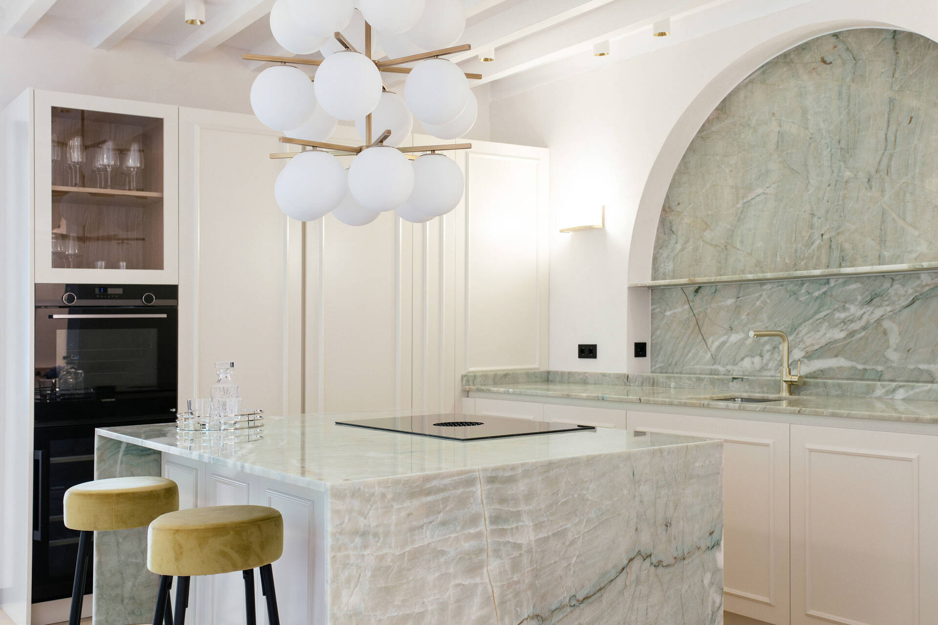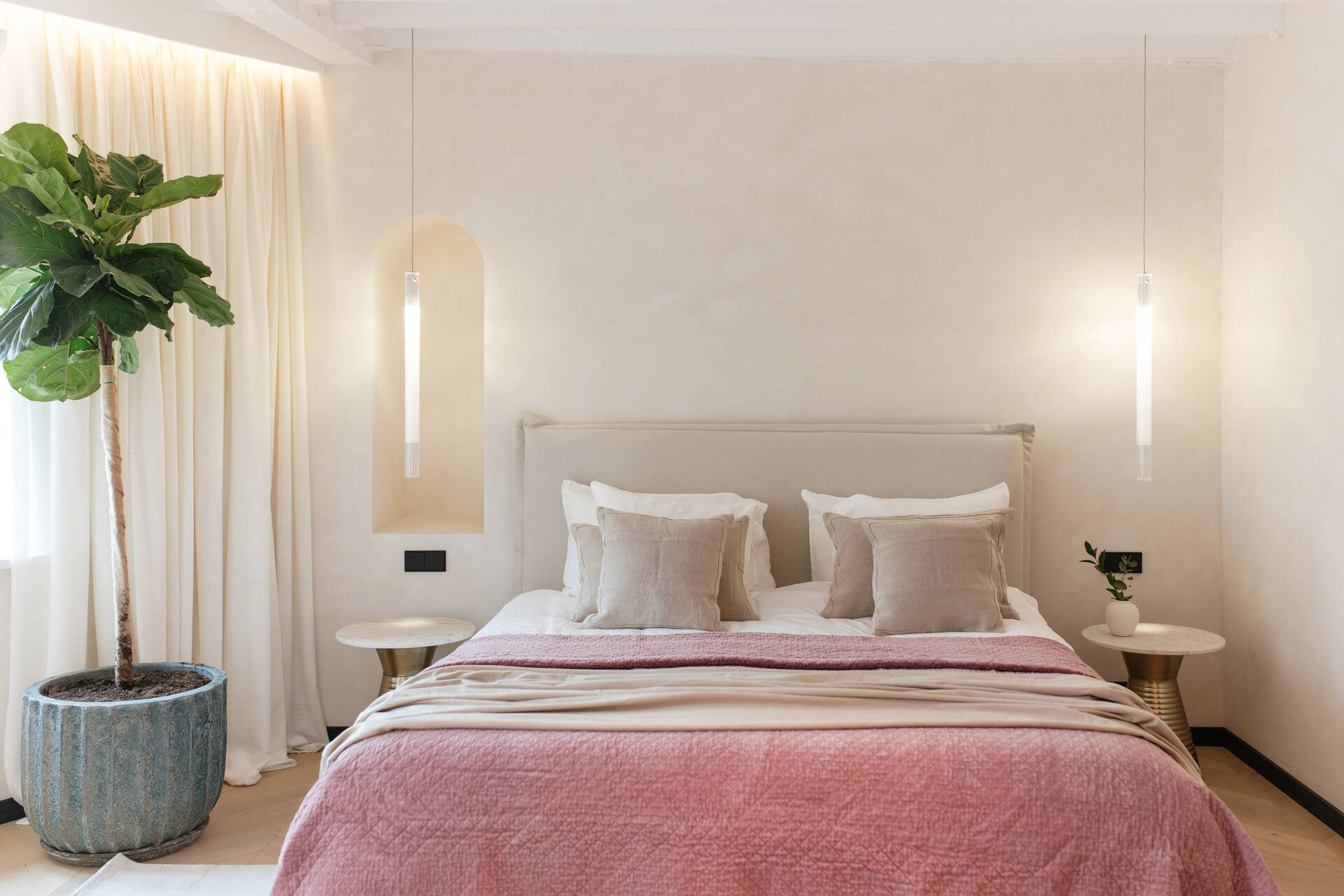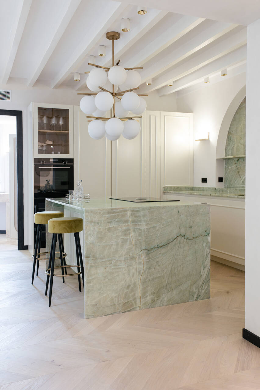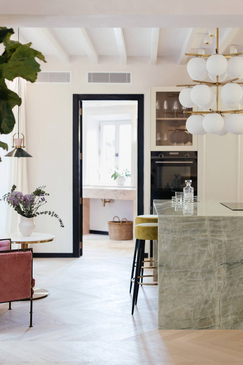 Välkommen till denna lyxiga takvåning i hjärtat av Palmas legendariska La Rambla, en extraordinär hörnlägenhet fylld av sofistikerad elegans. Nyligen totalt renoverad erbjuder denna våning på hela 208 kvm, 2-3 sovrum varav 2 är med walk-in closets och lyxigt dekadenta badrum en-suit. Köket är helt exceptionellt och kröns av fantastiska bänkskivor i grön kvartsit, en mycket härdig och värmetålig sten. Här finns även två eldstäder i rosa marmor och grön onyx. De varma färgvalen återfinns i de vackra badrummen där återigen rosa marmor och grön onyx dominerar. Linneklädda platsbyggda garderober, golv i ekchevron och genomtänkt belysning garanterar charm och komfort. Dessutom bjuder denna våning på en 25 kvm solig och terrass med tillgång till ett litet utekök. Som en bonus ingår alla möbler, gardiner, belysning och övrig dekoration i priset. Hisslicens har blivit godkänd och ligger i uppstartsfas som ytterligare befäster det eminenta med denna våning. Detta är ett raffinerat boende för den stilmedvetne som kräver det lilla extra.