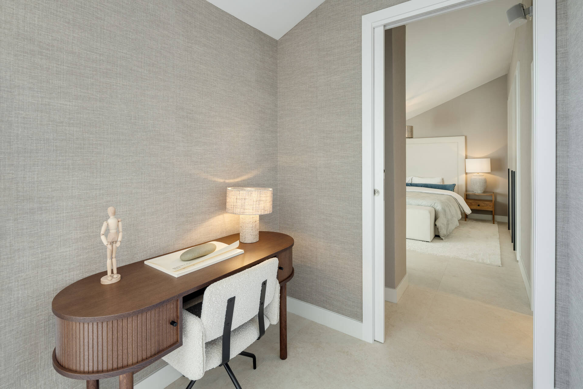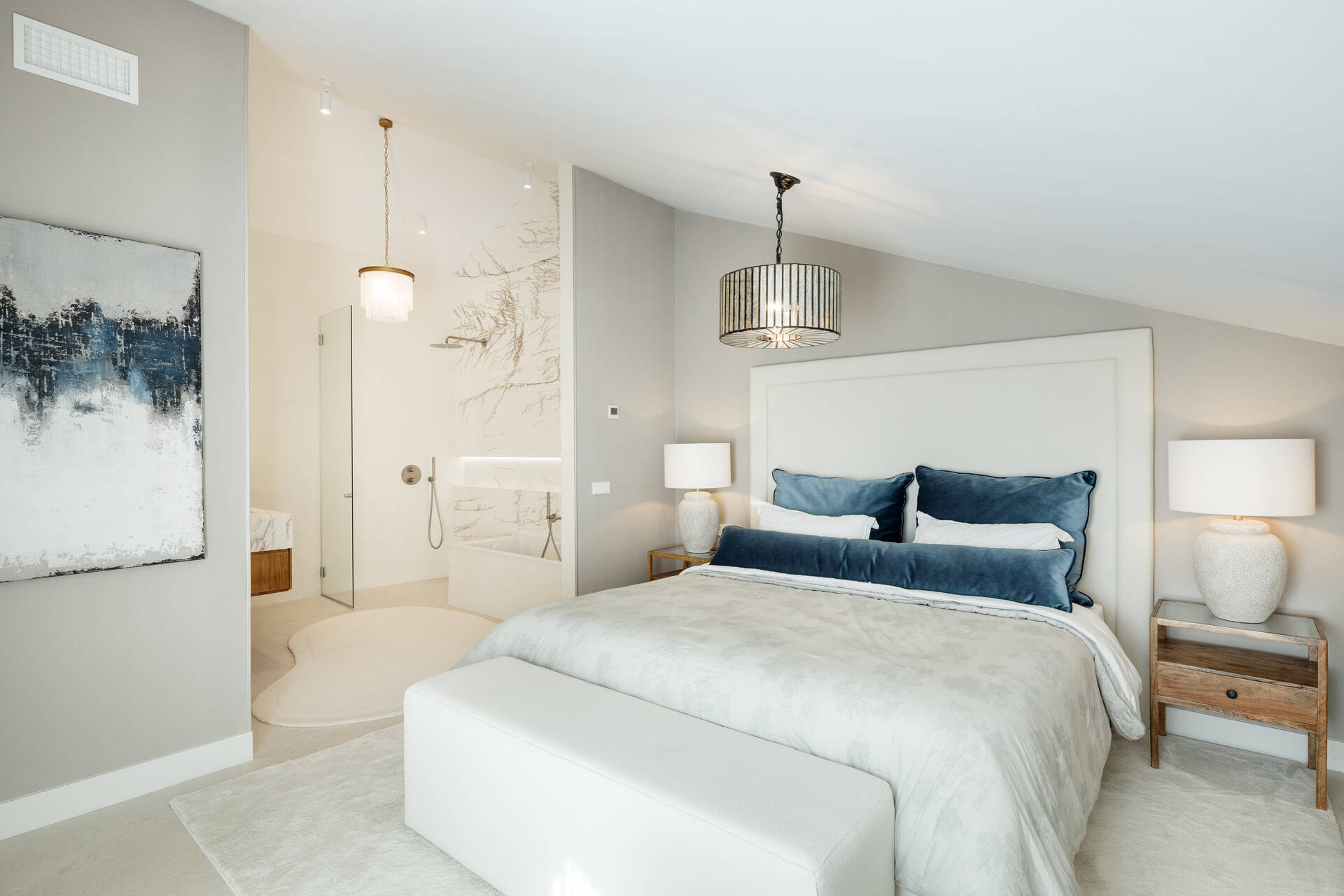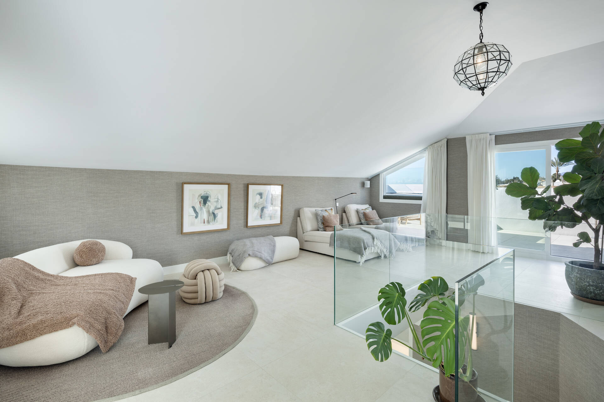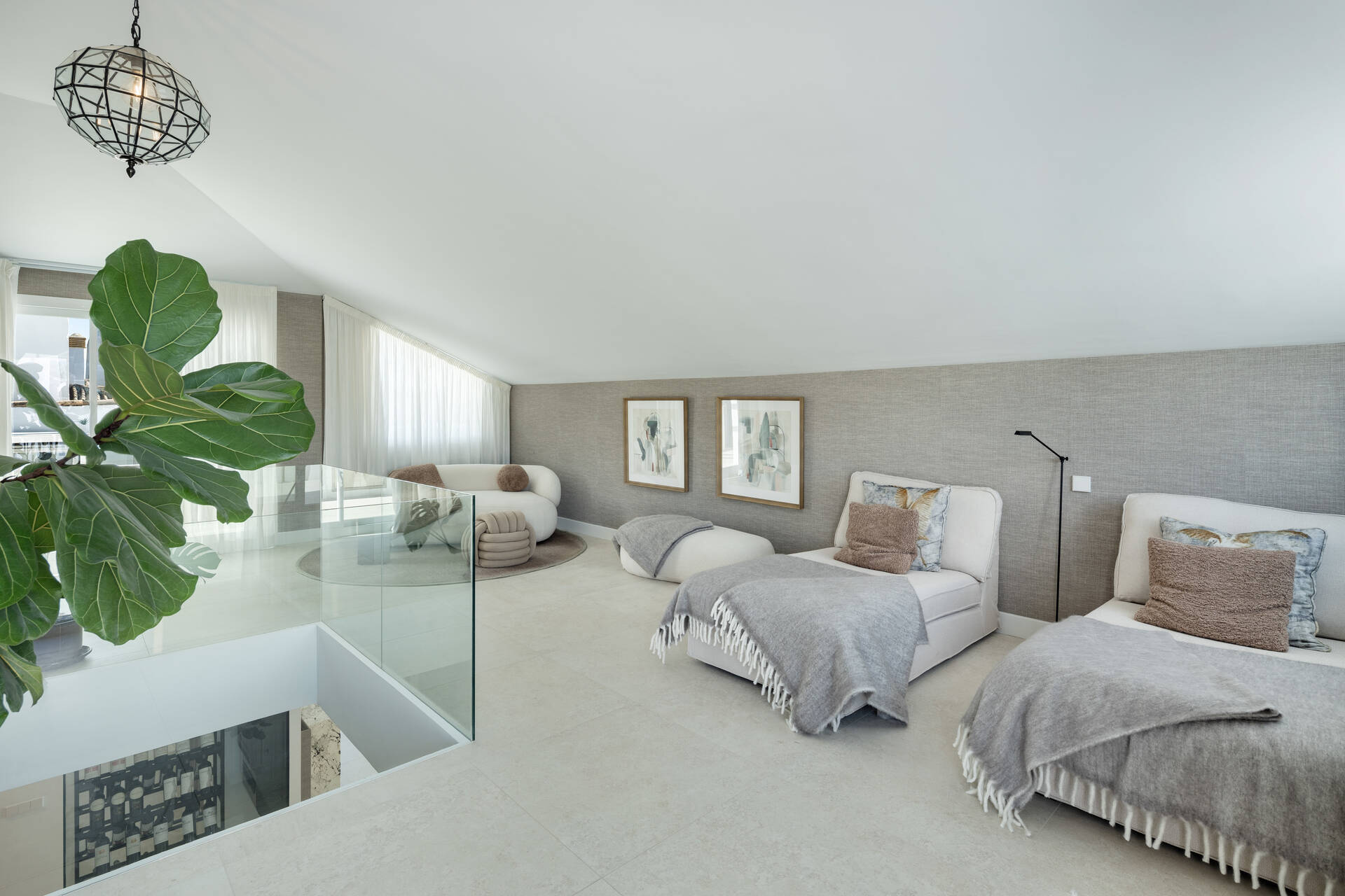 Belägen i eftertraktade Marbella Golden Mile erbjuder Costa PH en duplexvåning med vidsträckta vyer över hav och berg. Våningen har en öppen planlösning där sällskapsrum, matsal och kök smälter samman till en ljus och rymlig helhet. Köket är modernt utformat med en uttrycksfull marmorköksö, eleganta trädetaljer och integrerade vitvaror av högsta kvalitet. En stilfull vinkyl kompletterar helheten.