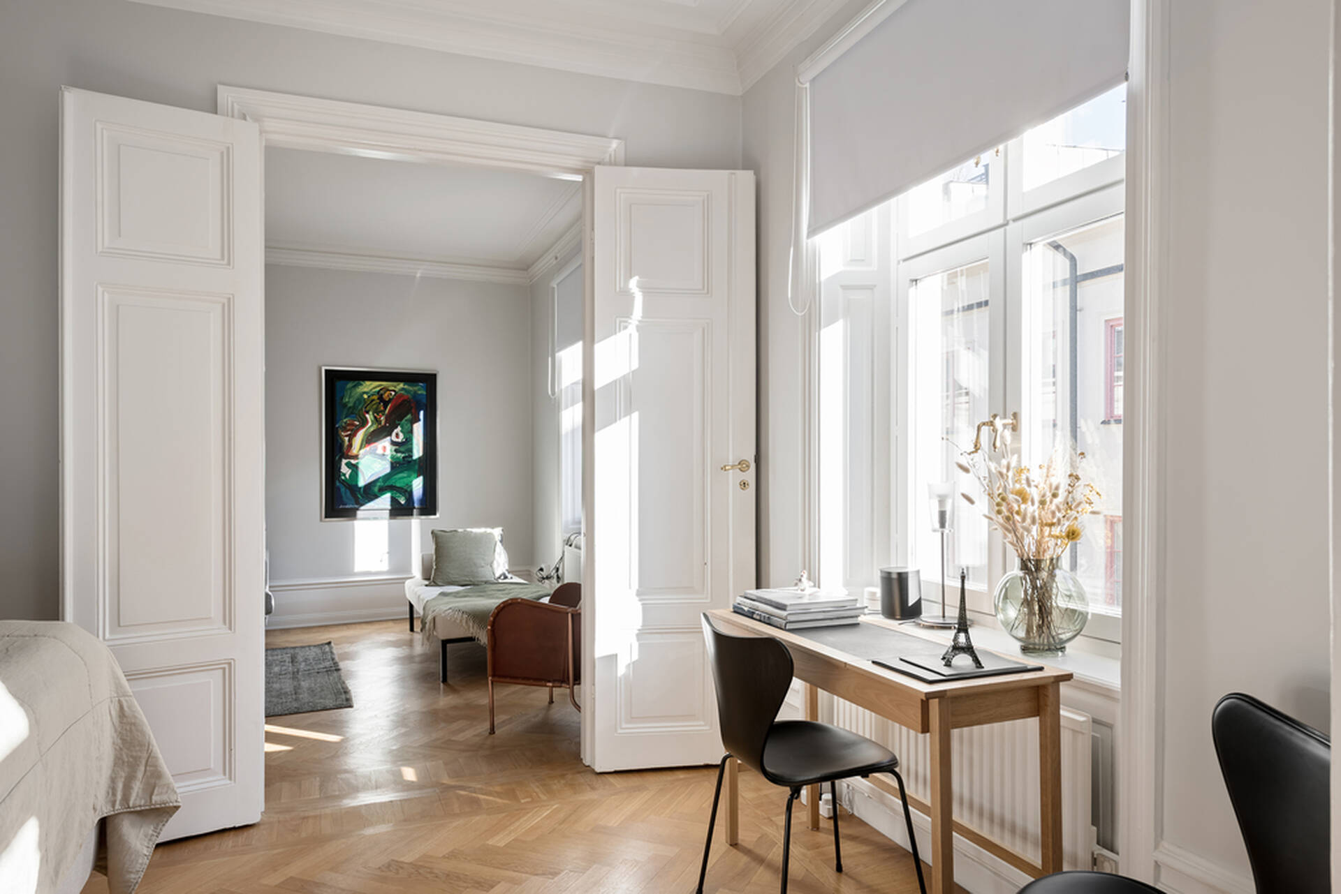 Välkommen till en fin och välplanerad våning i mycket centrala, men lugna, kvarter. Här har man nära till såväl Stureplans puls som Johannesparkens grönska och lugn. Franska och Internationella skolan ligger dessutom runt hörnan.