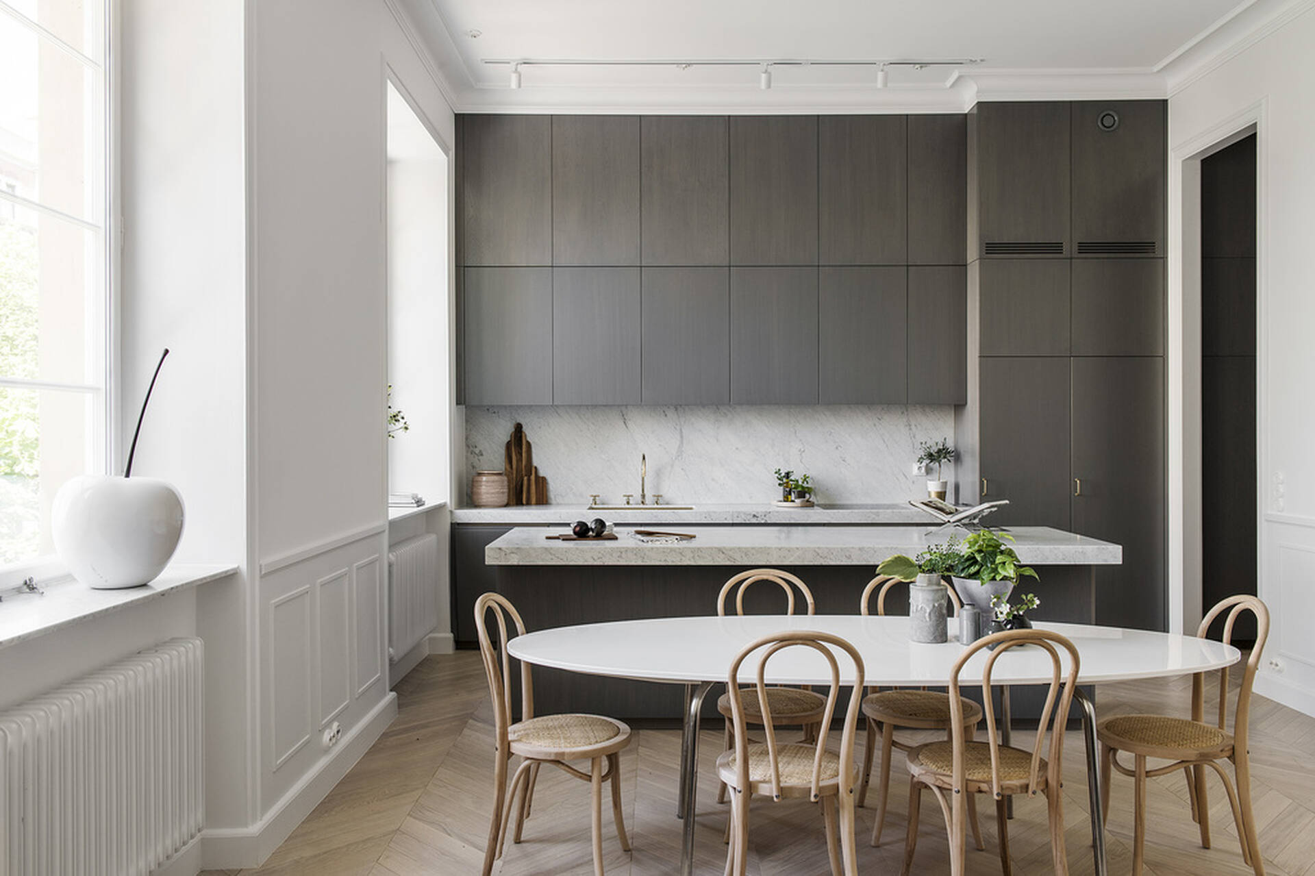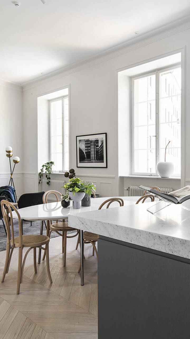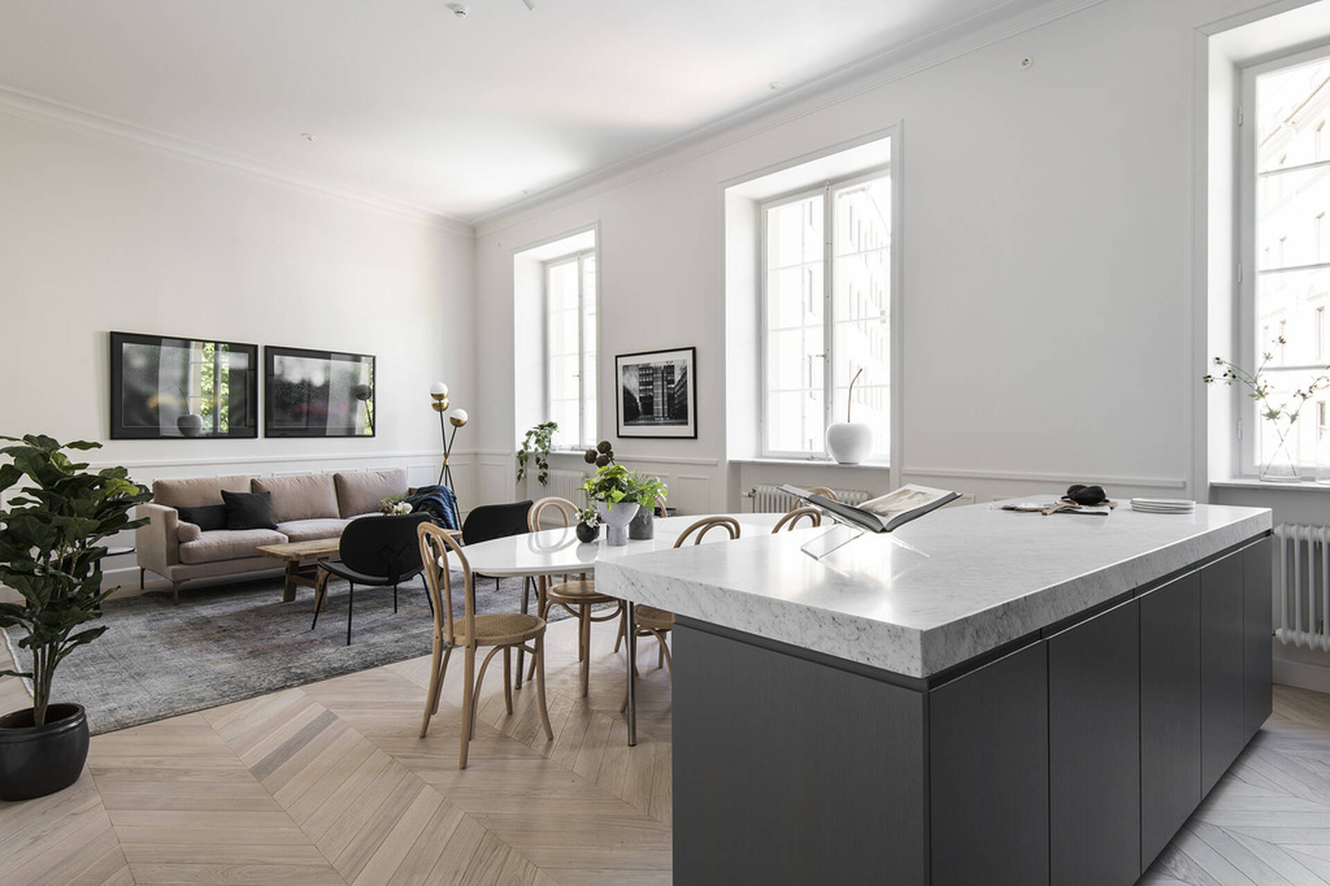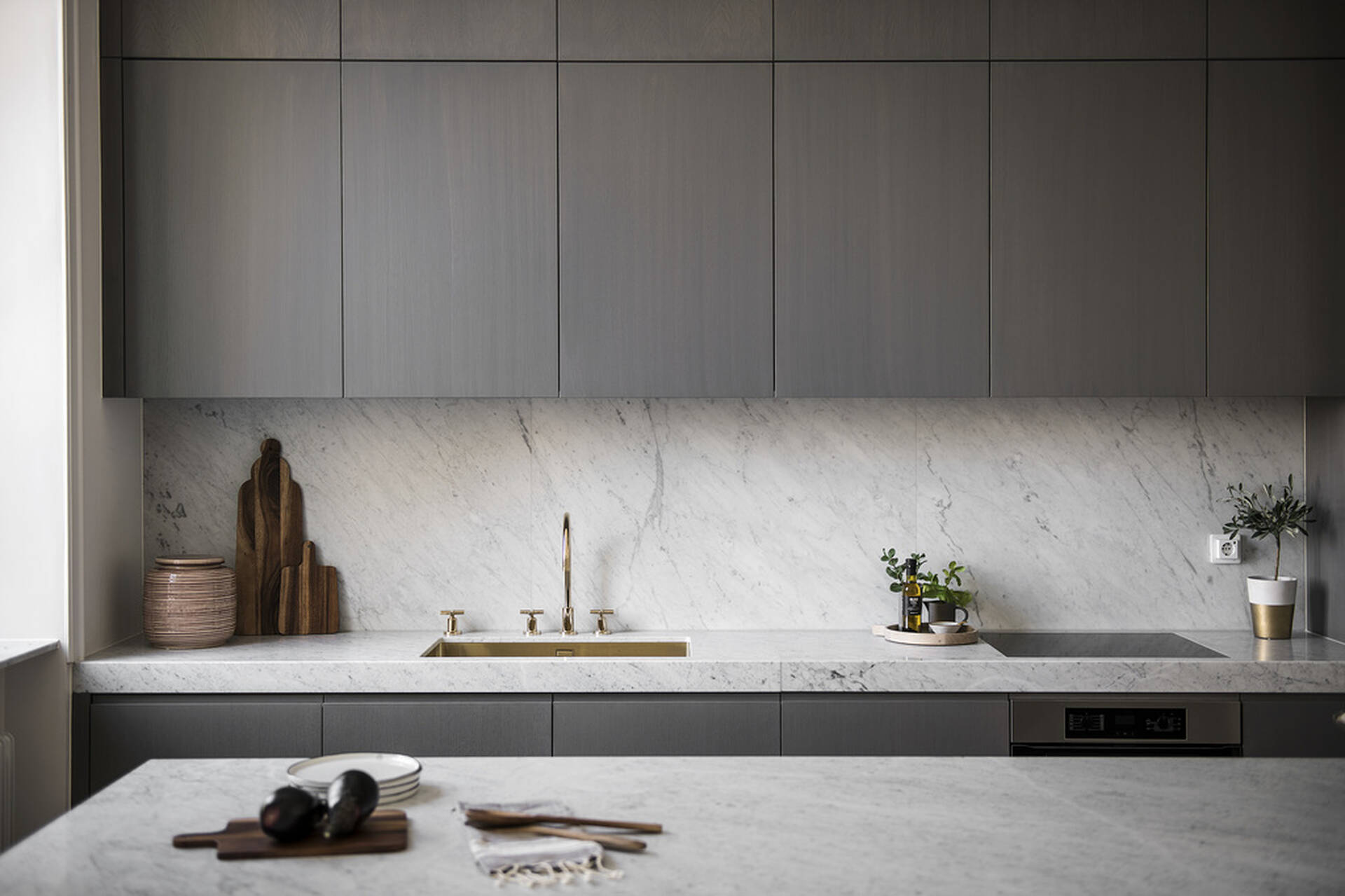 Våningen har genomgående och återkommande material i internationell toppklass.