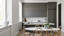 Det stilrena köket har helintegrerade vitvaror, samtliga från Miele. Gott om förvaring och vackra, tidlösa material. Intill köket finns ett stort förvaringsrum/skafferi med flertalet platsbyggda hyllor.