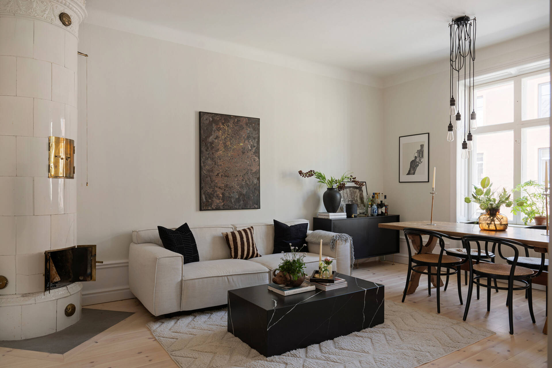 Varmt välkommen till denna ljusa våning som ligger näst högst upp i huset. Med sina stora fönster, två fungerande kakelugnar, härlig utsikt och högt i tak bjuder bostaden på mycket charm och elegans. Nytt golv är lagt i massivt trä, höga golvsocklar och ljust målade väggar. Kök, vardagsrum och hall renoverades varsamt 2023. Det smakfulla köket har måttbeställda crèmefärgade luckor, arbetsbänk i portugisisk kalksten, vitvaror från Siemens och platsbyggda hyllor med infräst LED-belysning. Köket smälter sömlöst ihop med vardagsrummet bredvid vilket borgar för social samvaro och trevliga middagar. Gott om plats för stort matbord och sittgrupp, med utsikt mot den stämningsfulla kakelugnen i hörnet. Även det rymliga sovrummet har en kakelugn och en mindre klädkammare. Innanför finns ytterligare ett litet rum med fönster och platsbyggd bokhylla som fungerar utmärkt som kontor eller barnrum. Badrummet med sitt svarta golv och vita väggar har en nisch klädd i brun mosaik och spegelhylla och kommod i valnöt. Entrén har nya platsbyggda garderober och i den inre hallen finns spegelskjutdörrar med klädkammare bakom. I hela bostaden finns gott om förvaring för olika ändamål. Brf Storken 12 är en mycket bra förening med stabil ekonomi och på den mysiga innergården finns gungor, lekplats, sittgrupp och grill. Varmt välkommen på visning!