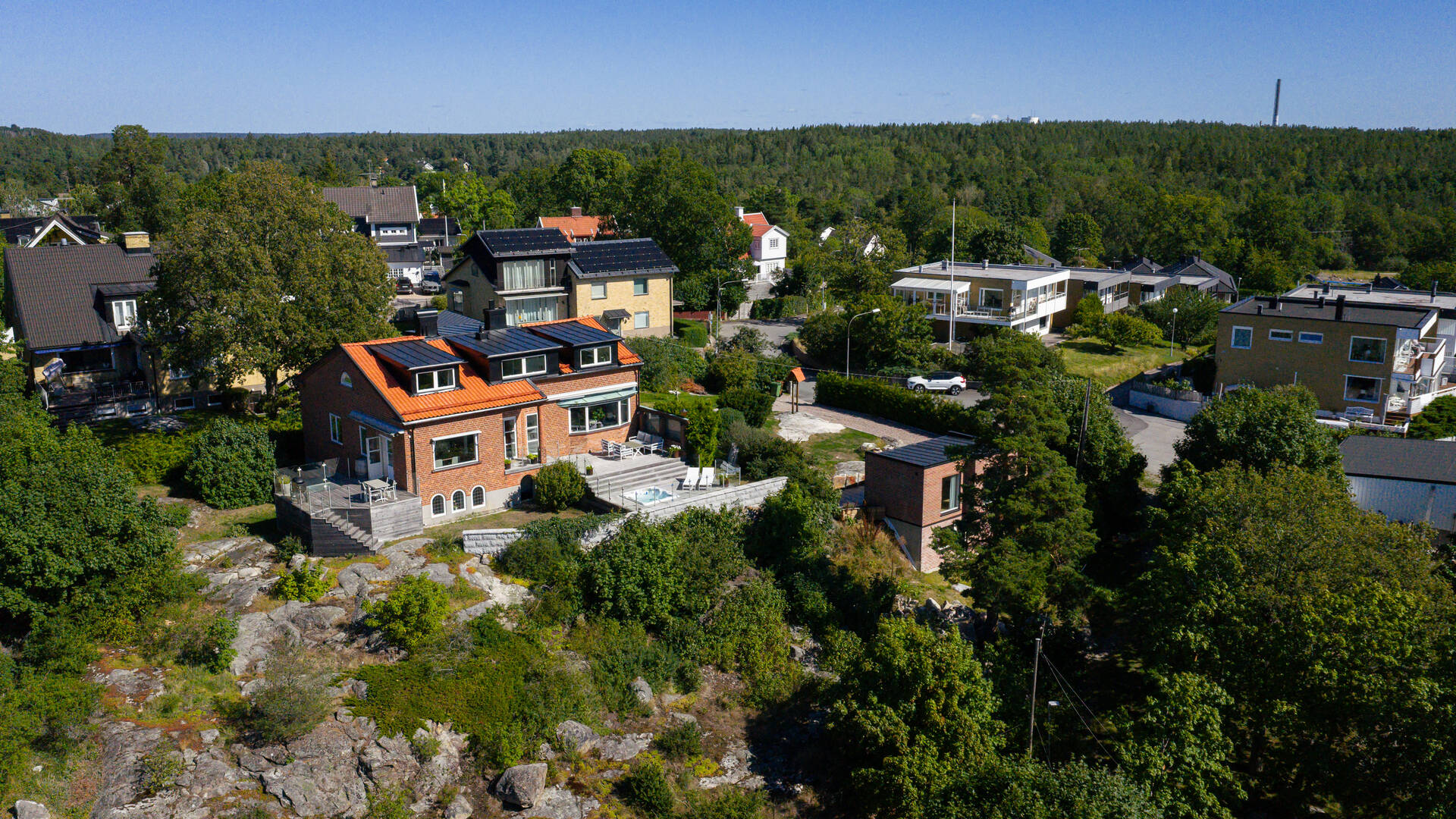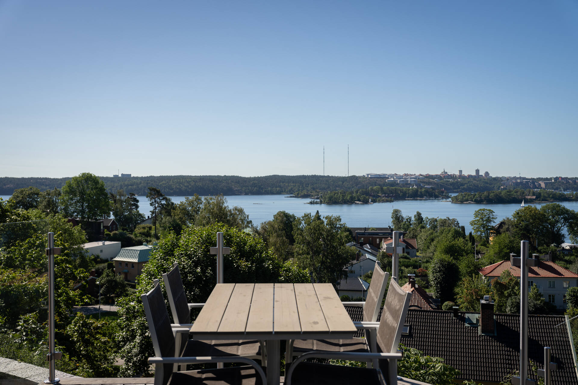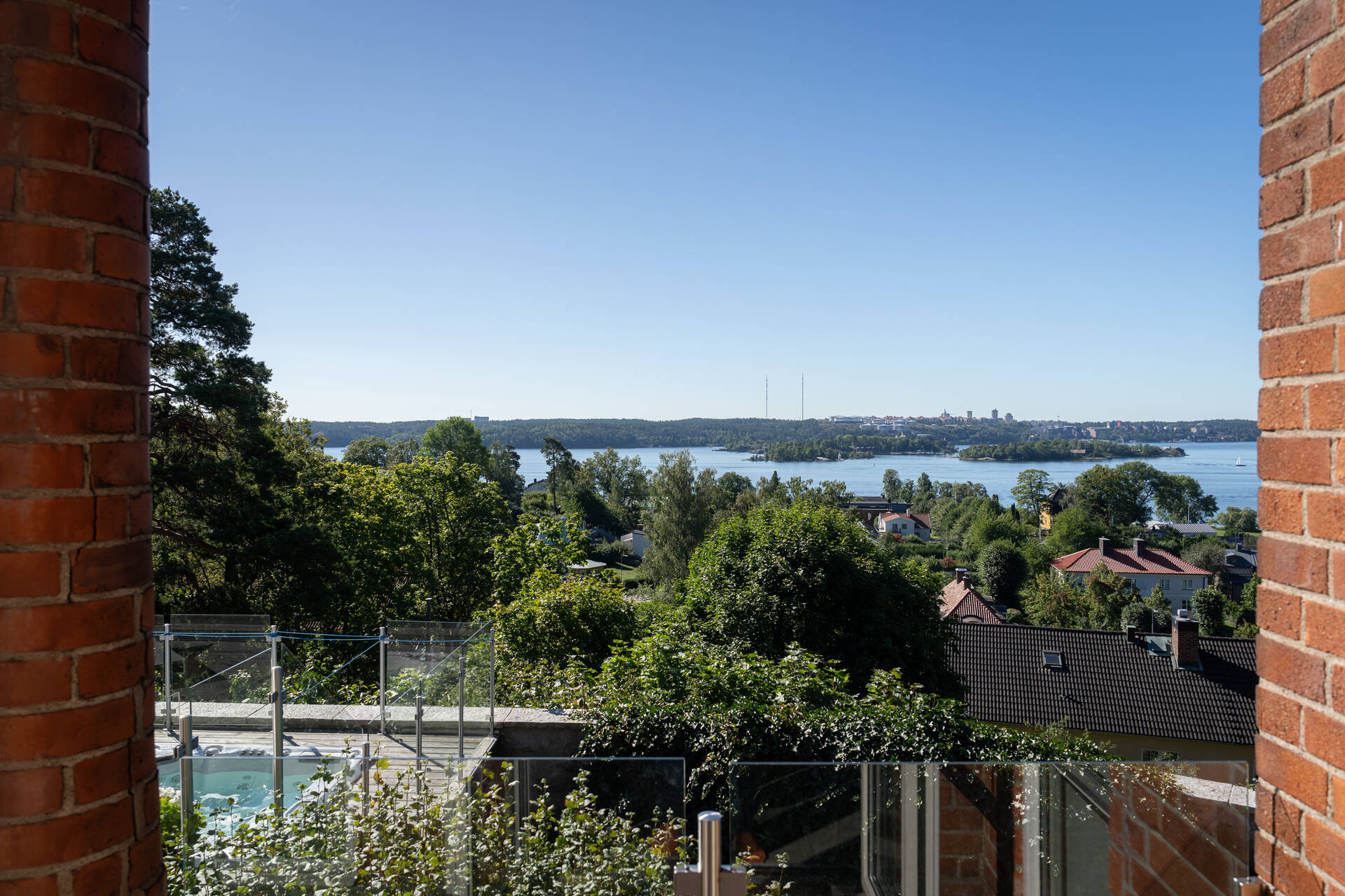 Plats för fem bilar samt laddstolpe finns. Sammantaget erbjuds en representativ villa där arkitektonisk tidlöshet möter funktion, med en utsikt som ger bostaden en sällsynt kvalitet.