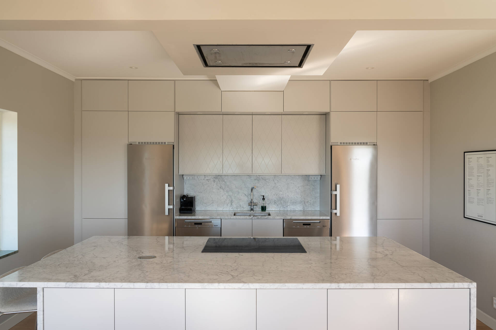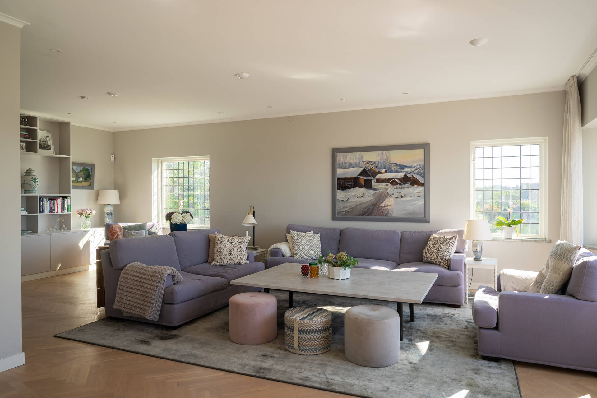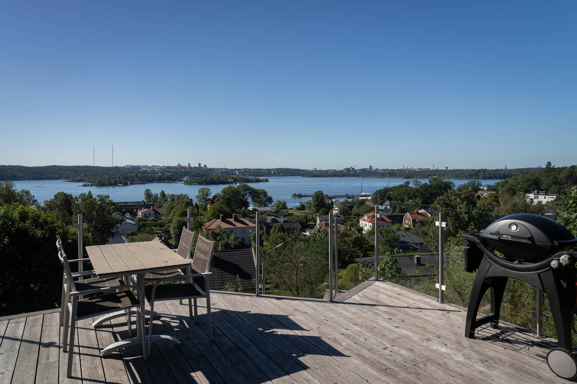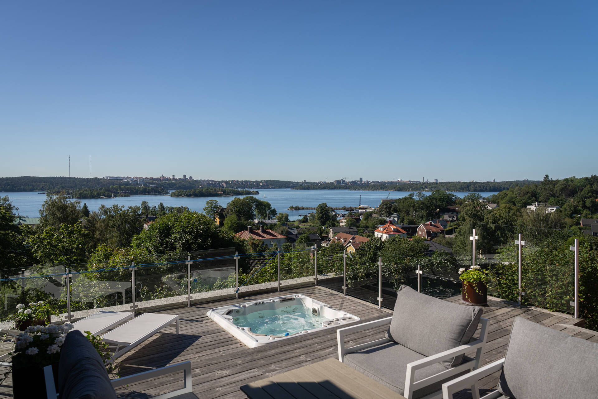Plats för fem bilar samt laddstolpe finns. Sammantaget erbjuds en representativ villa där arkitektonisk tidlöshet möter funktion, med en utsikt som ger bostaden en sällsynt kvalitet.
