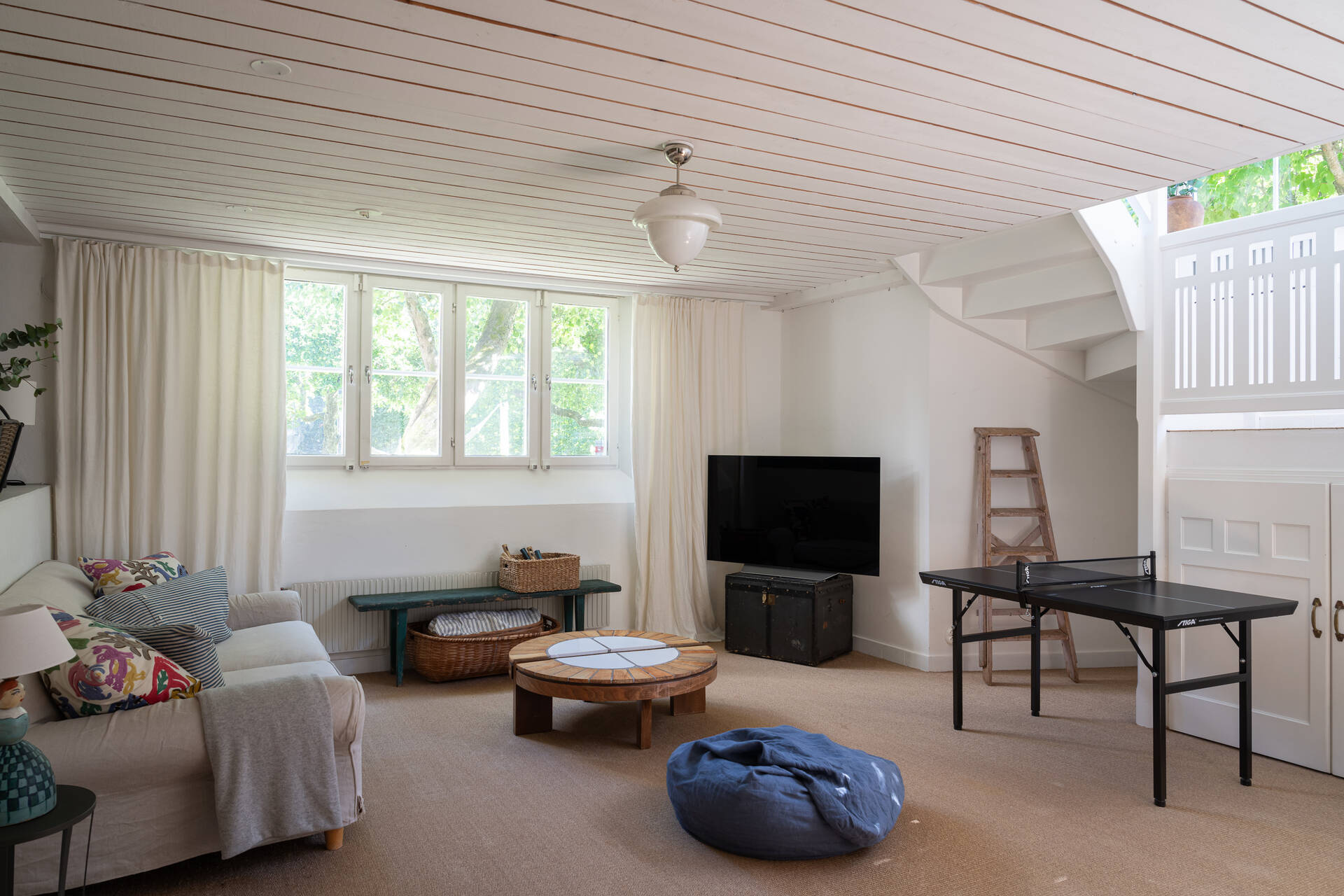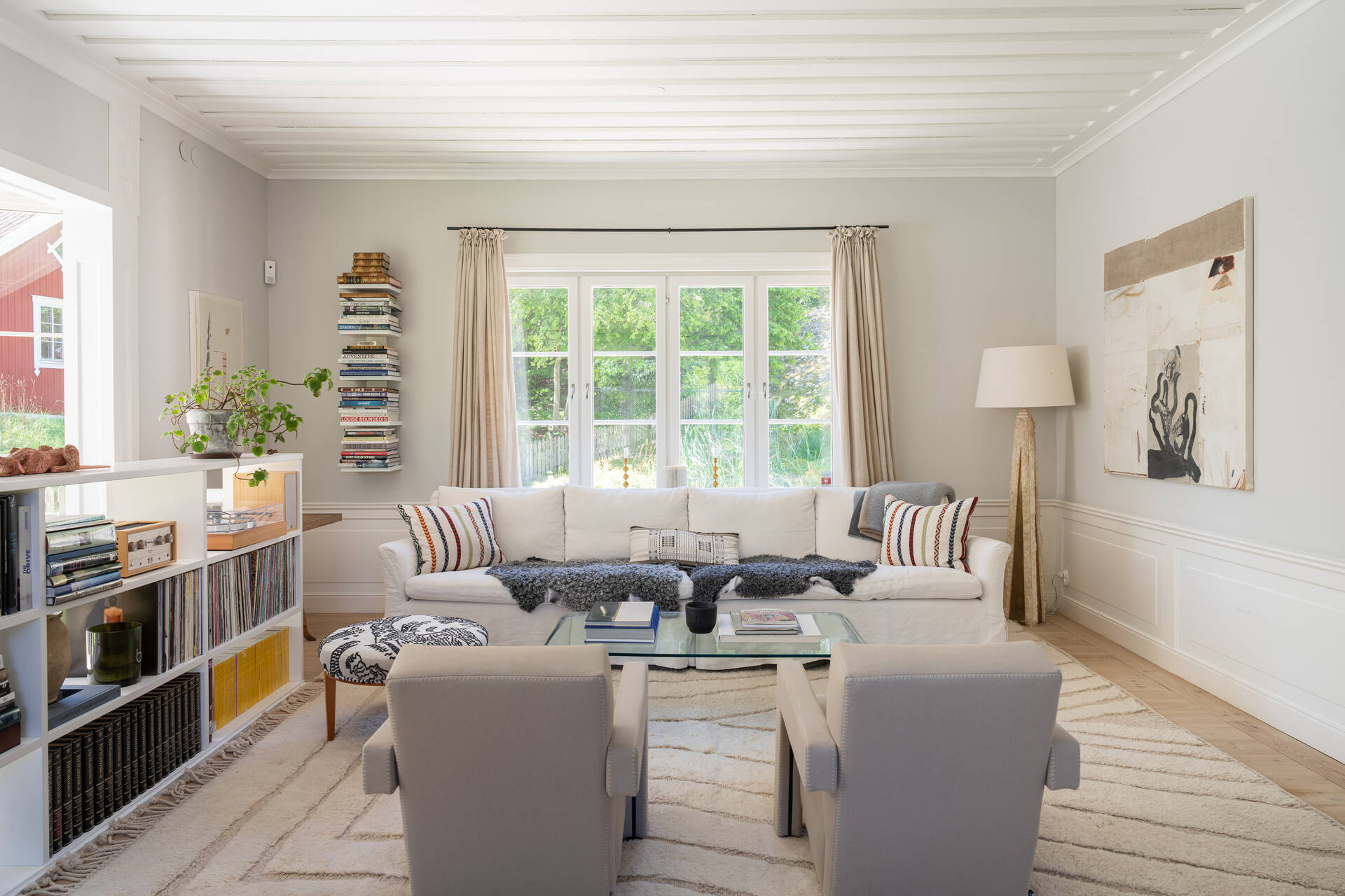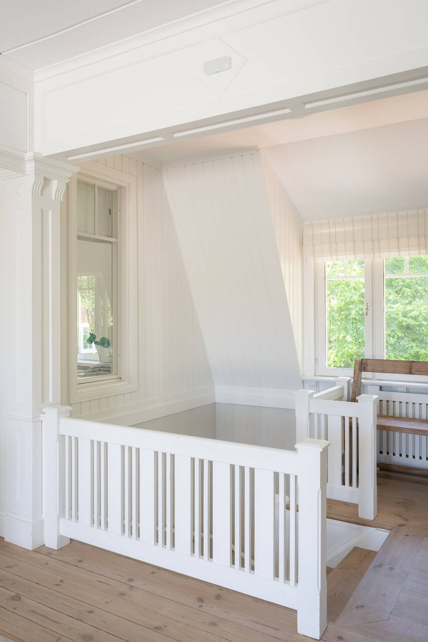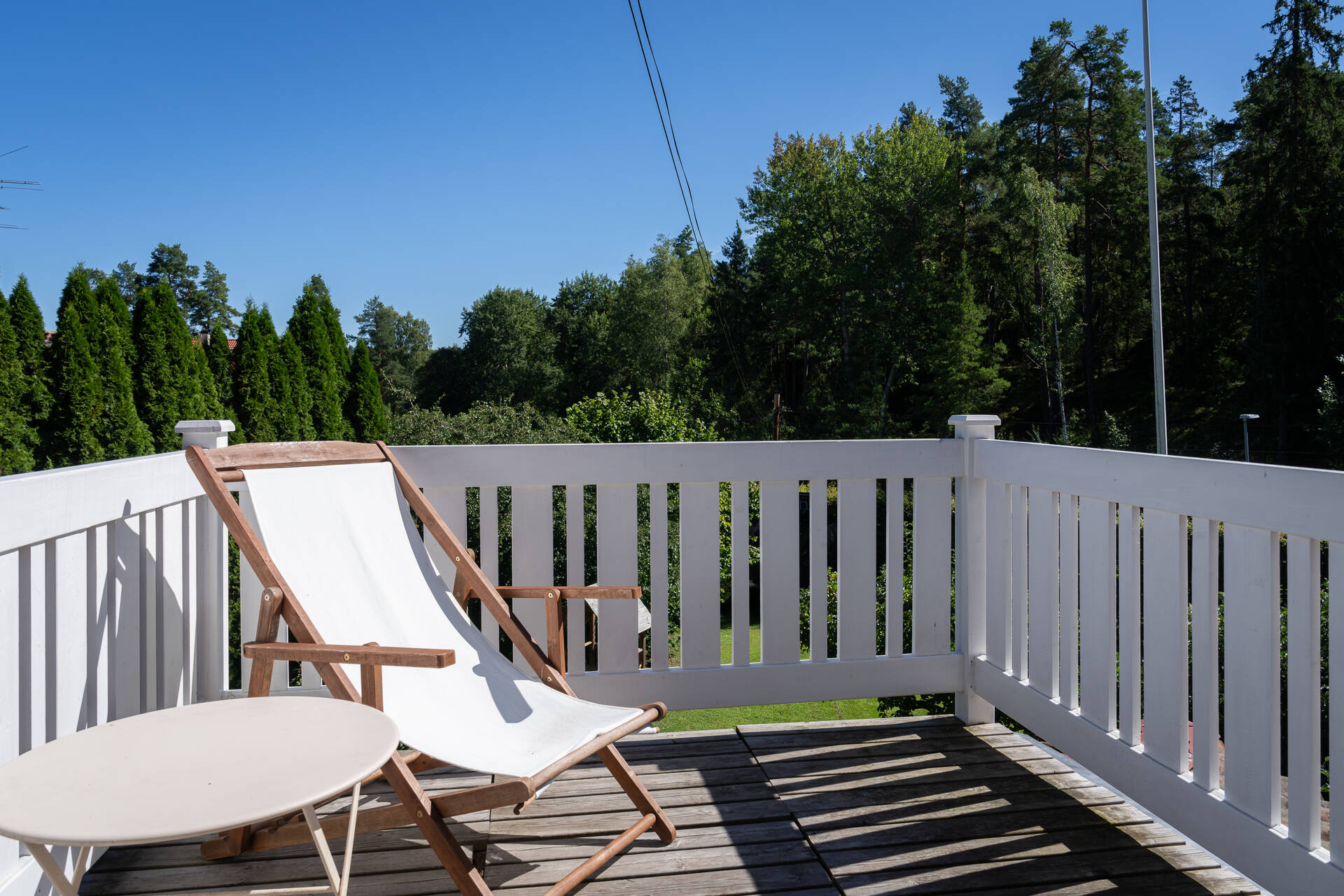 Köket är strategiskt placerat mellan matsal och köksentré och kombinerar funktionalitet med närhet till utemiljöer. På övre plan möts man av ett platsbyggt bibliotek med utgång till balkong mot trädgårdens grönska. Två sovrum med vackra exponerade takbjälkar samt ytterligare ett rymligt sovrum. Stilrent badrum med dubbelhandfat kompletterar våningsplanet. Källarplan erbjuder tvättstuga, badrum, gott om förvaringsutrymmen och egen ingång som kan omdisponeras till en egen lägenhet praktiskt för en au-pair eller uthyrningsmöjlighet. Gott om extra förvaring i förrådet som också inhyser en fin vedeldad bastu.