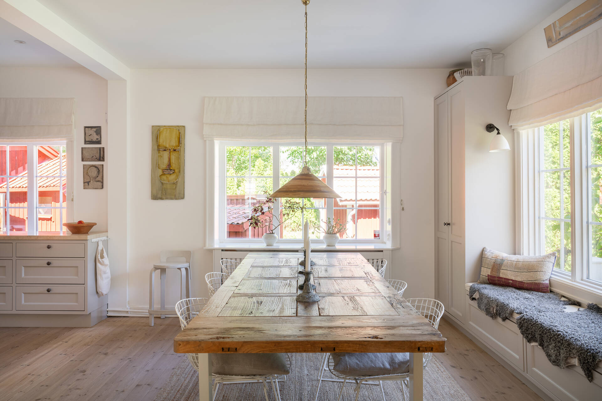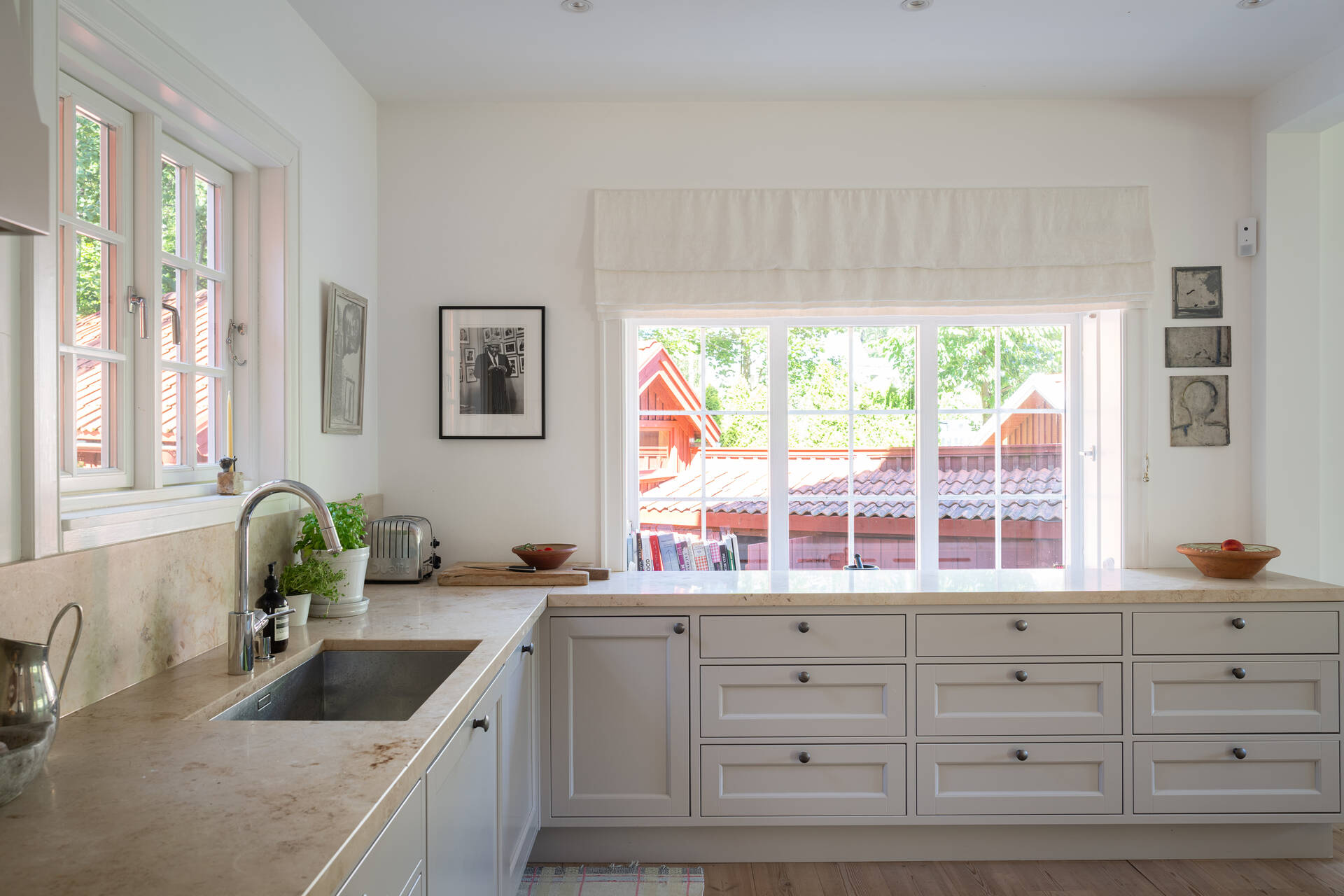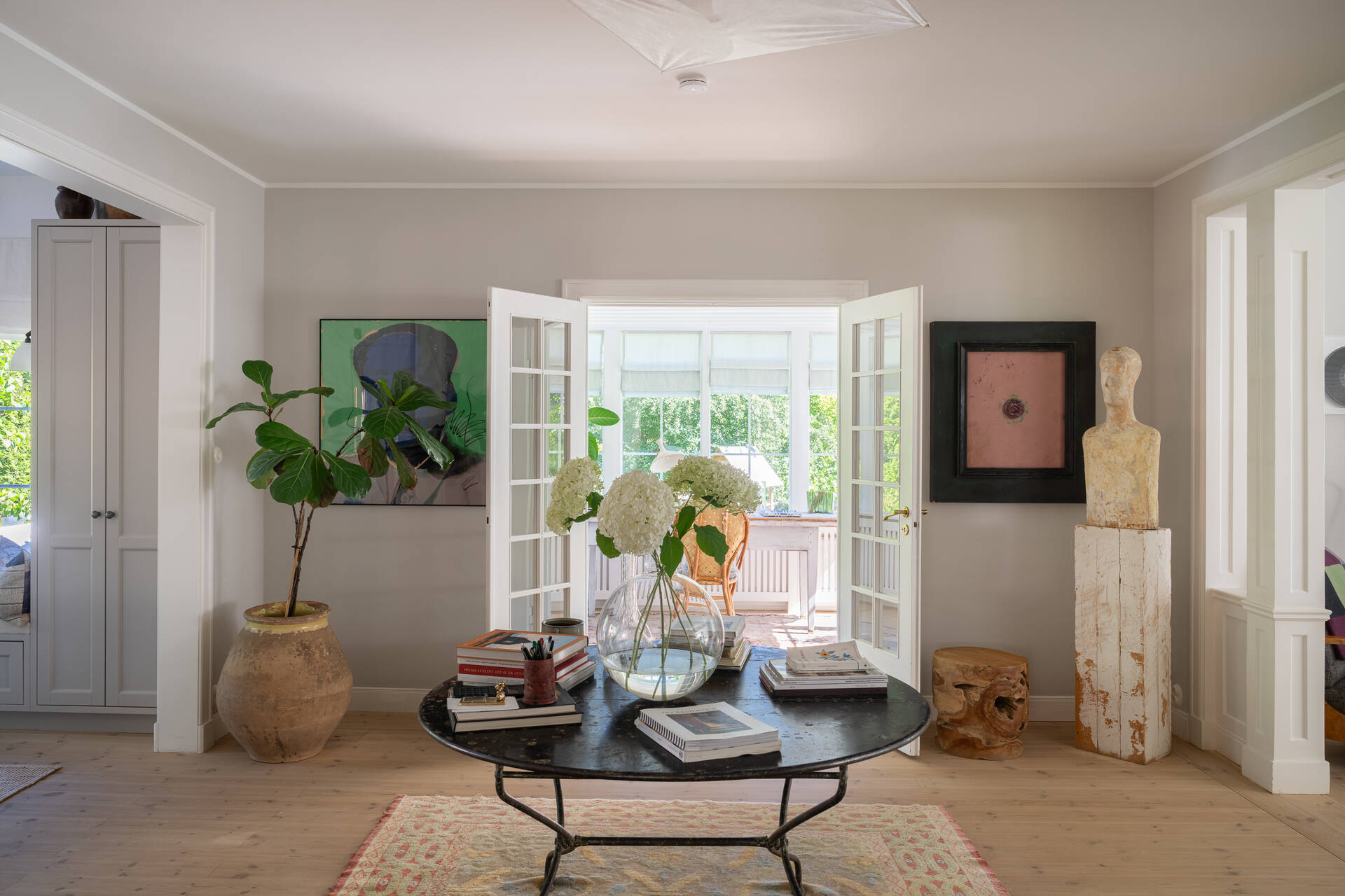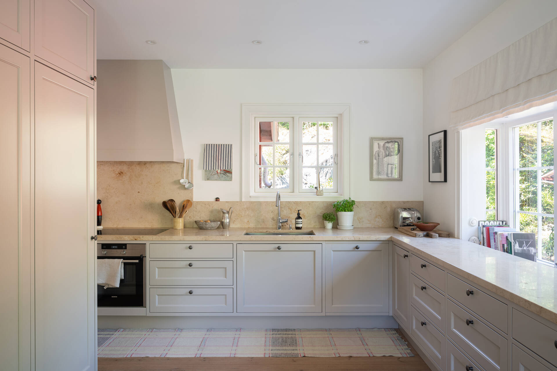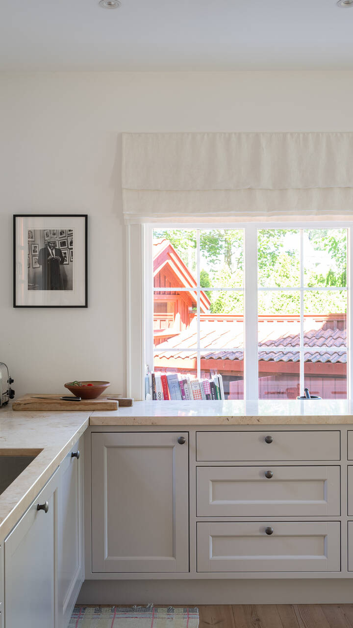 Köket är strategiskt placerat mellan matsal och köksentré och kombinerar funktionalitet med närhet till utemiljöer. På övre plan möts man av ett platsbyggt bibliotek med utgång till balkong mot trädgårdens grönska. Två sovrum med vackra exponerade takbjälkar samt ytterligare ett rymligt sovrum. Stilrent badrum med dubbelhandfat kompletterar våningsplanet. Källarplan erbjuder tvättstuga, badrum, gott om förvaringsutrymmen och egen ingång som kan omdisponeras till en egen lägenhet praktiskt för en au-pair eller uthyrningsmöjlighet. Gott om extra förvaring i förrådet som också inhyser en fin vedeldad bastu.