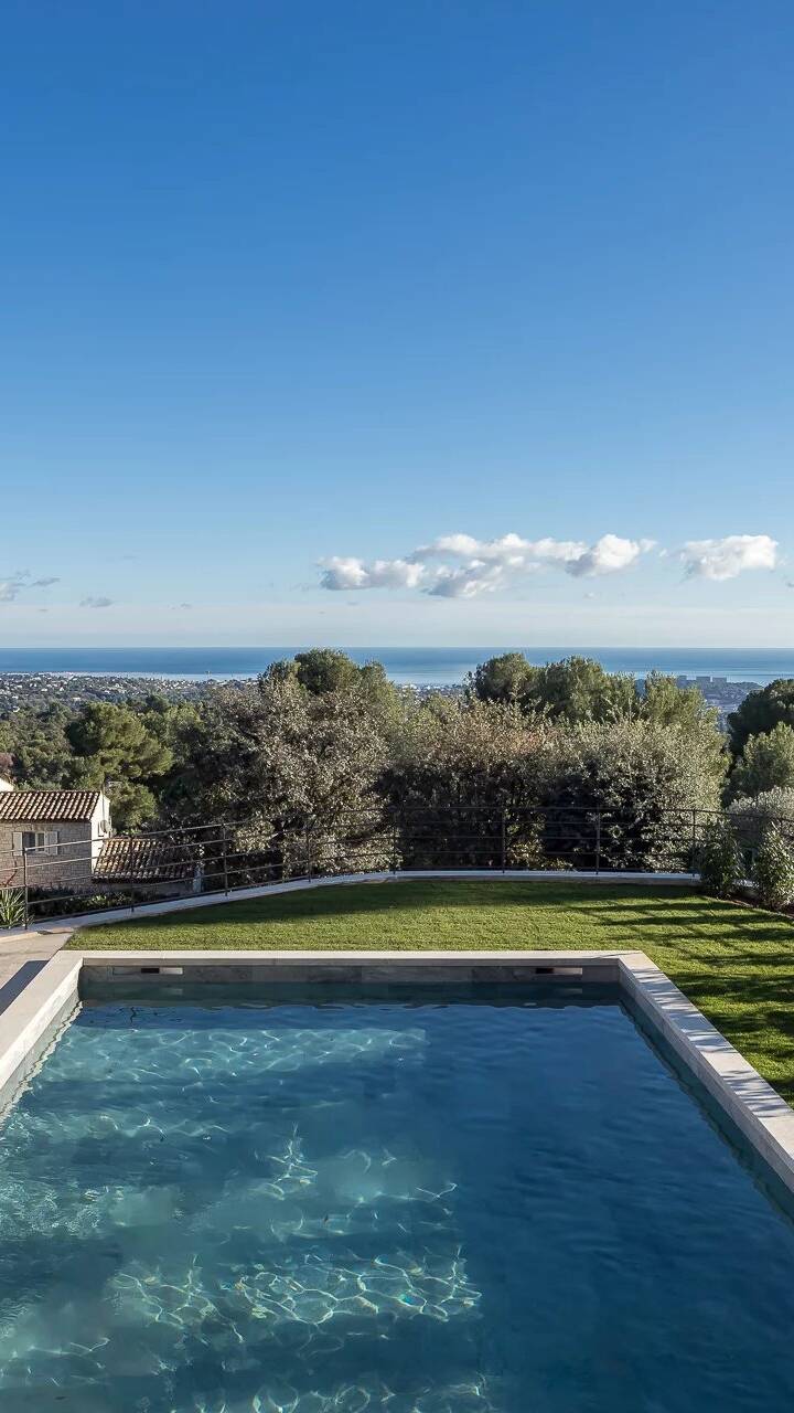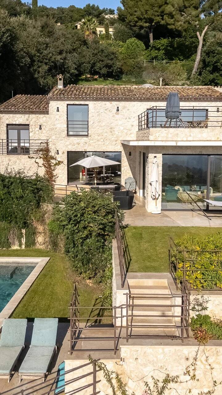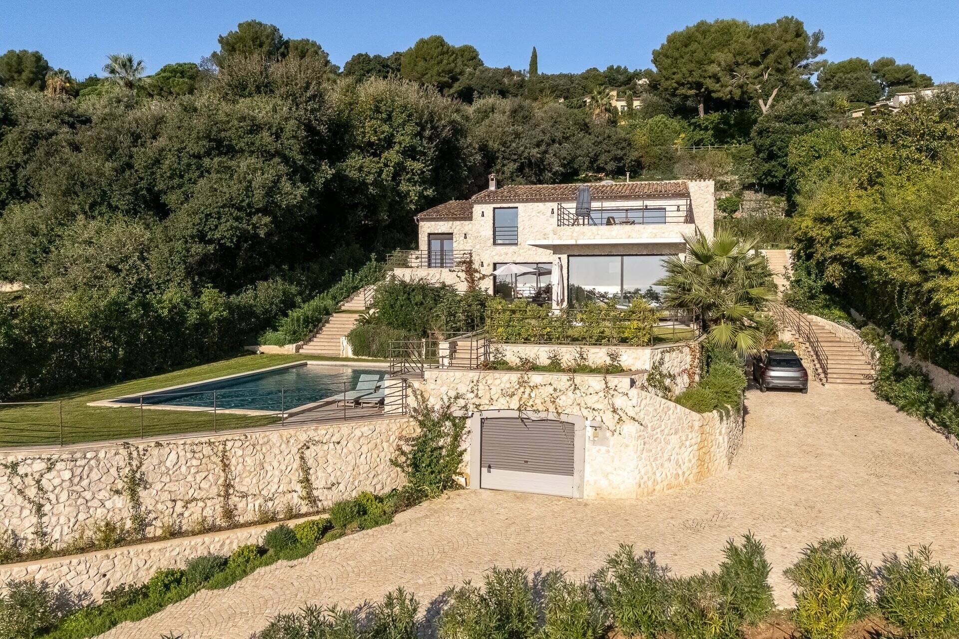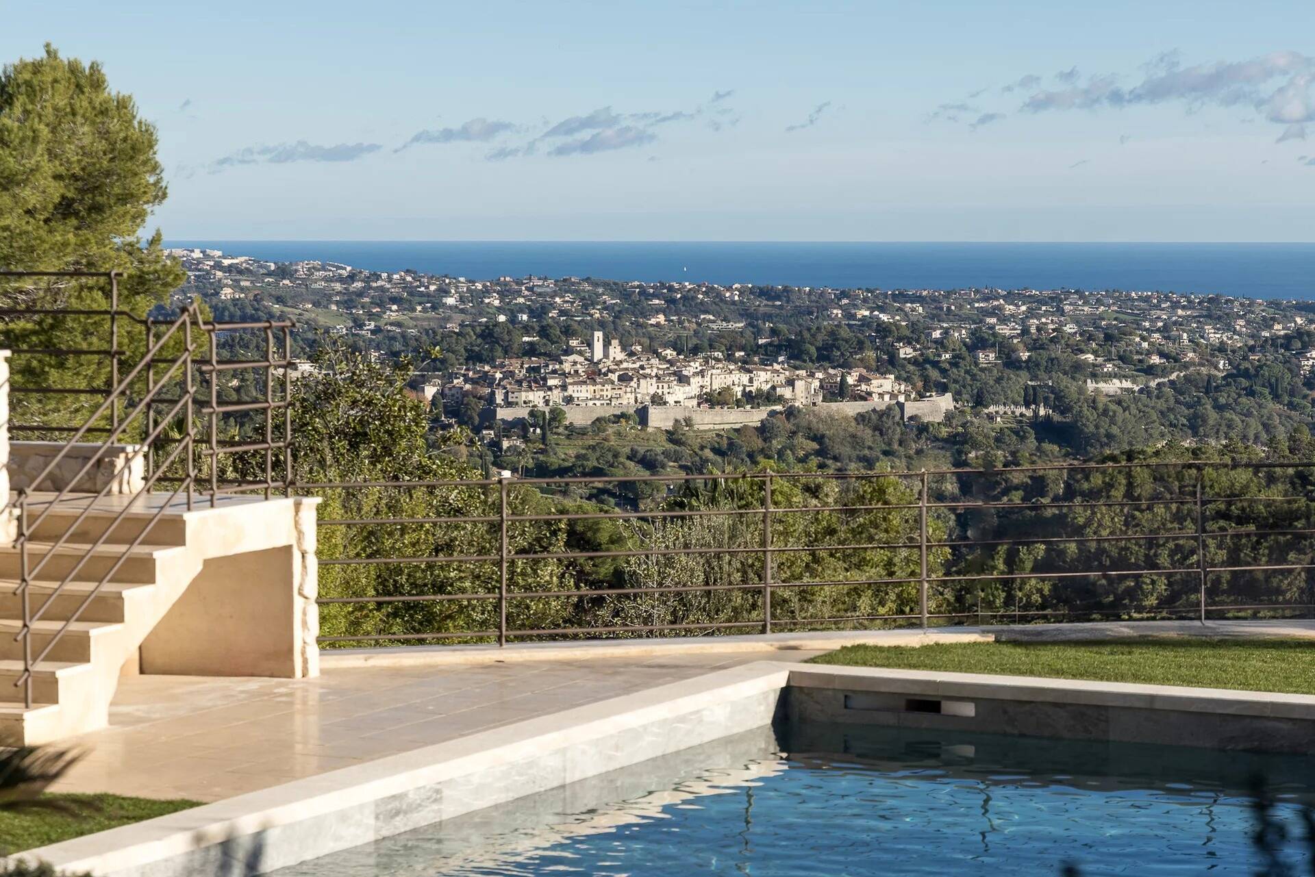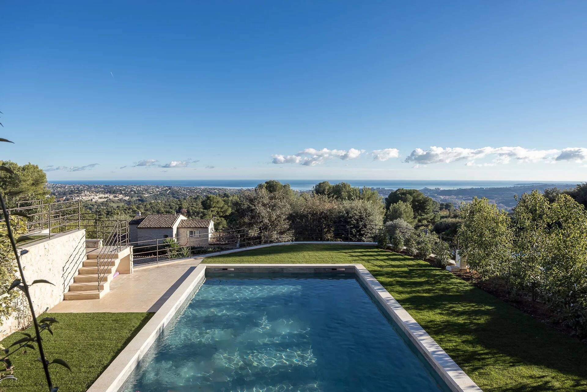 Ett nyrenoverat hus med en panoramautsikt som sträcker sig över Medelhavet, den pittoreska byn Saint-Paul-de-Vence och hela vägen till Cap d’Antibes.