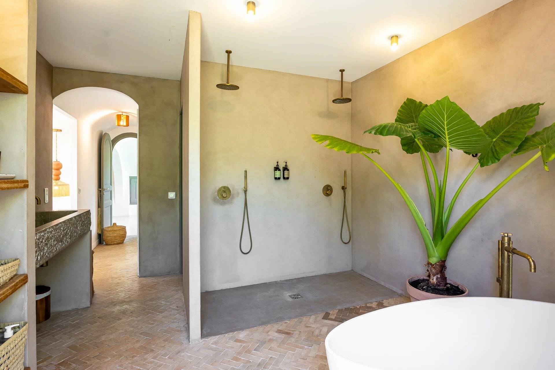 Huset erbjuder en ljus och rymlig sällskapsyta på över 100 kvm med öppen planlösning, fullt utrustat kök, vardagsrum och matsal med stora skjutdörrar mot trädgården. Master-sviten har dubbla walk-in-closets samt badrum med både dusch och badkar. På samma plan finns även ett sovrum med eget badrum samt ett lekrum som kan göras om till sovrum.