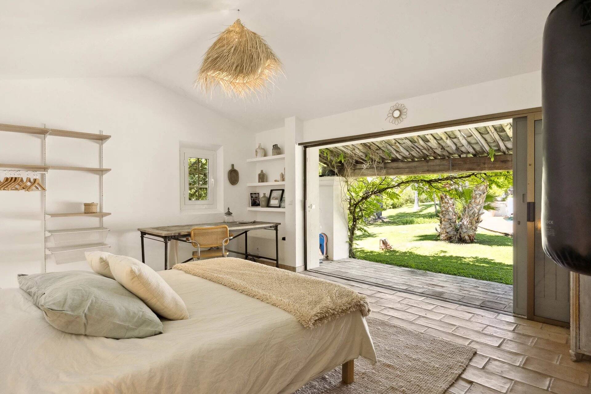 På trädgårdsnivån finns en separat lägenhet på ca 25 kvm för gäster eller personal, och en trappa upp ett sovrum med badrum och stor terrass. Längst bak i trädgården kompletterar ett fristående gästhus på ca 30 kvm med sovrum och badrum.