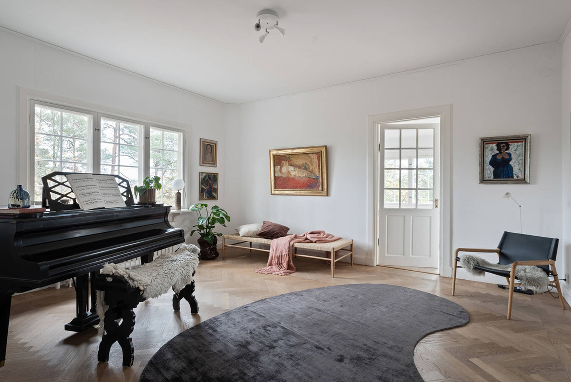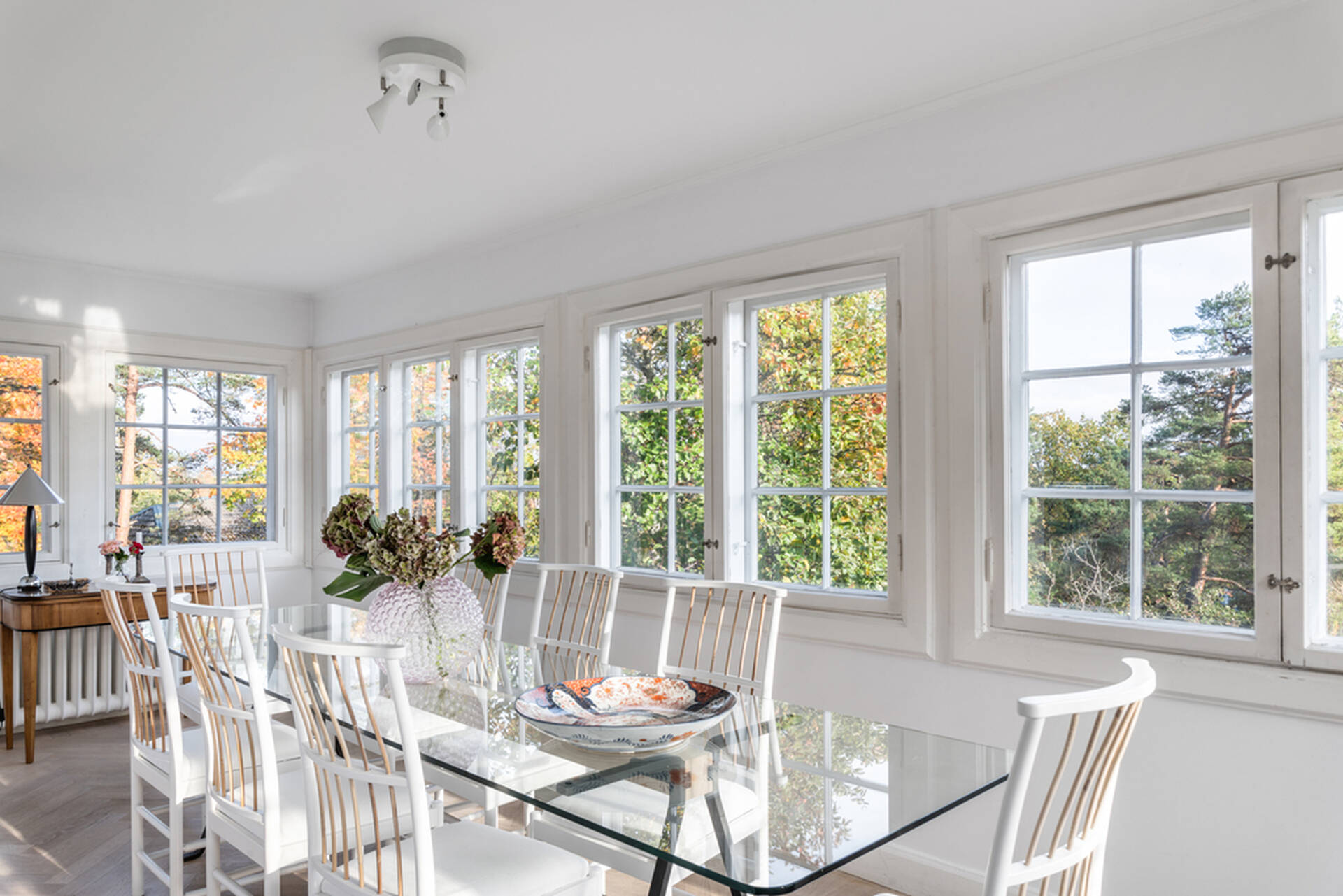 På solig hörntomt med fri utsikt ligger denna magnifika sekelskiftesvilla från 1911 om totalt 444 kvm och nio rum. Idag inredd med sex sovrum varav master bedroom med kakelugn, två badrum, två sällskapsrum samt matsal i vacker glasveranda. Rymligt kök med plats för tio personer. I det större sällskapsrummet finns en stor öppen spis. Källare delvis ovan mark med bastu, relaxrum, gym, snickarverkstad samt tvättstuga och matförråd. Inredningsbar vind med bra takhöjd. Huset är mycket välskött med fin ekparkett i sällskapsdelarna och furutiljor på plan 1-2 samt kök. Fritt insynsskyddat läge i lugnt område med delvis utsikt ner mot Neglingeviken.