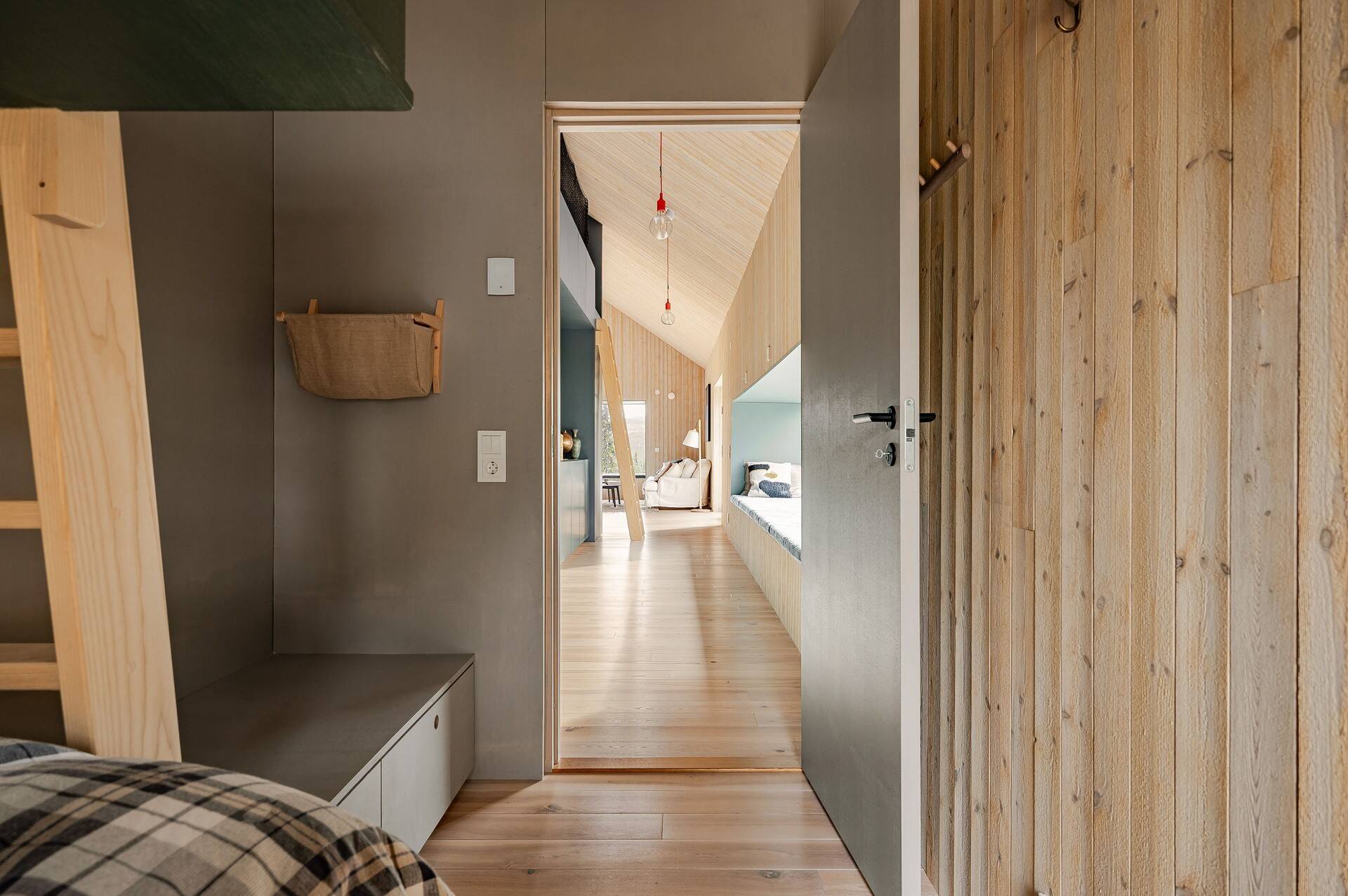 Ett arkitektritat Gert Wingårdh hus med ett optimalt läge på klassiska skidorten Vemdalsskalet med sina anor sedan 1930-talet om 112 effektiva kvm på en tomt om drygt 1 000 kvm. Genom att lyfta upp huset från marken med sina styltor omges man av en än mer slående panoramavy genom stora fönsterpartier i alla väderstreck mot orörd natur, högfjäll och himmel. Ett hus som karaktäriseras av sina detaljer, såväl interiört som exteriört, platsbyggd inredning och omsorgsfullt valda träslag och material. Med ett generöst ljusinsläpp, en imponerande takhöjd och en social planlösning upplevs detta moderna fjällhus som en oas för lediga stunder med längdspår och vandringsleder runt hörnan och med närheten till liftar och Vemdalsskalets Torg med dess utbud av service, hotell, restauranger och butiker. Huset ligger tillsammans med tre liknande hus ritade av Gert Wingårdh vilket ger ett homogent intryck samtidigt som husen är byggda i olika vinklar så insynen blir minimal och med olika utsikter från varje hus.