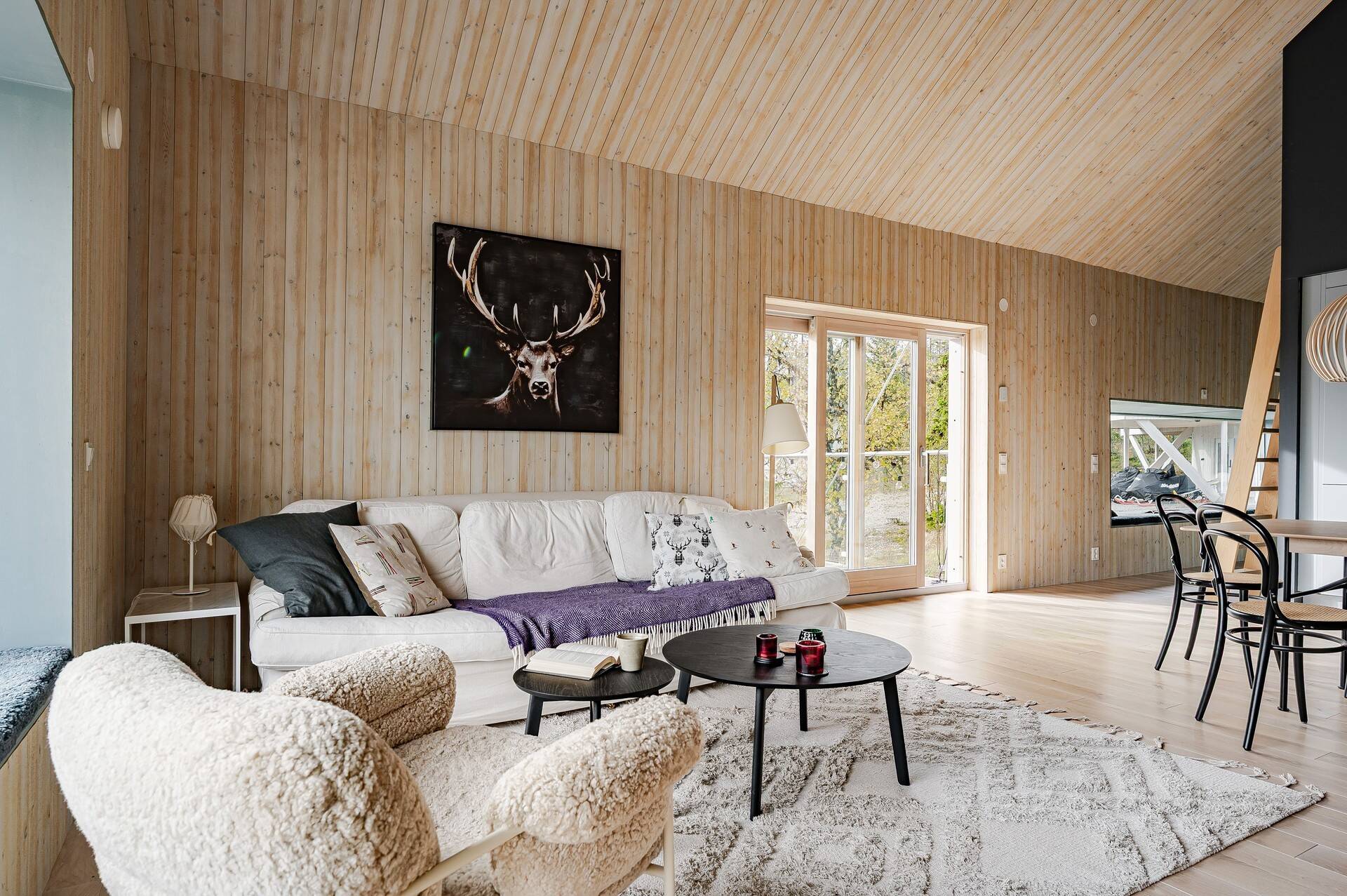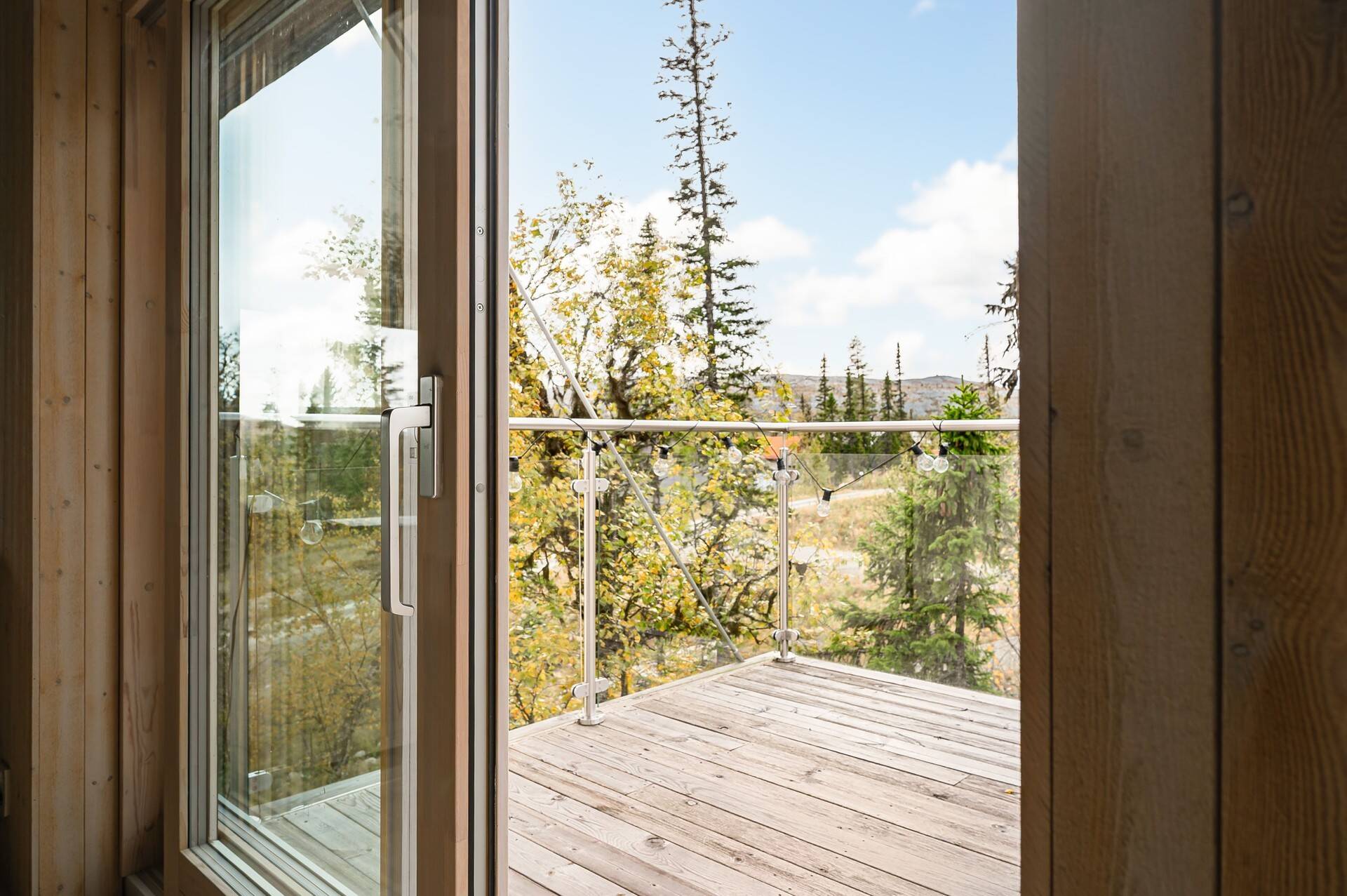 Bilar parkeras under tak med direkt entré till skotergarage och huset. Entréplan med en stor hall med gott om praktisk avhängning och förvaring och med en fullt utrustad tvättstuga och wc i anslutning. Trappan leder upp till det övre planet med ett generöst öppet kök och vardagsrum med panoramafönster med bred nisch att sitta i, öppen spis och med utgång till den möblerbara terrassen. I passagen in till den privata avdelningen med två sovrum har man platsbyggt en sittnisch i ett andra av husets panoramafönster samt en vacker bänk med förvaring. Två bra sovrum varav det ena med terrassdörr och i anslutning till den stora och exklusiva badrumsavdelningen med bastu. Det andra med en våningssäng och utöver detta kommer även det inredda loftet med plats för en dubbelsäng och nattduksbord under takåsen. Fastigheten ligger i direkt närhet till Vemdalsskalets omfattande alpina skidområde och inom promenadavstånd ligger inbjudande Skalets torg med restauranger, butiker, ICA och nöjen.